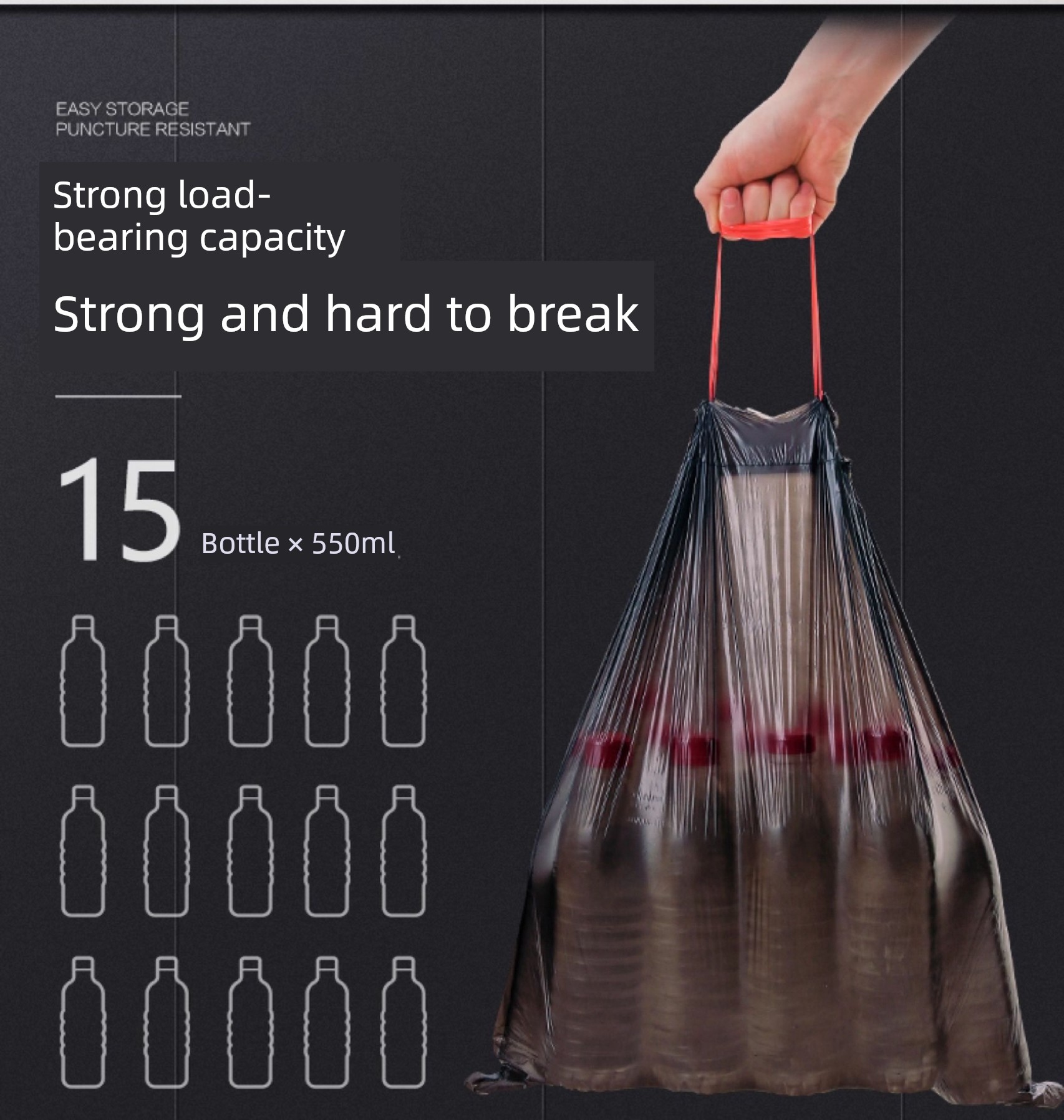 20 Rolls of Drawstring [Upgraded Automatic Closing] Black