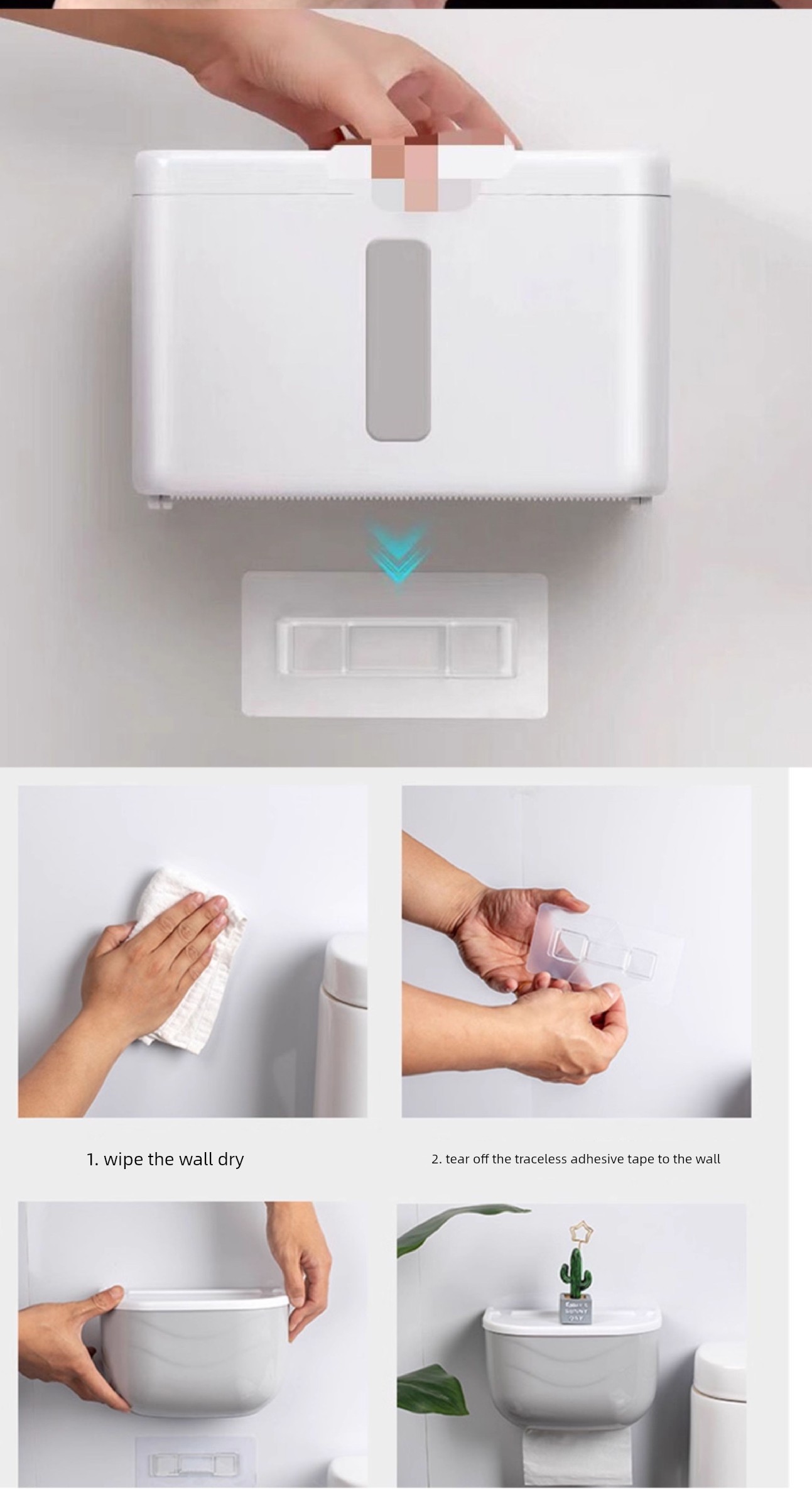Tissue Box Hook Bathroom Punch-free Viscose Waterproof Paper Extraction Roll Paper Box Seamless Strong Adhesive Patch Storage Rack