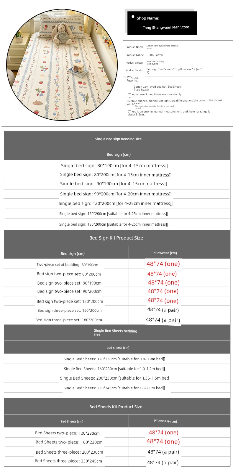 ★ [Two-Piece Fitted Sheet Set] 80X190Cm Fitted Sheet + One Pillowcase