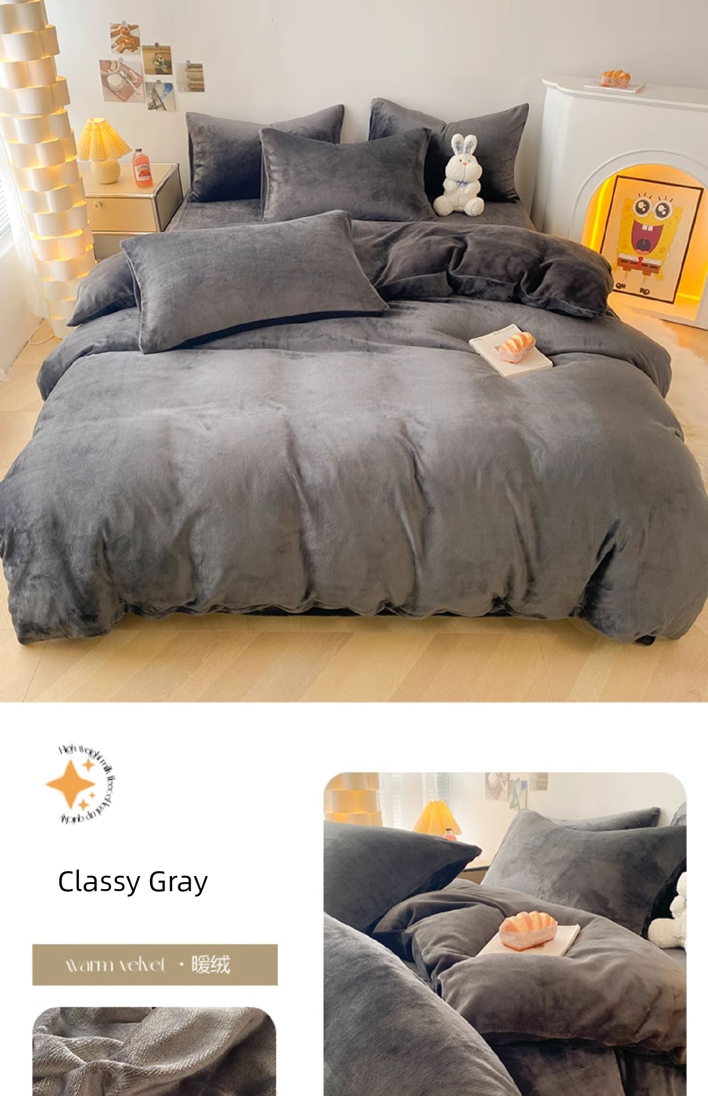 High-Grade Gray [Double-Sided Plus Velvet, Skin-Friendly and Warm]