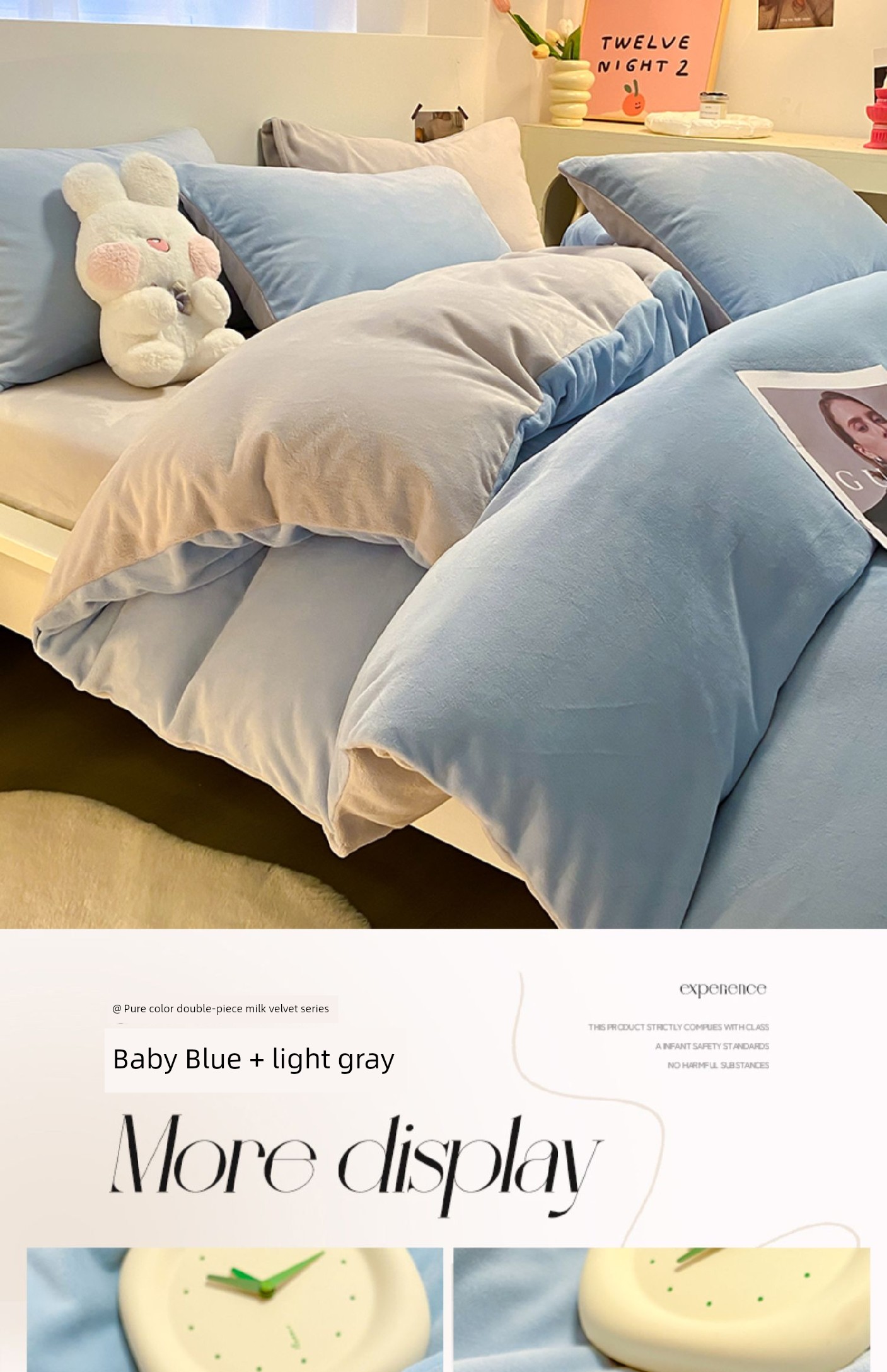 Baby Blue + Light Gray [Double-Sided Plus Velvet, Skin-Friendly and Warm]