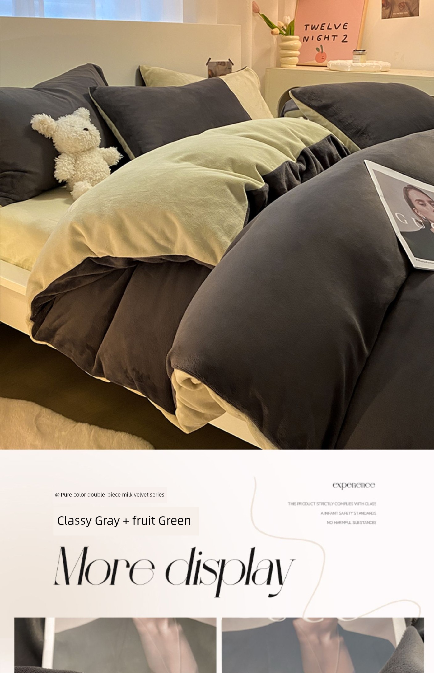High-Grade Gray + Fruit Green [Double-Sided Plus Velvet, Skin-Friendly and Warm]