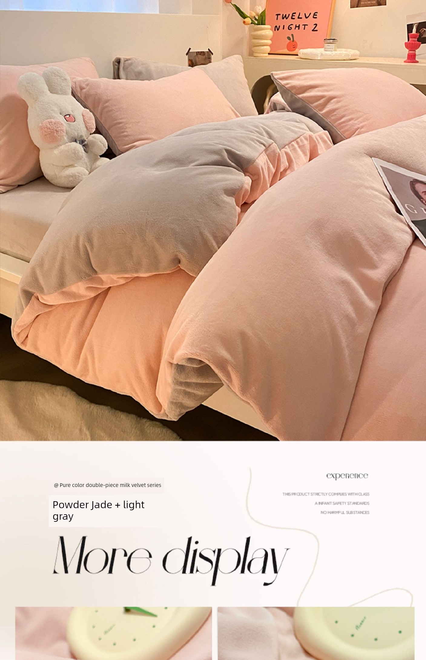 Pink Jade + Light Gray [Double-Sided Plus Velvet, Skin-Friendly and Warm]