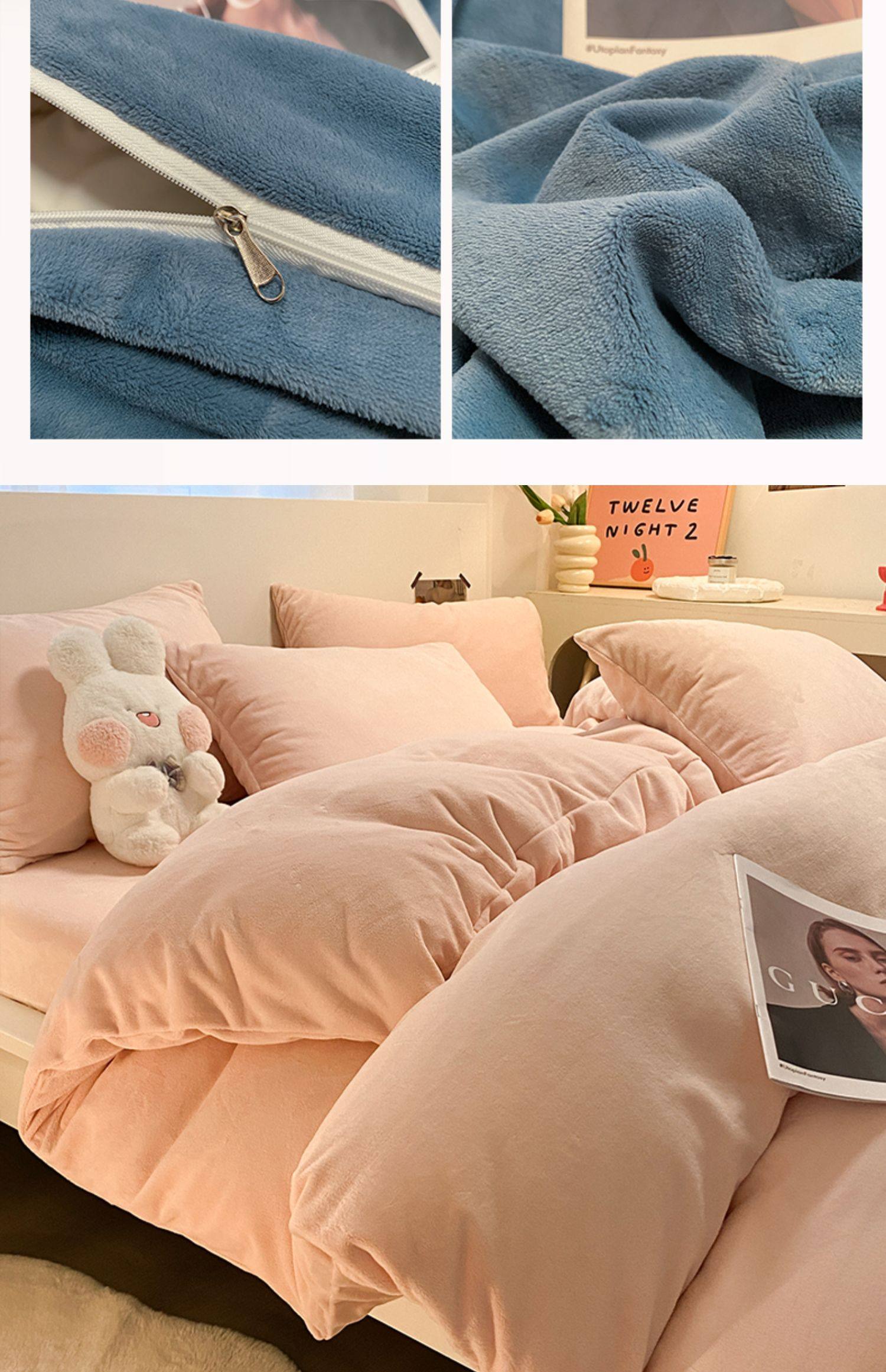 Baby Blue + Pink Jade [Double-Sided Velvet, Skin-Friendly and Warm]