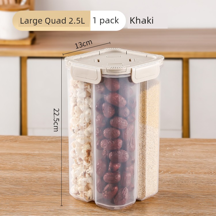 2. 5L Four-Compartment Khaki Storage Box - Single Pack