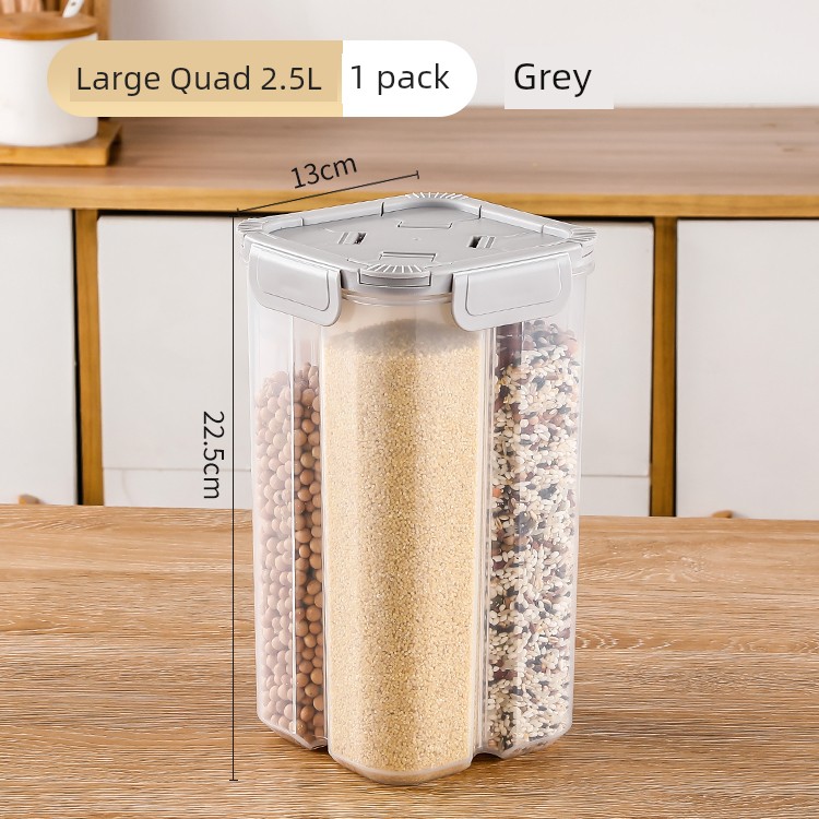 2. 5L Four-Compartment Gray Storage Box, Single Pack