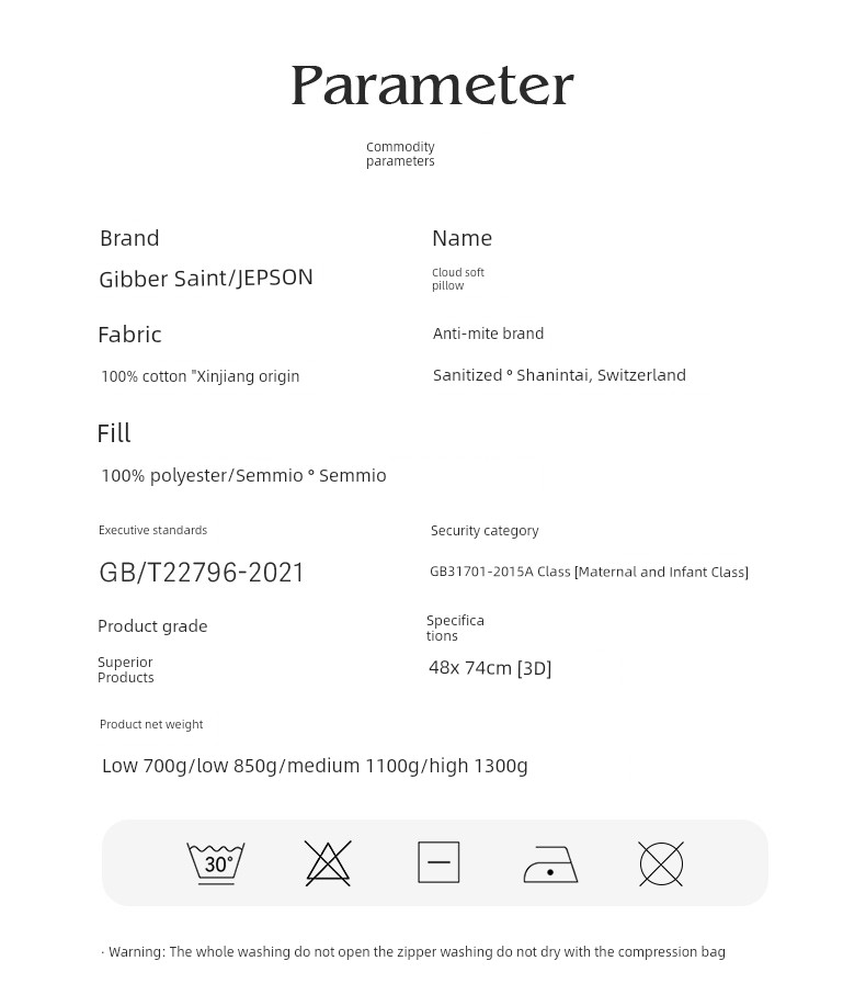 Anti-Mite Cotton Pillow for Ji Bo St Double