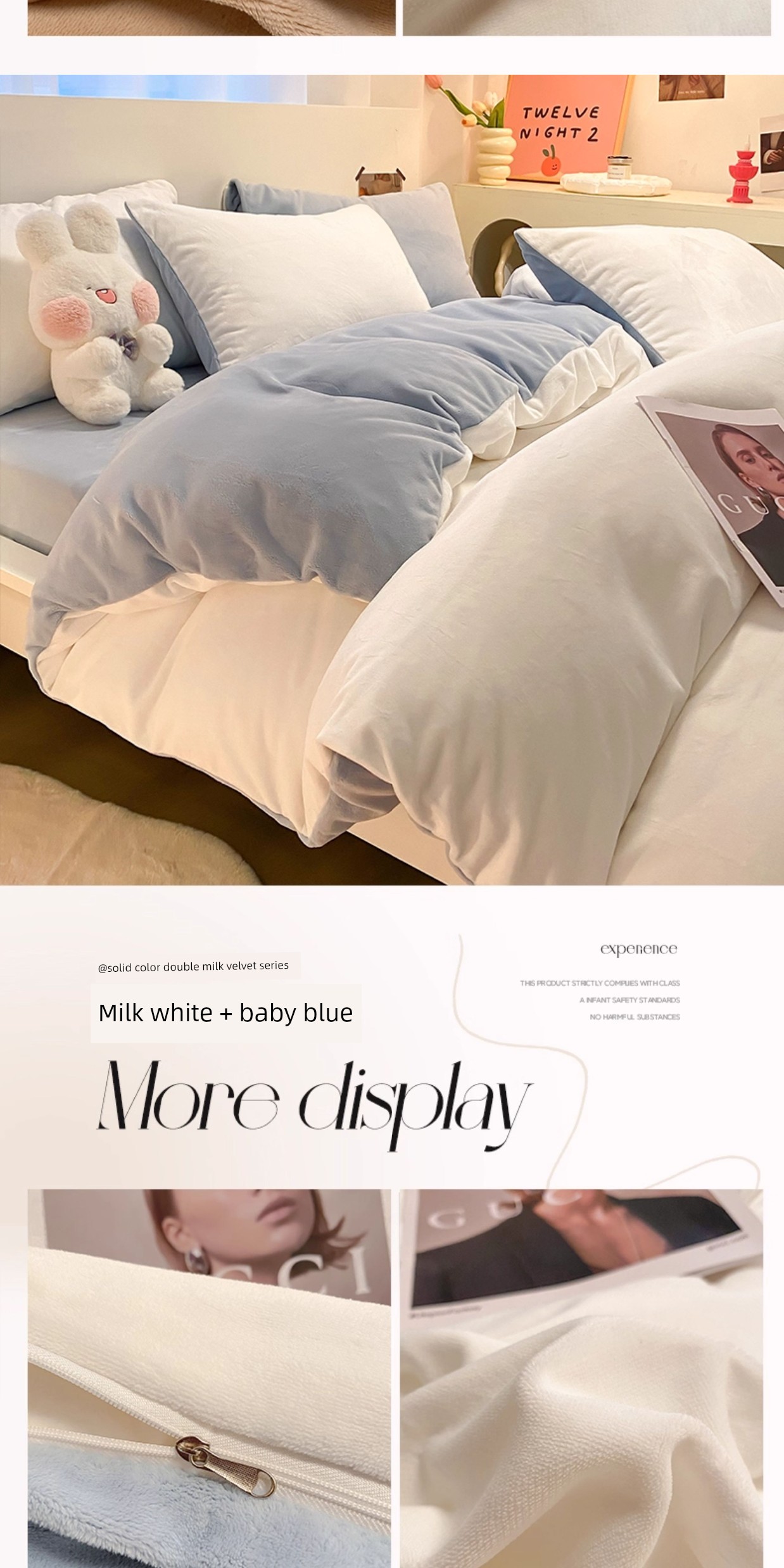 Milk White + Baby Blue [Double-Sided Velvet, Skin-Friendly and Warm]