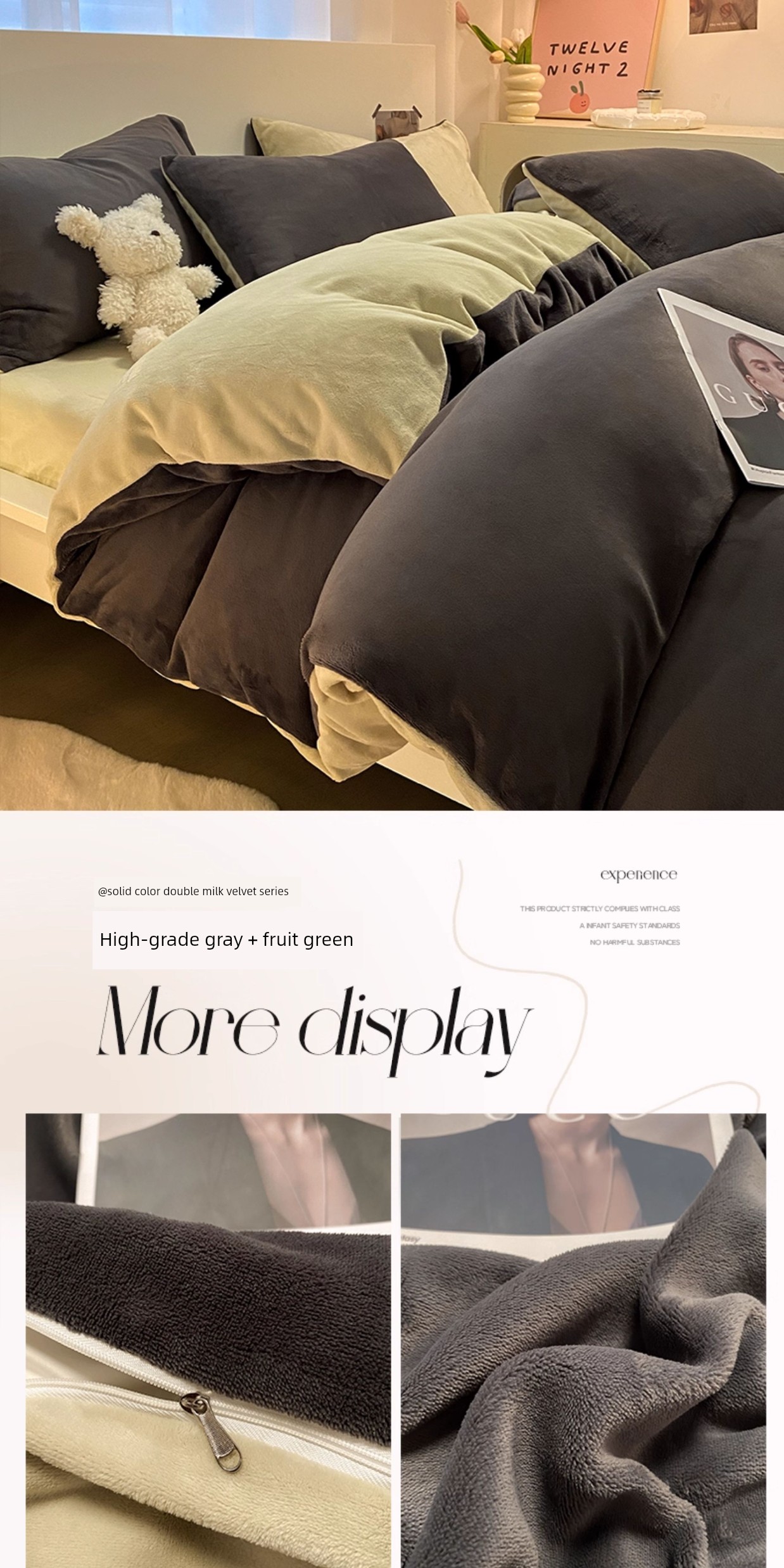 High-Grade Gray + Fruit Green [Double-Sided Plus Velvet, Skin-Friendly and Warm]