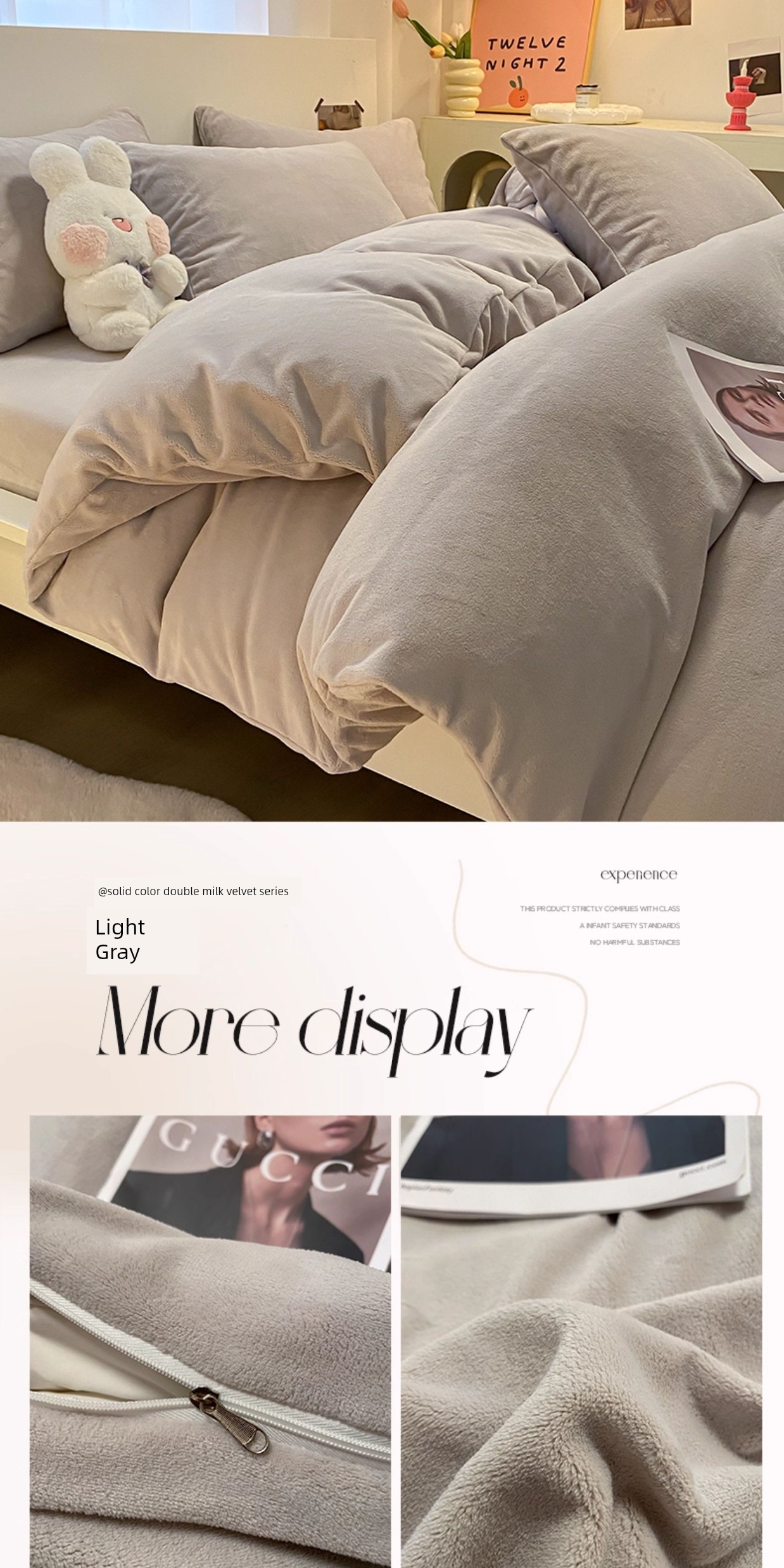 Light Gray [Double-Sided Plus Velvet, Skin-Friendly and Warm]