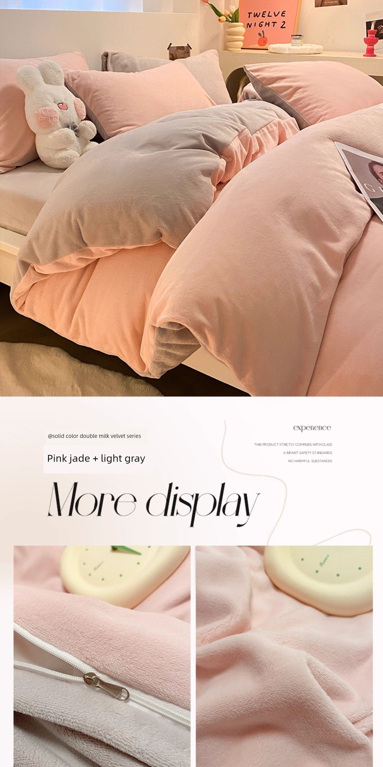 Pink Jade + Light Gray [Double-Sided Plus Velvet, Skin-Friendly and Warm]