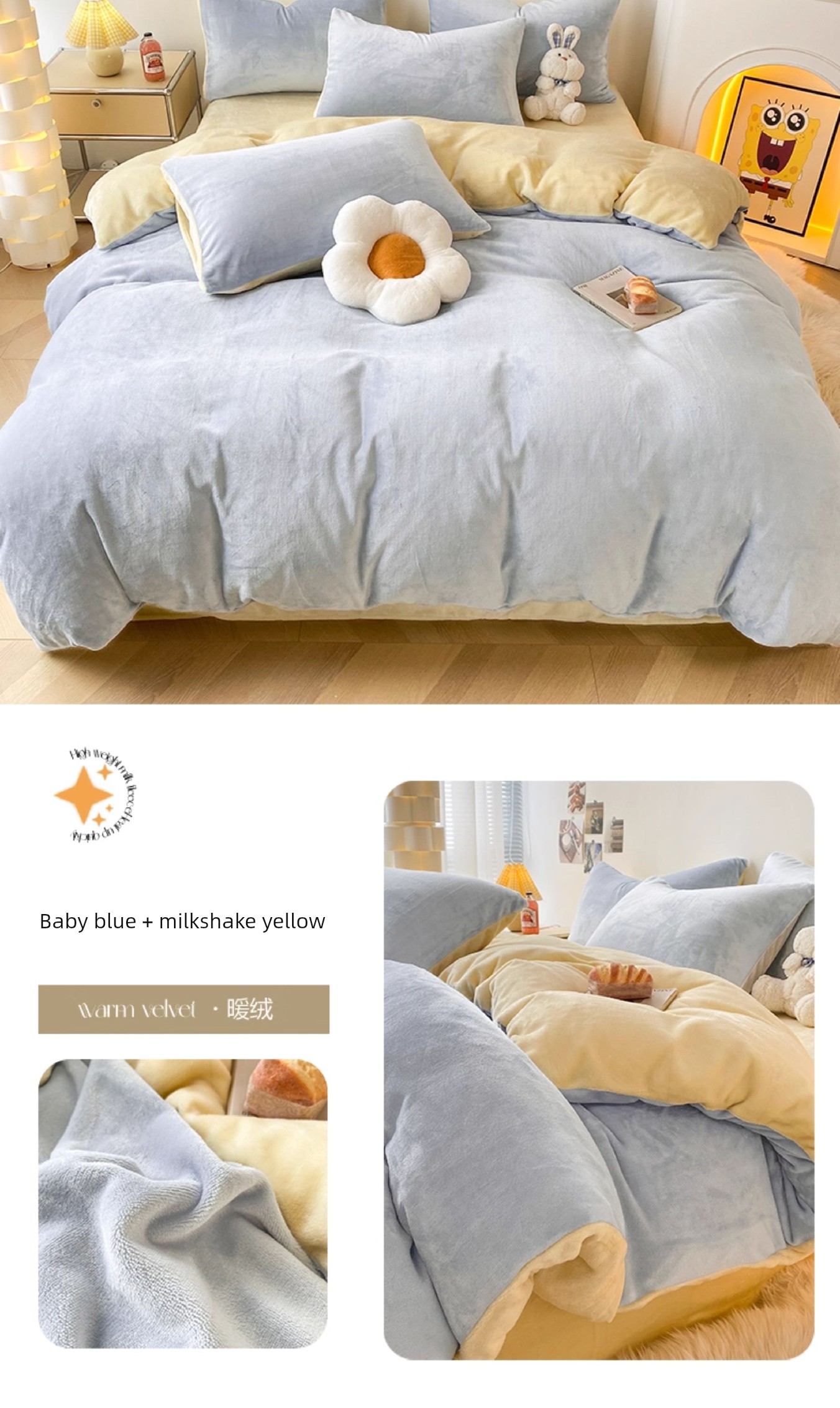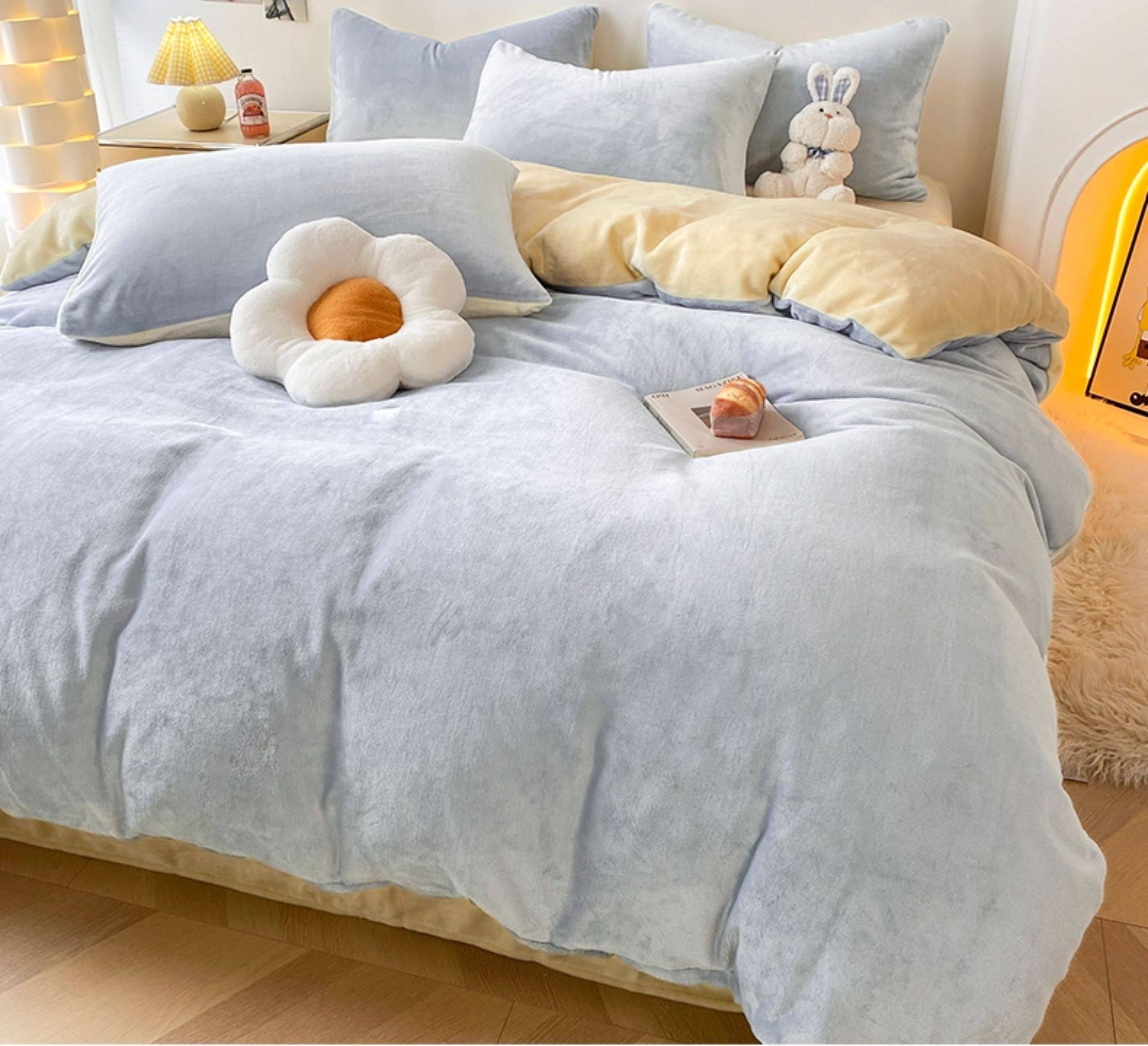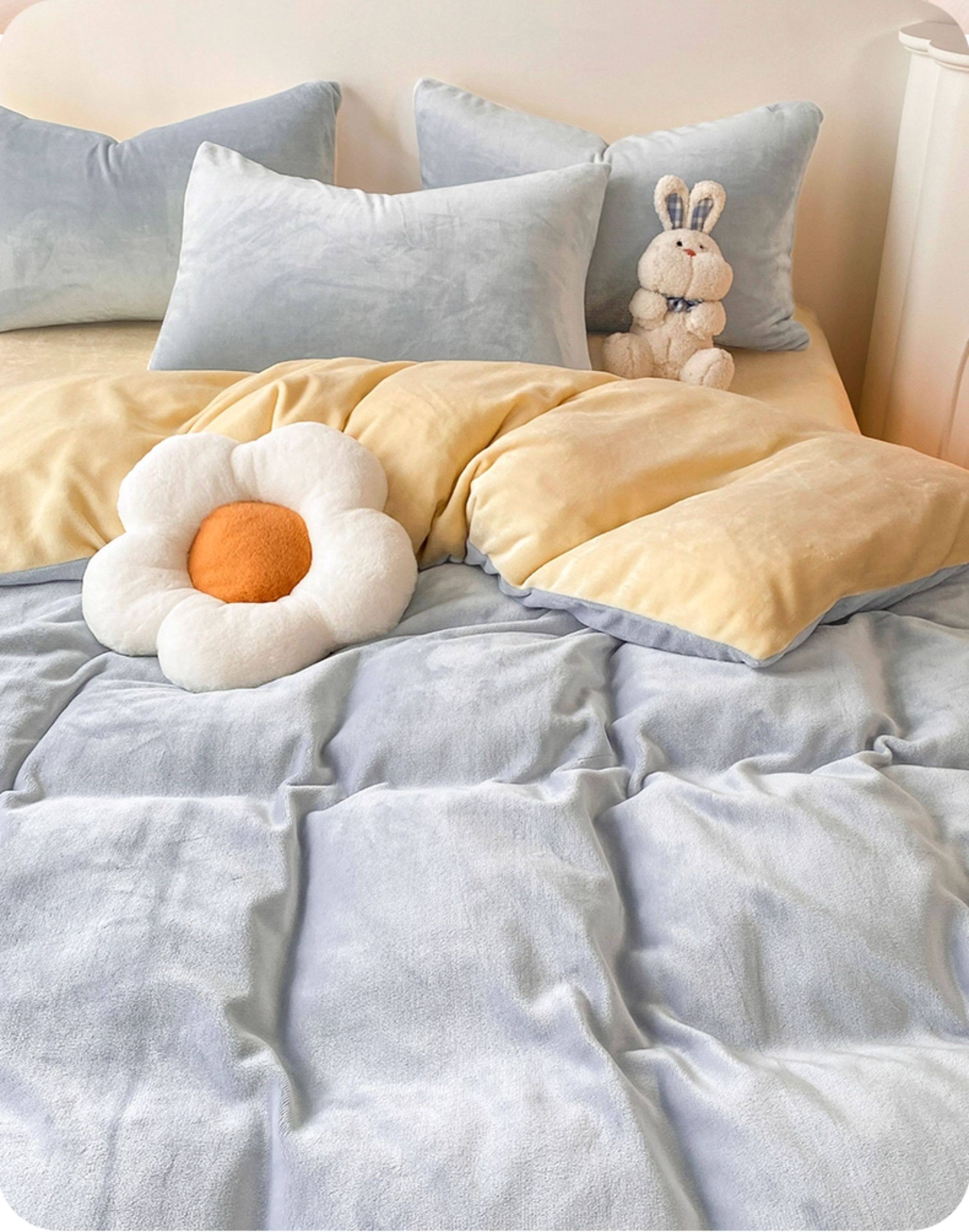 Baby Blue + Milkshake Yellow [Double-Sided Plus Velvet, Skin-Friendly and Warm]
