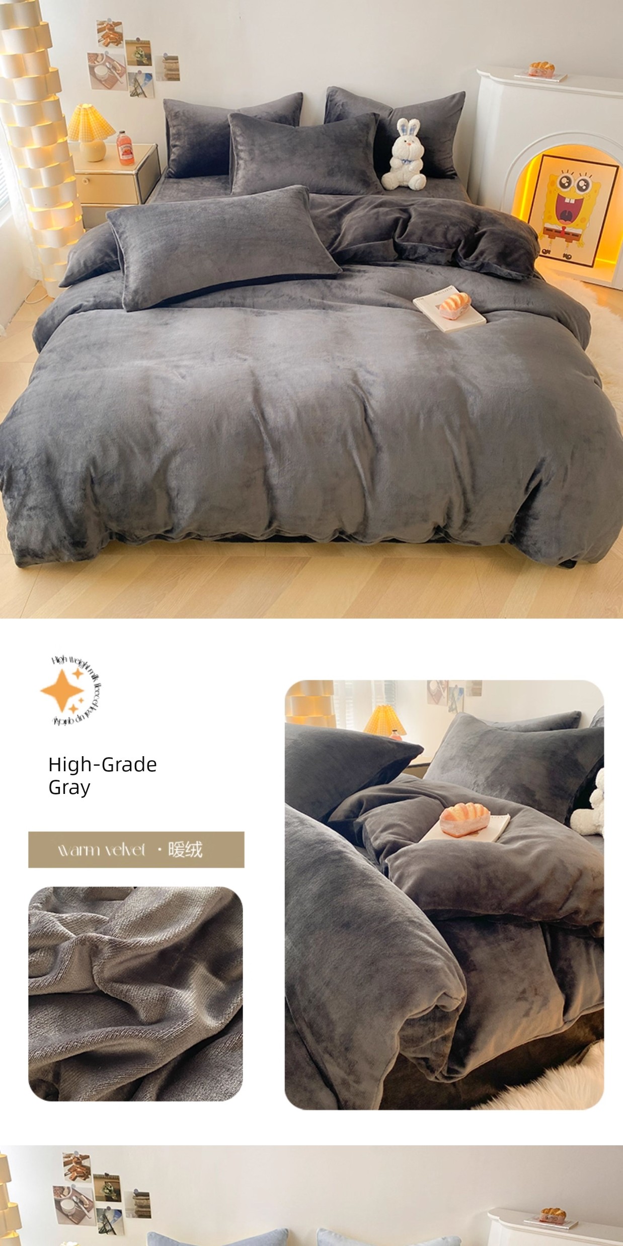 High-Grade Gray [Double-Sided Plus Velvet, Skin-Friendly and Warm]