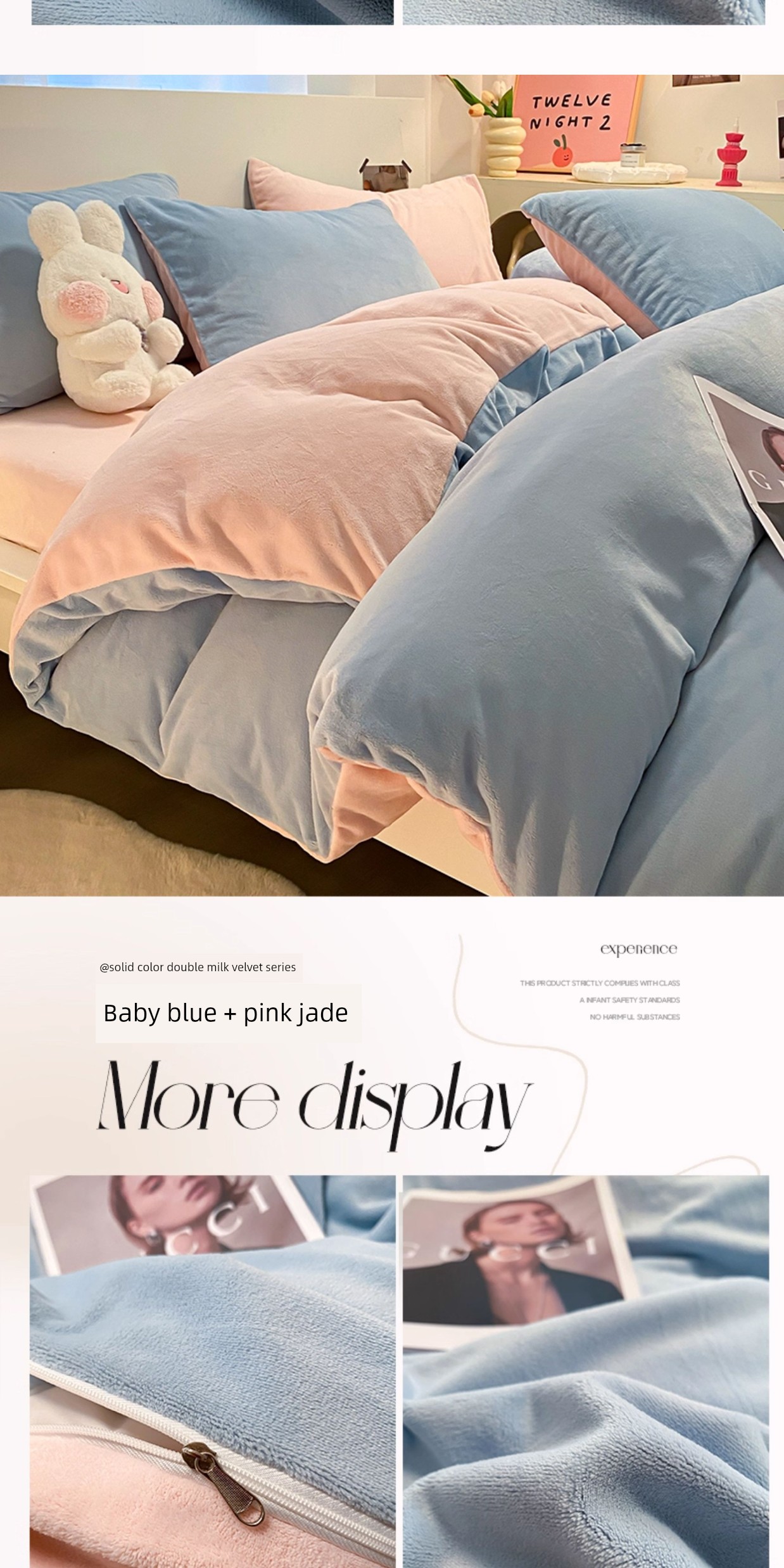 Baby Blue + Pink Jade [Double-Sided Velvet, Skin-Friendly and Warm]
