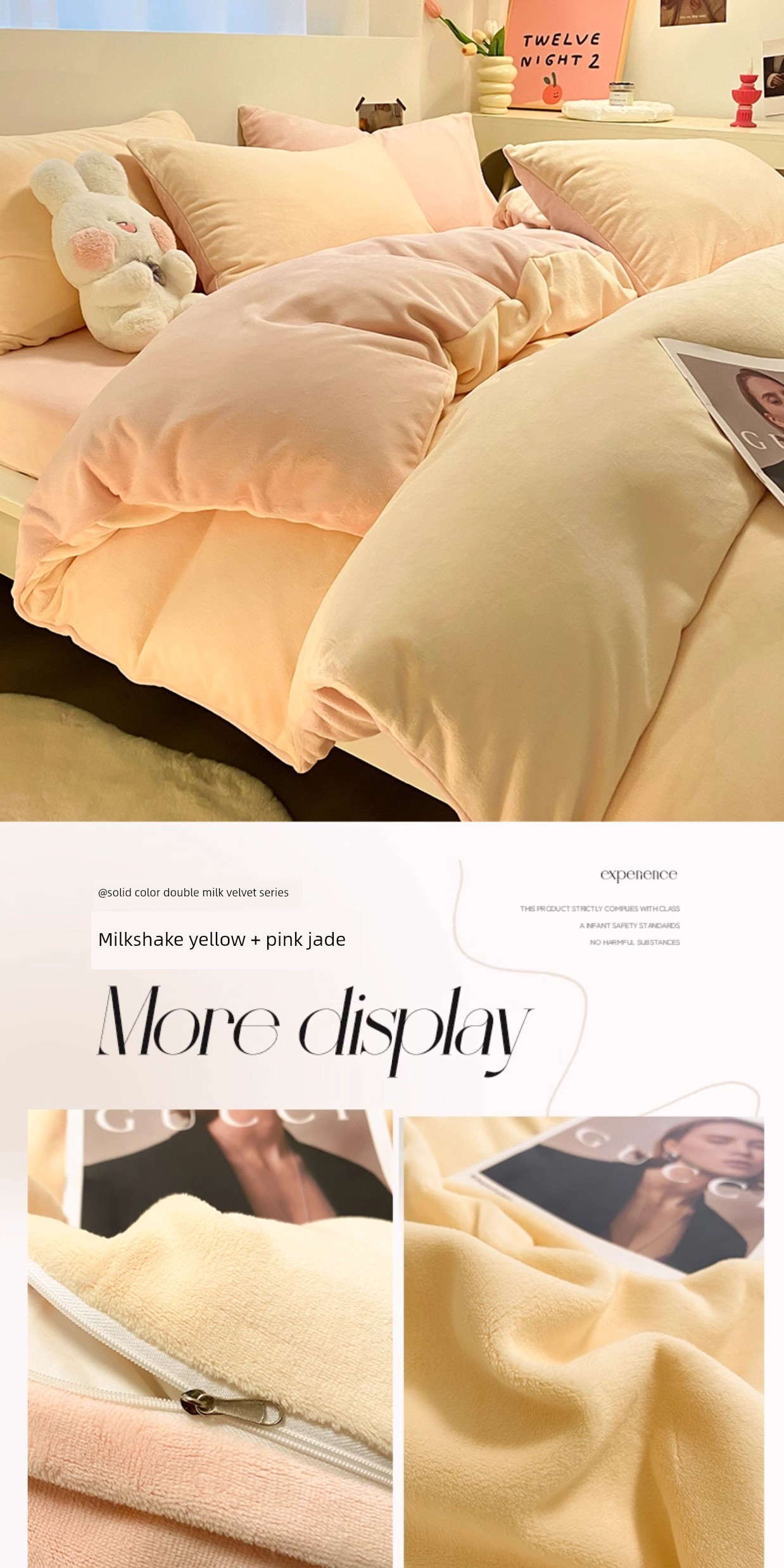 Milkshake Yellow + Pink Jade [Double-Sided Plus Velvet, Skin-Friendly and Warm]