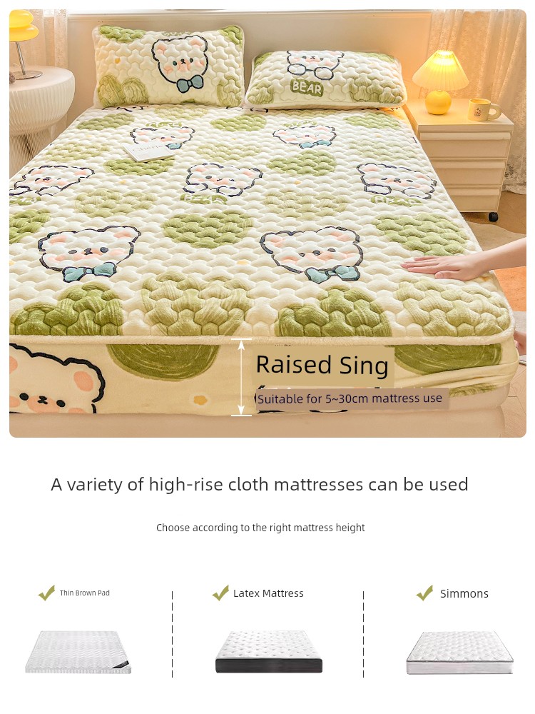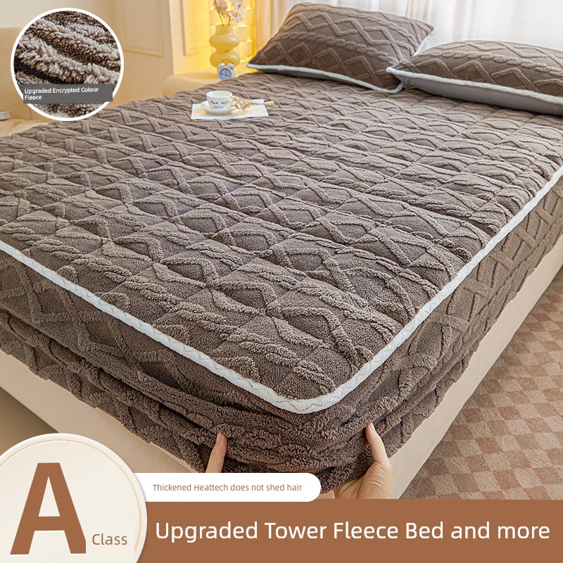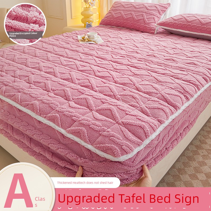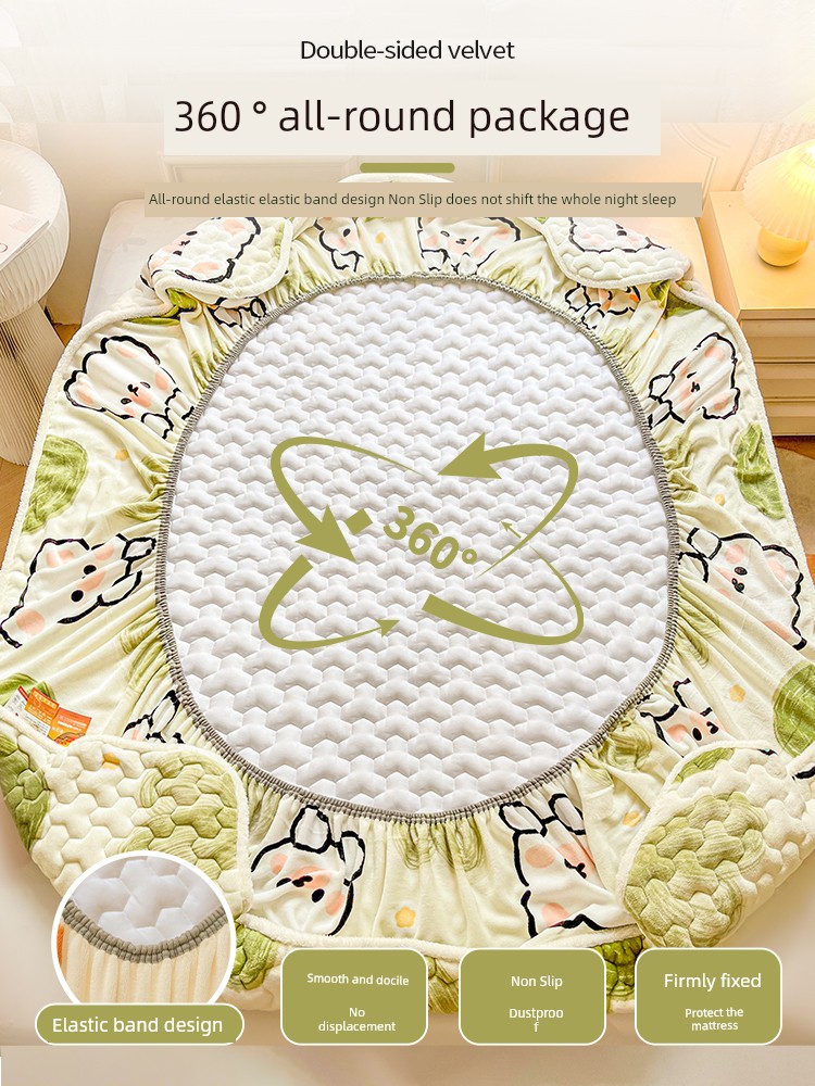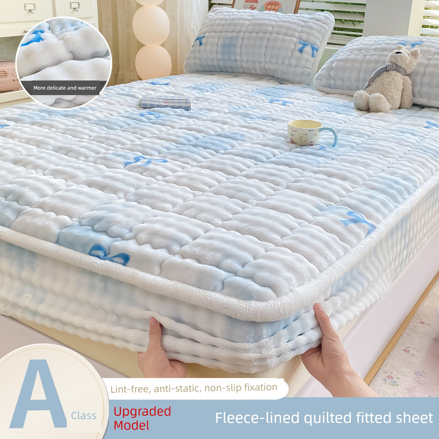 Milk Velvet Fitted Sheet Cover, Winter Fleece Bed Cover, Coral Fleece Mattress Protector, Thickened Bed Sheet Cover, 2025 New Model