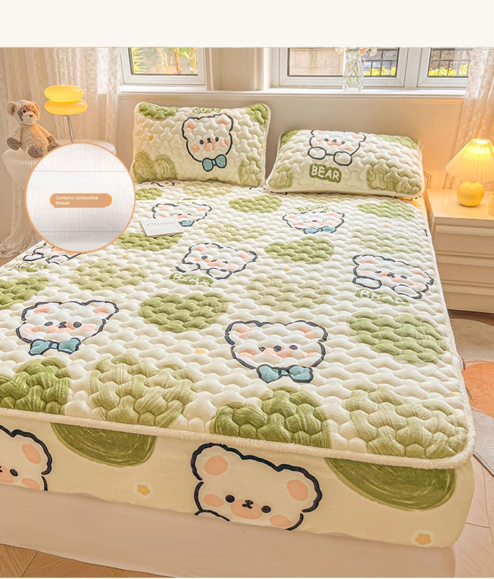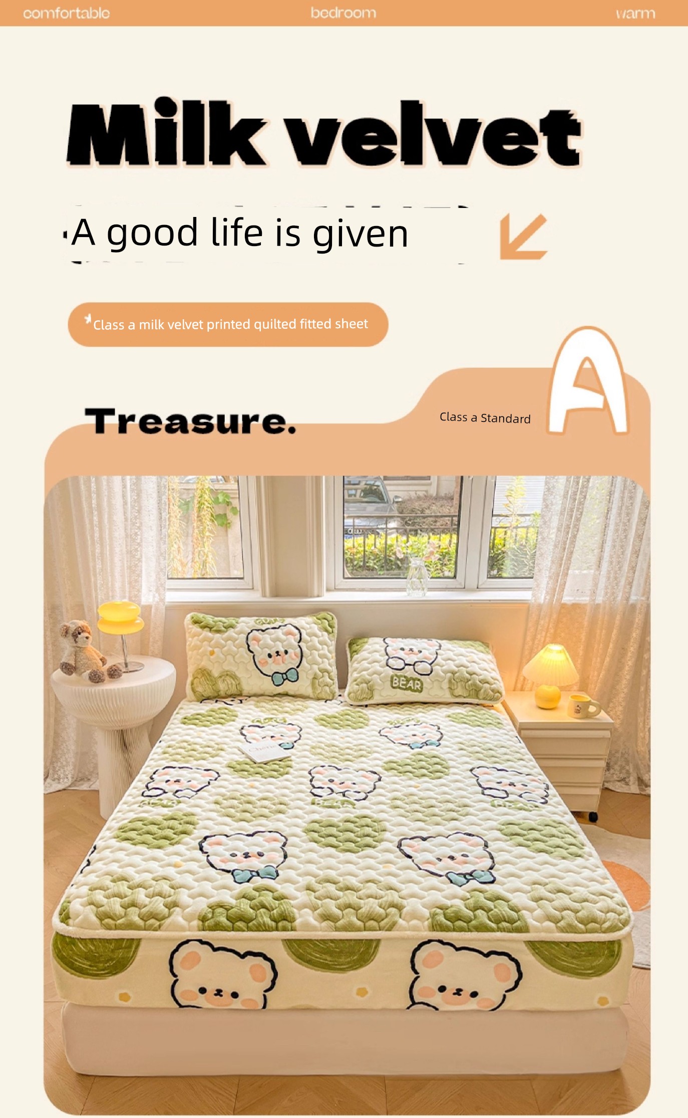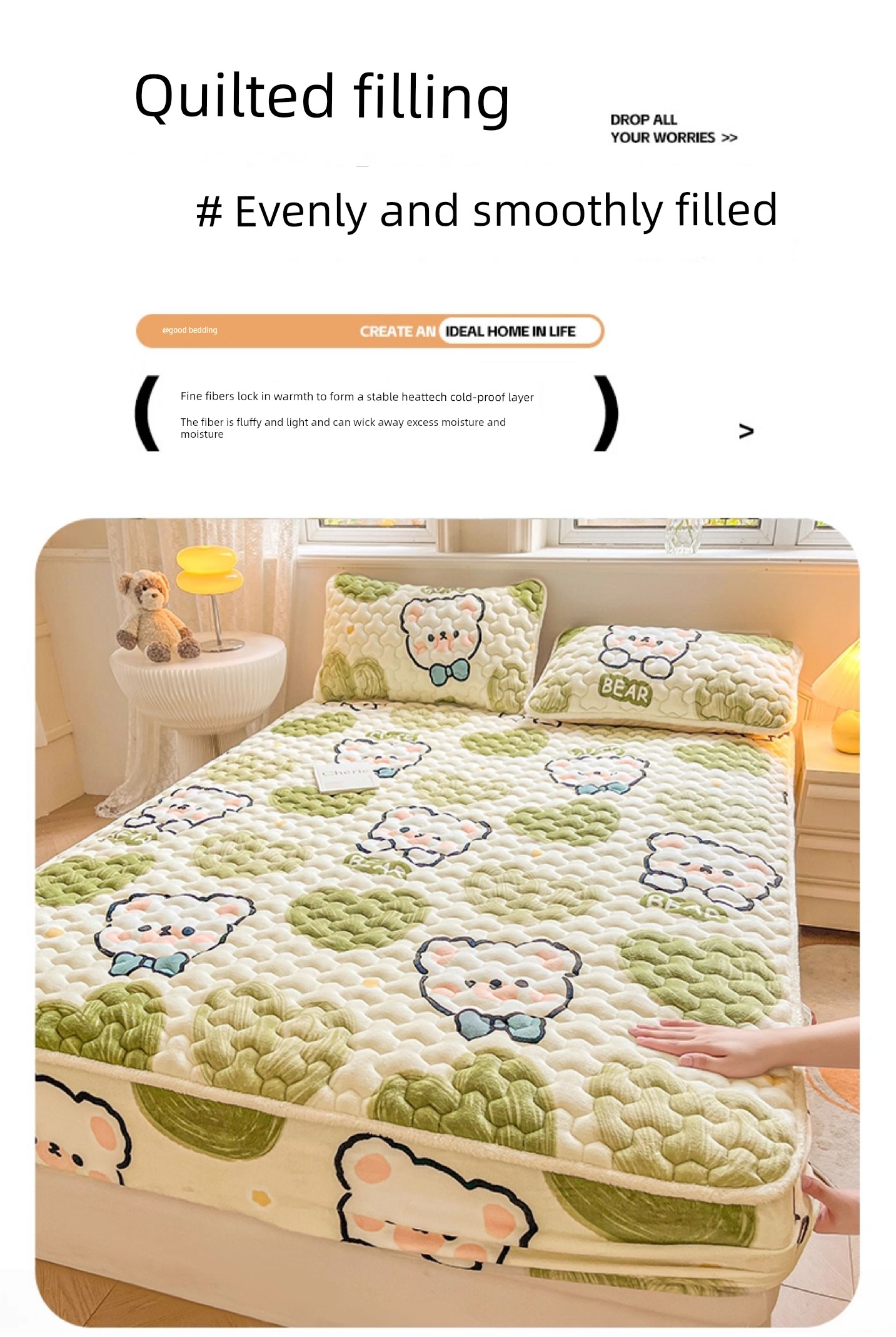 Milk Velvet Fitted Sheet Cover, Winter Fleece Bed Cover, Coral Fleece Mattress Protector, Thickened Bed Sheet Cover, 2025 New Model