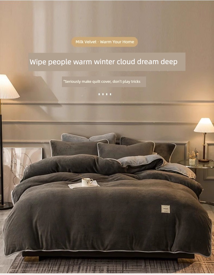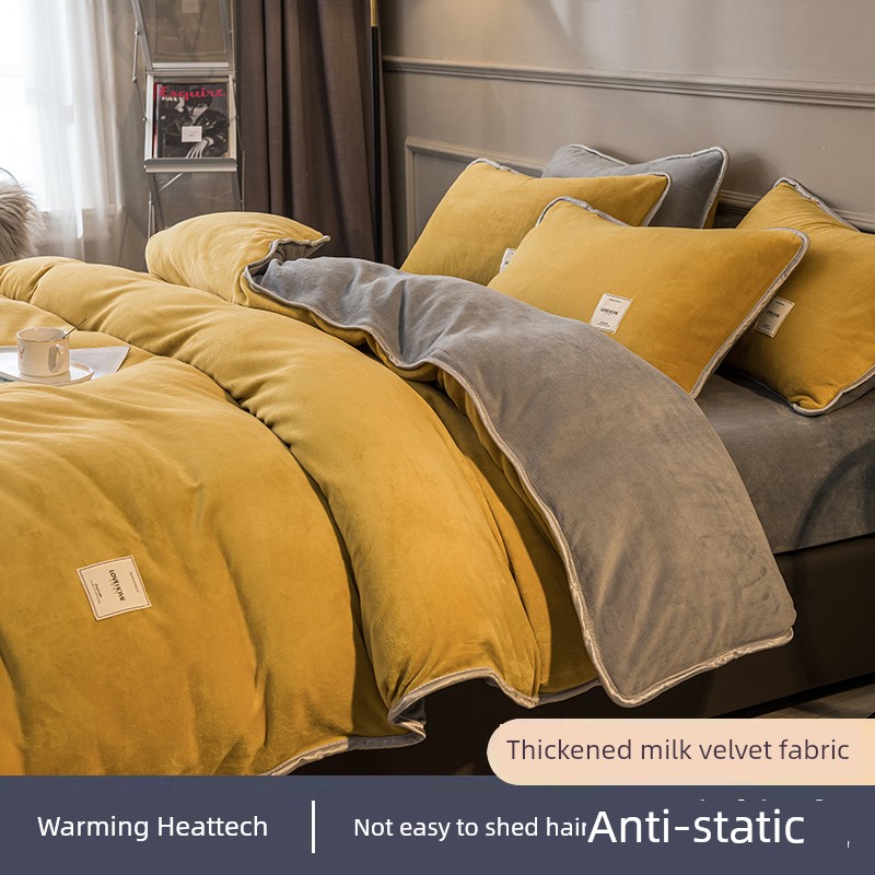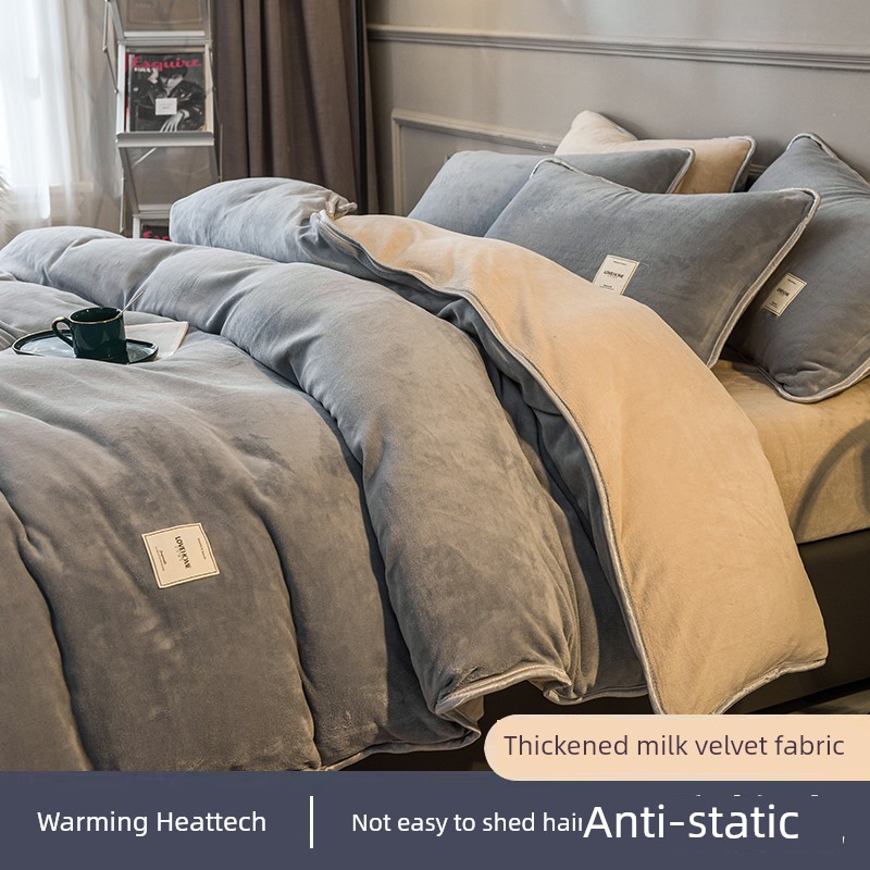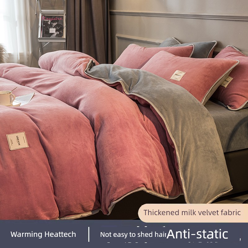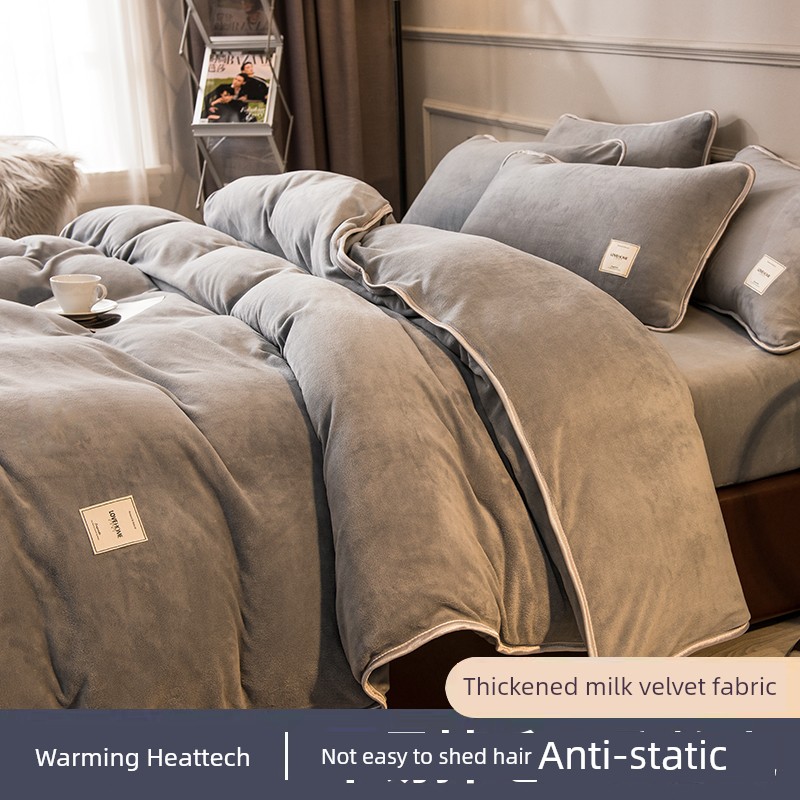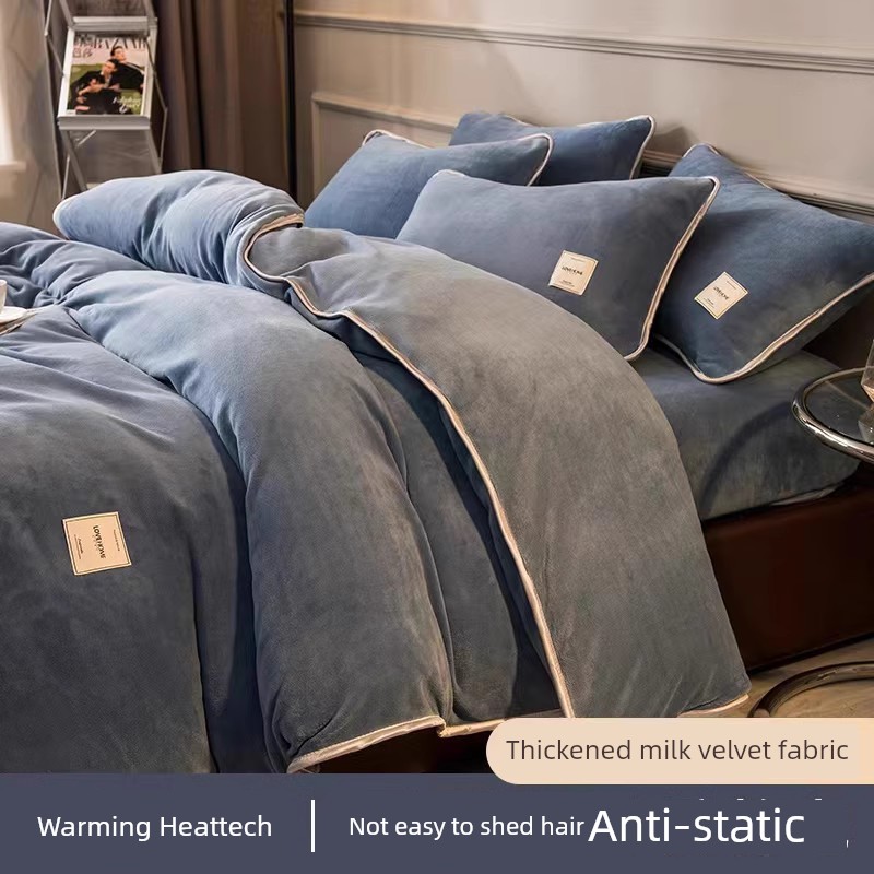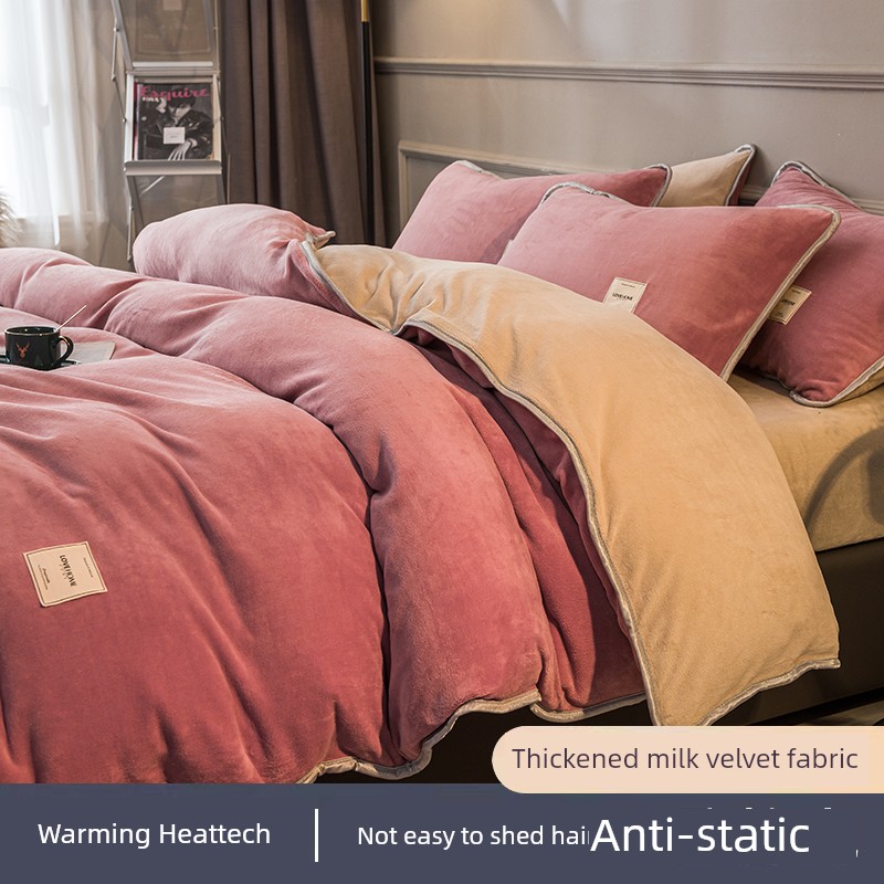 Winter Thickened Milk Fiber Four-Piece Set Fleece-lined Heattech Coral Fleece Duvet Cover Flannel Bed Sheet Duvet Cover Bedding