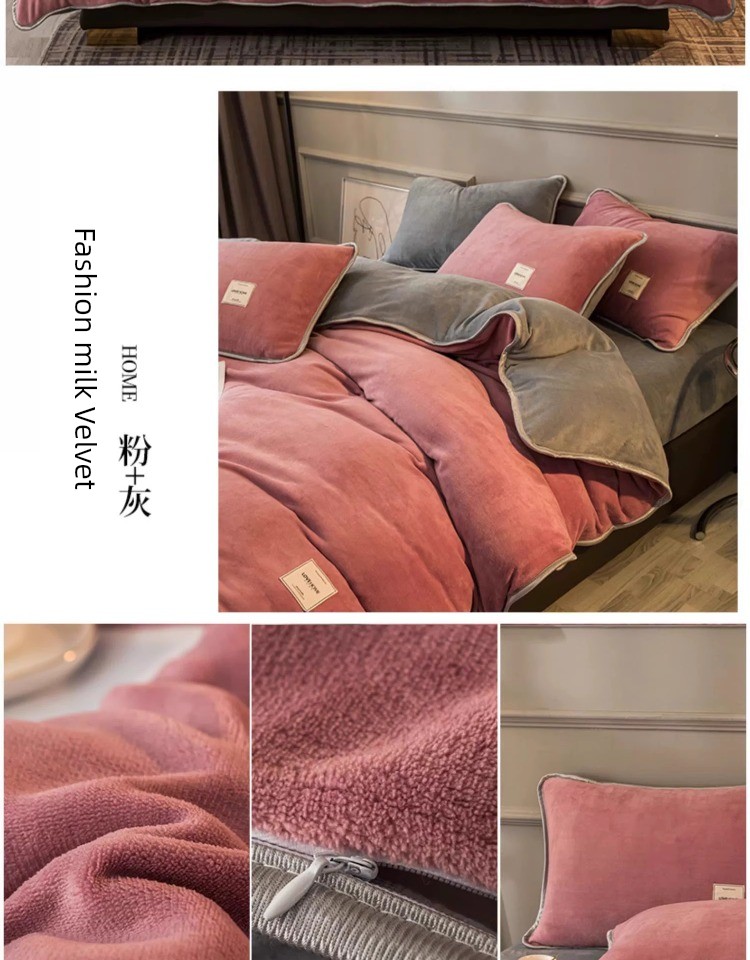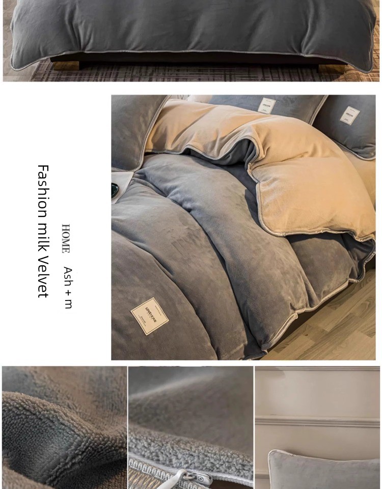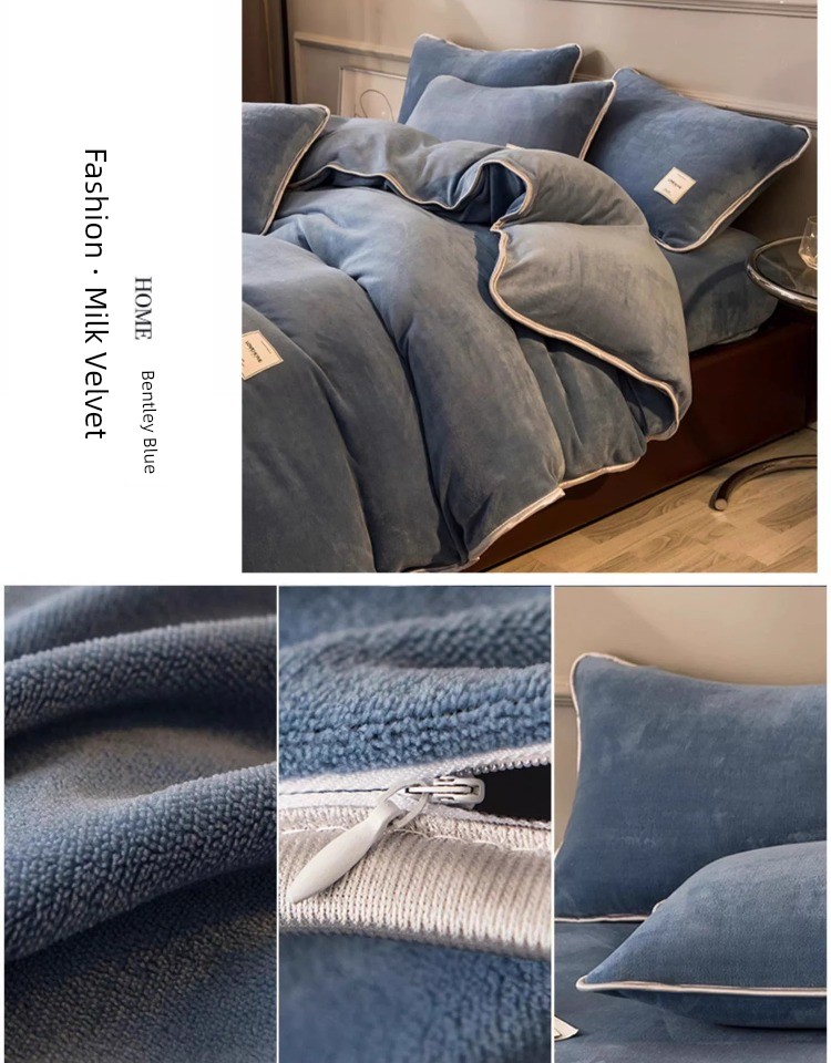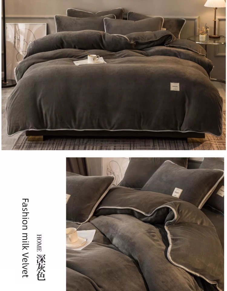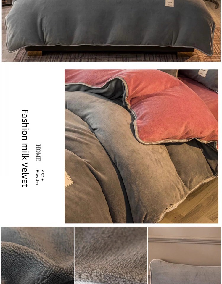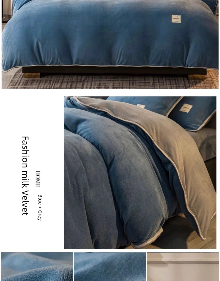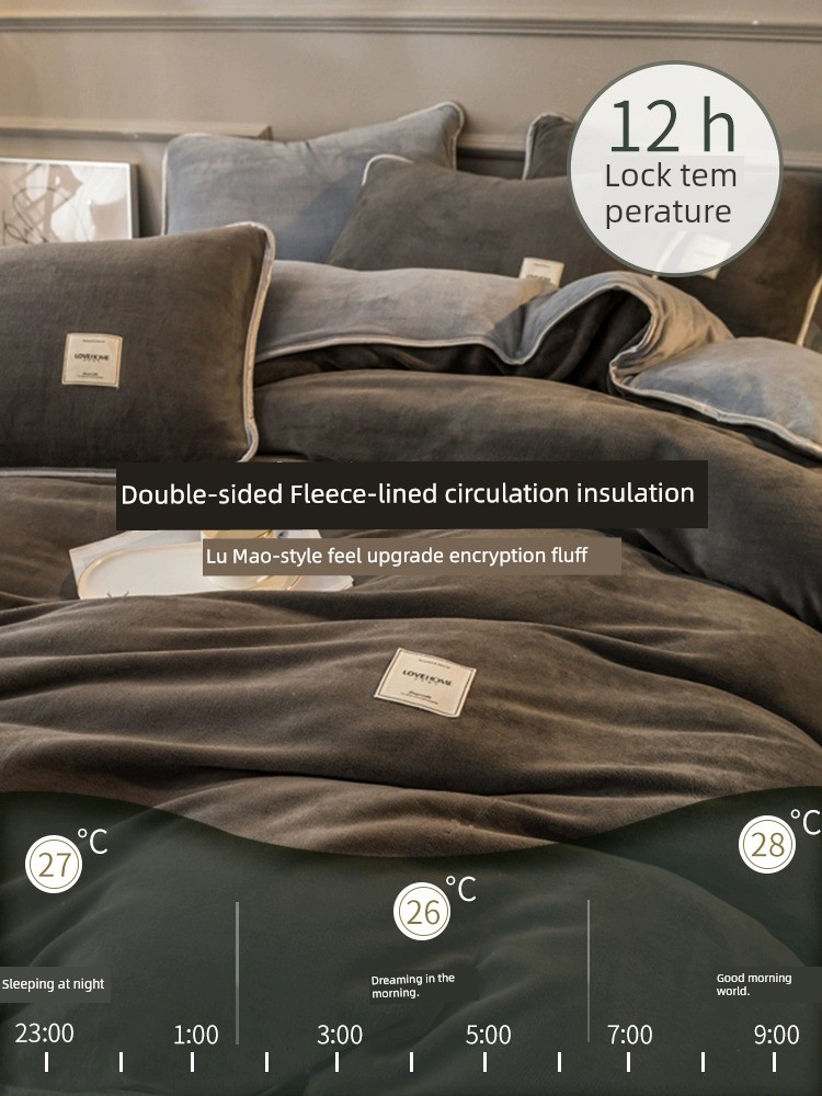 Winter Thickened Milk Fiber Four-Piece Set Fleece-lined Heattech Coral Fleece Duvet Cover Flannel Bed Sheet Duvet Cover Bedding