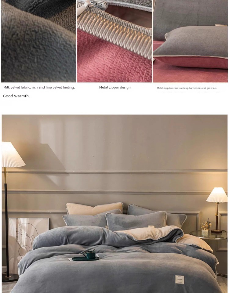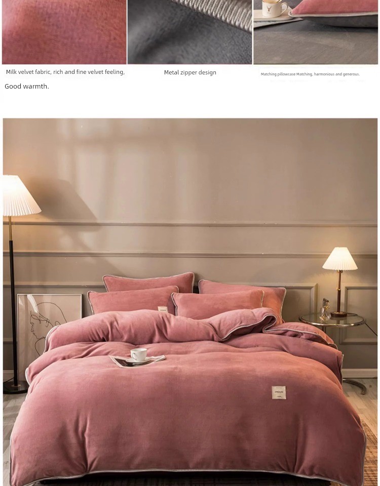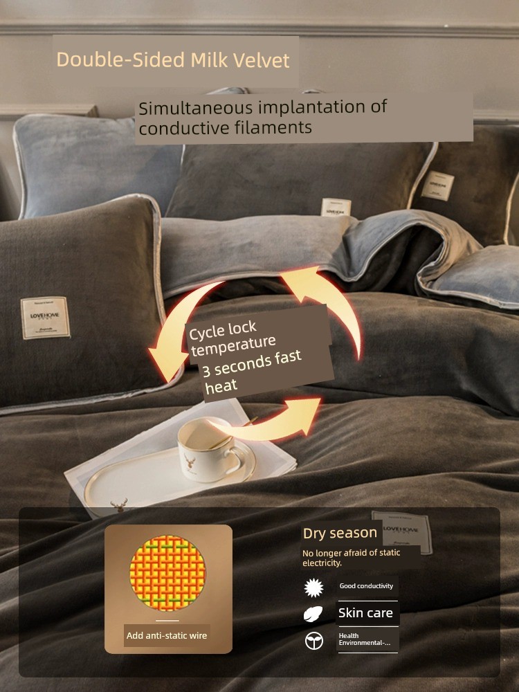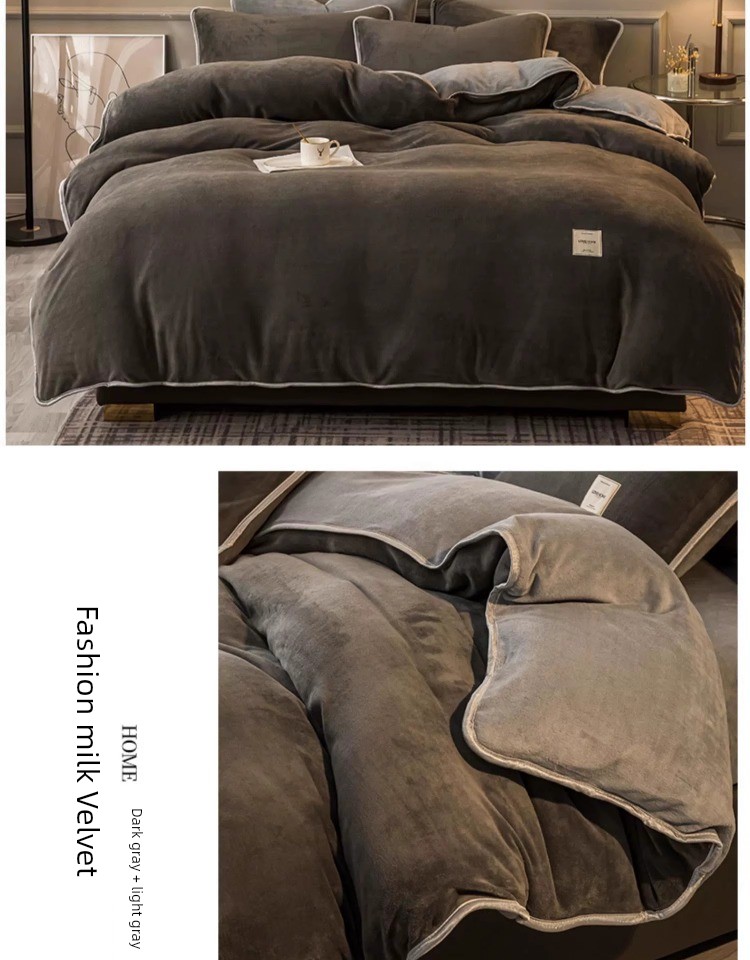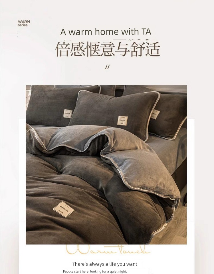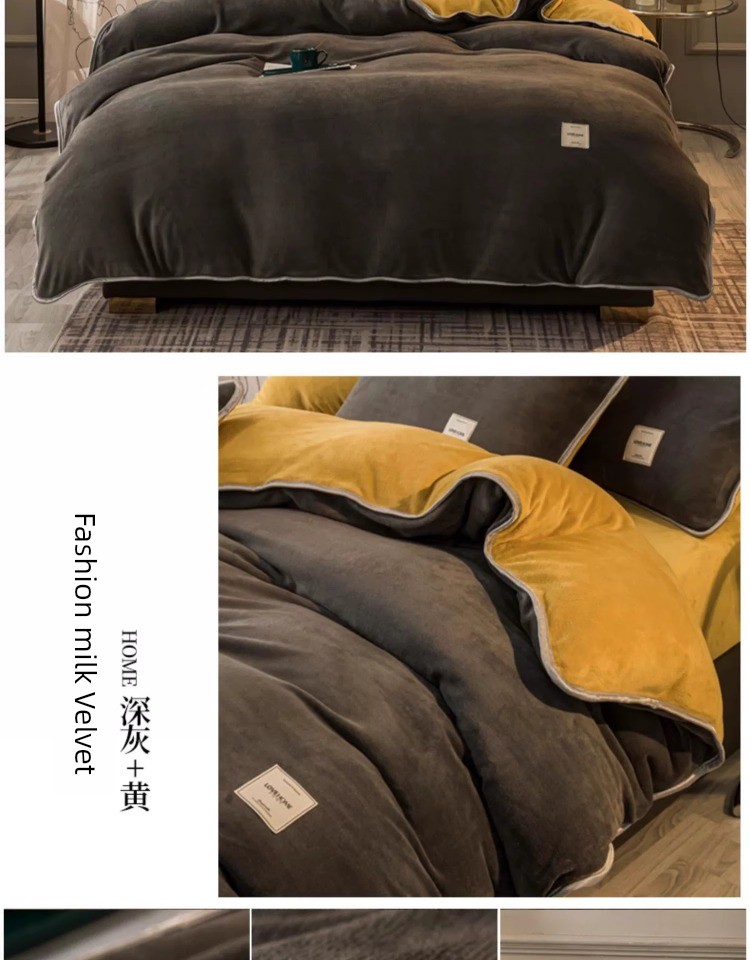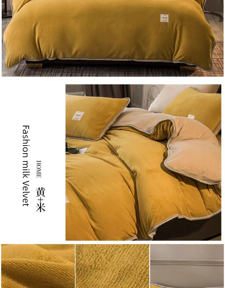 Winter Thickened Milk Fiber Four-Piece Set Fleece-lined Heattech Coral Fleece Duvet Cover Flannel Bed Sheet Duvet Cover Bedding