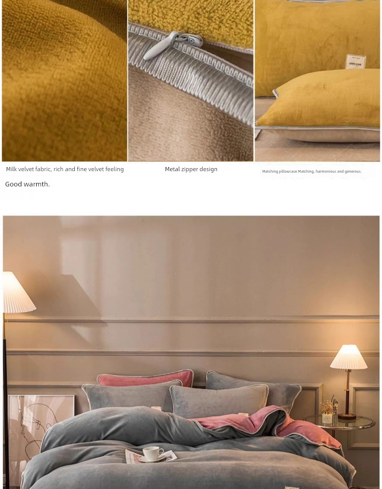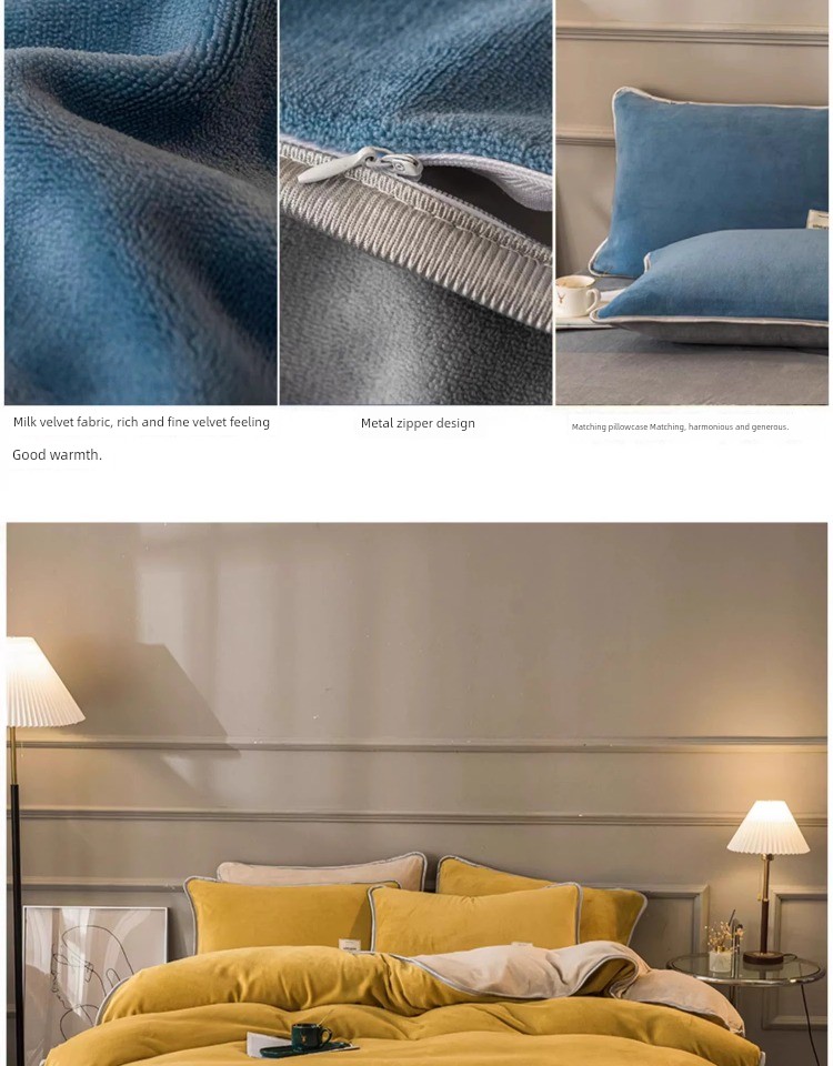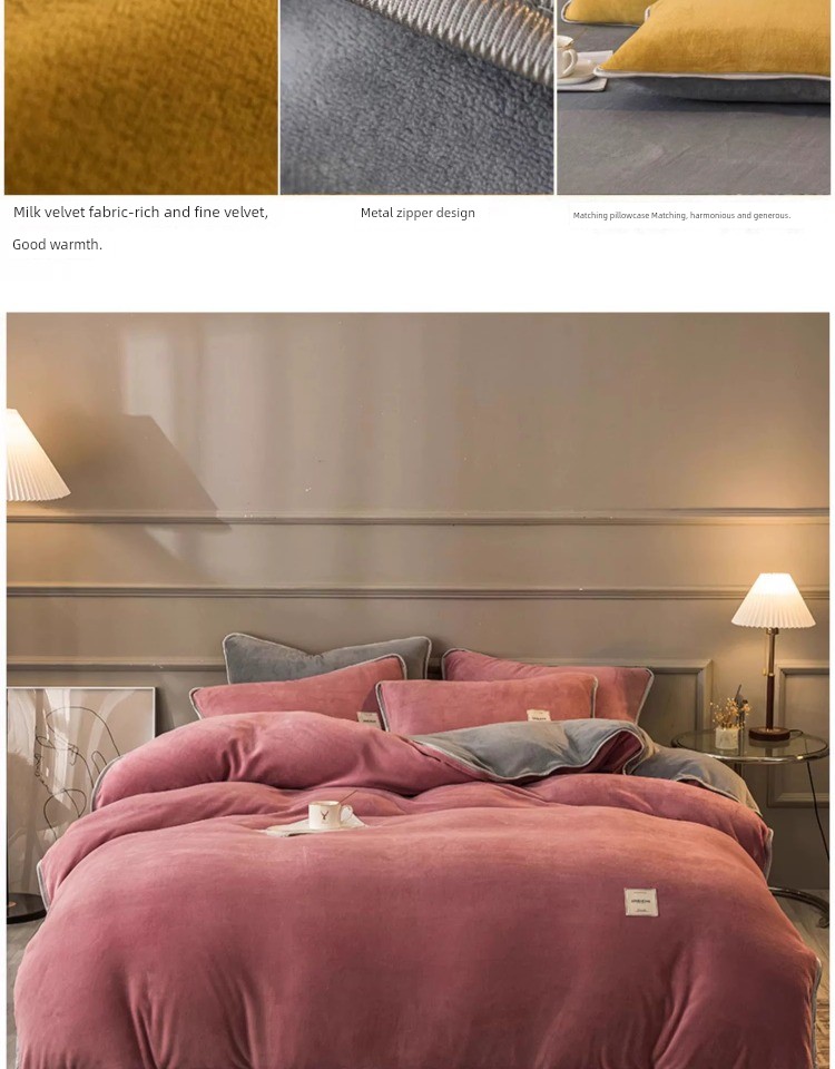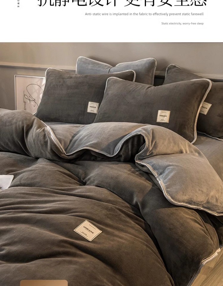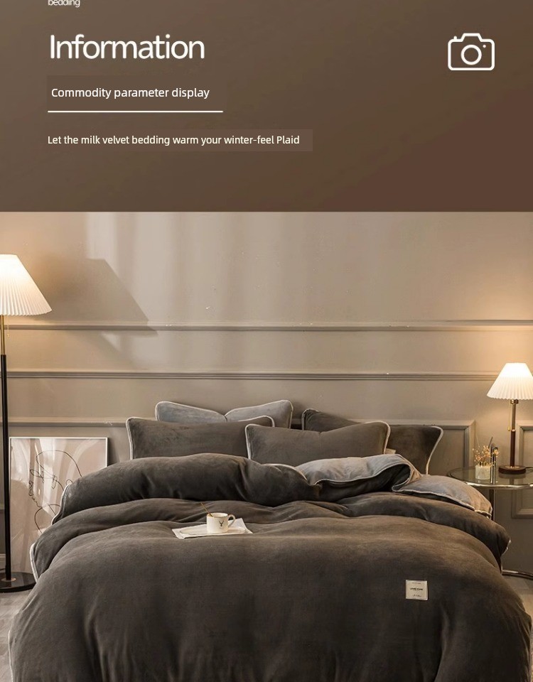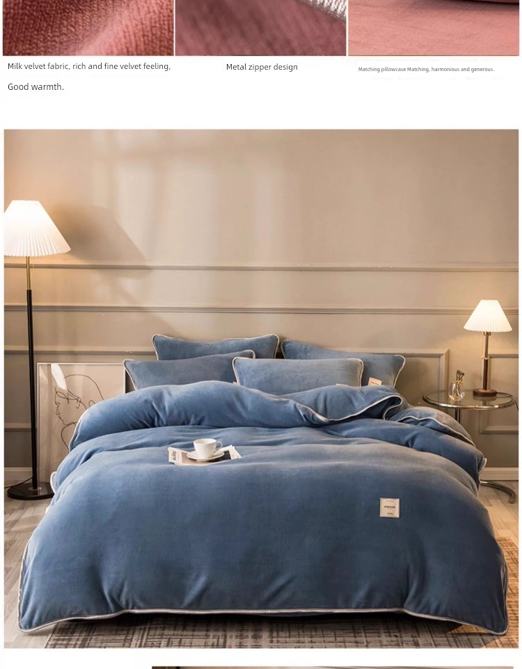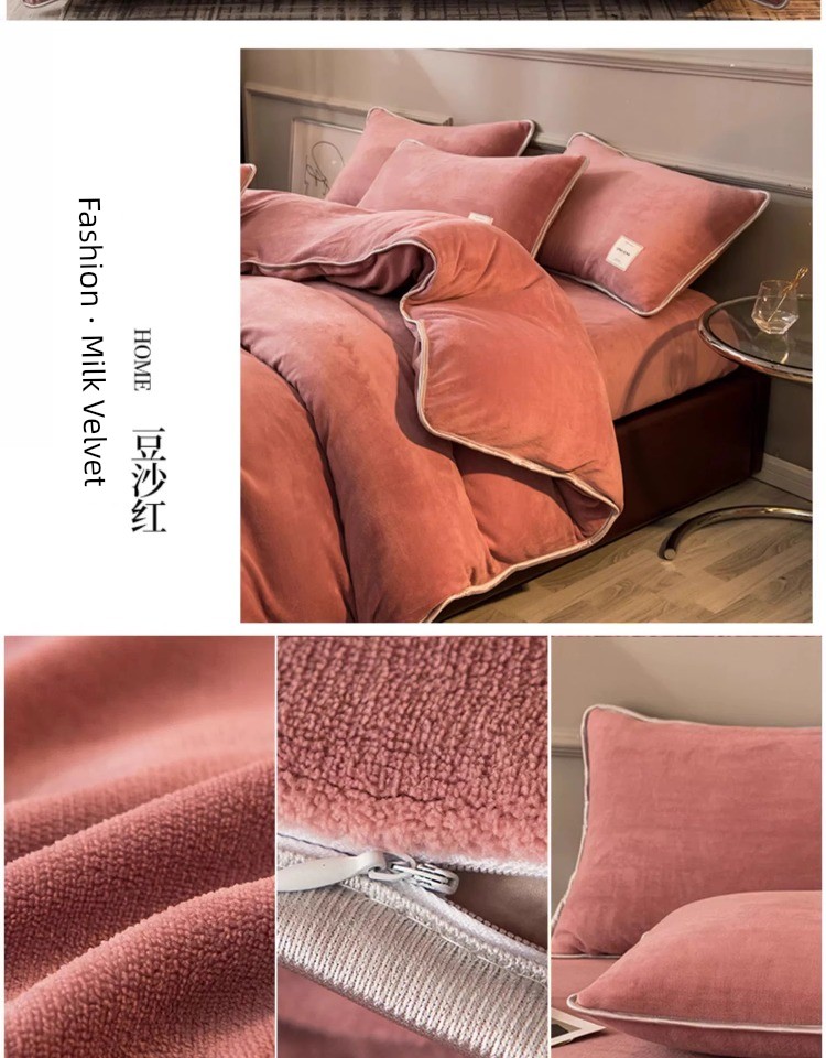 Winter Thickened Milk Fiber Four-Piece Set Fleece-lined Heattech Coral Fleece Duvet Cover Flannel Bed Sheet Duvet Cover Bedding