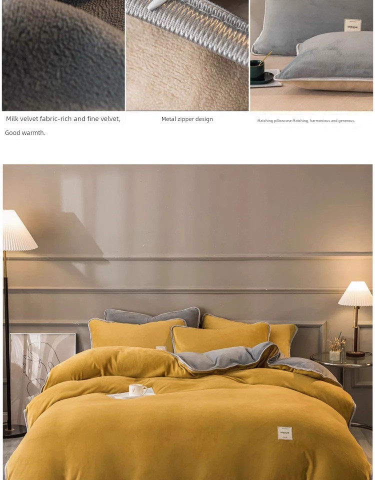 Fashionable Style - Dark Gray + Yellow [Double-Sided Plus Velvet for Quick Warmth and Sleeping Naked]