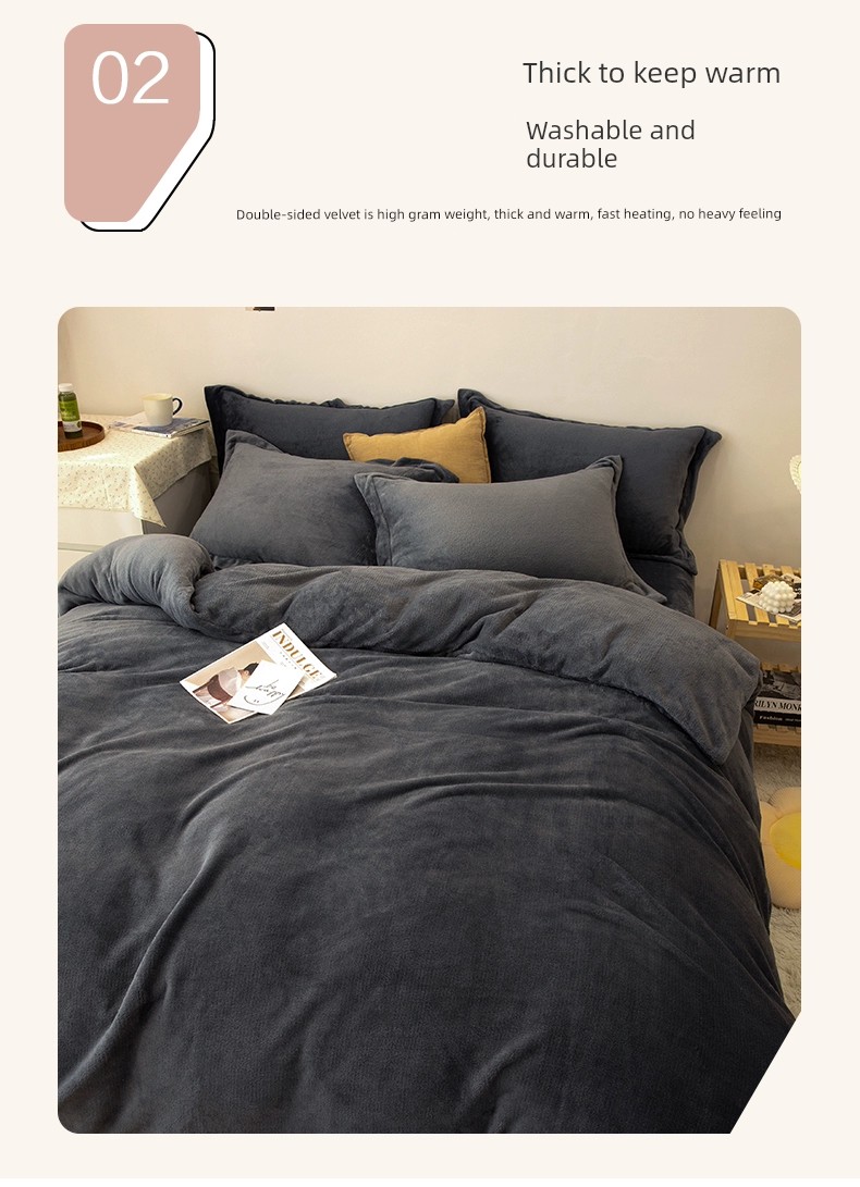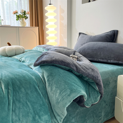 Milk Fiber Quilt Full Set of Coral Fleece Duvet Insert Quilt Cover One-Piece Quilt Winter Quilt Thickened Heattech Quilt