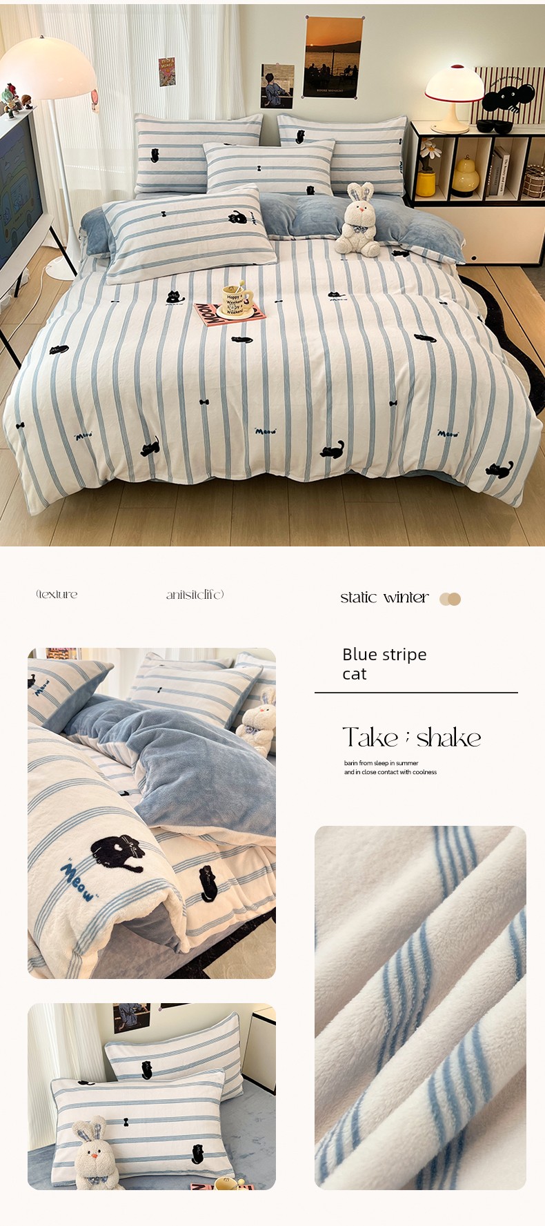 Blue Striped Cat [Fashion Print Milk Velvet]