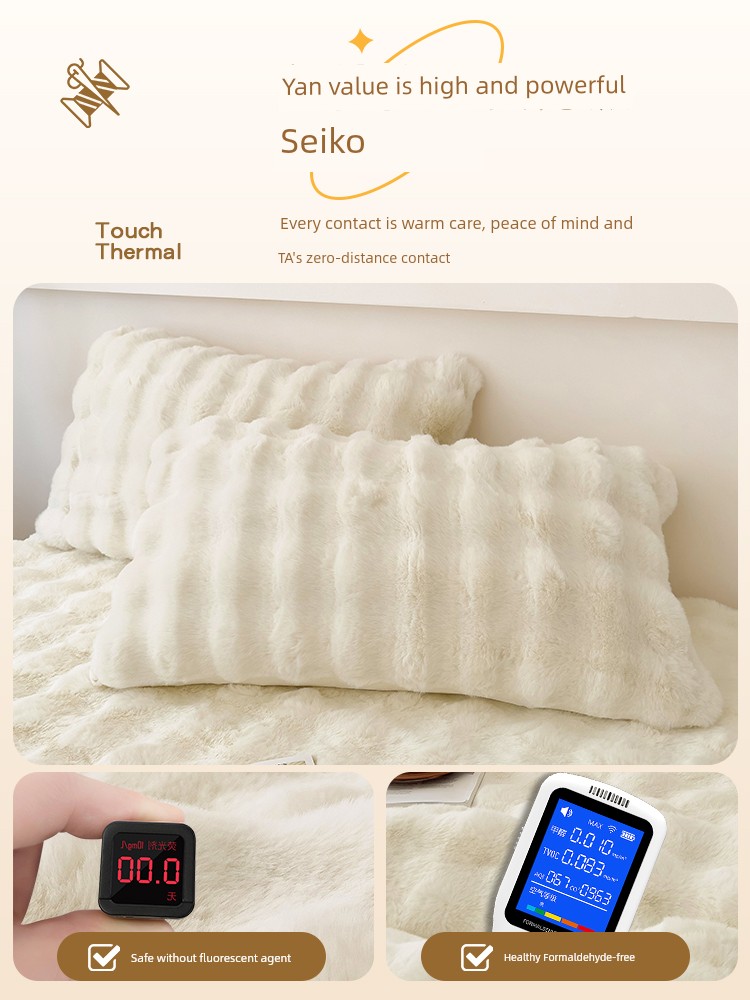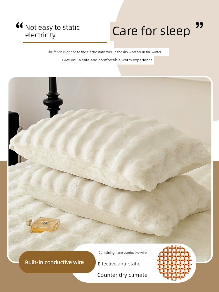 Dawn White [Thickened Rabbit Plush Pillowcase✅One Pair] [Zipper Style]