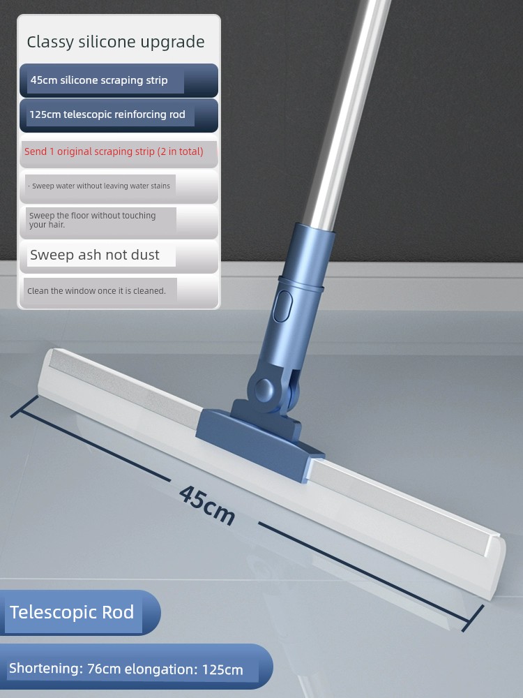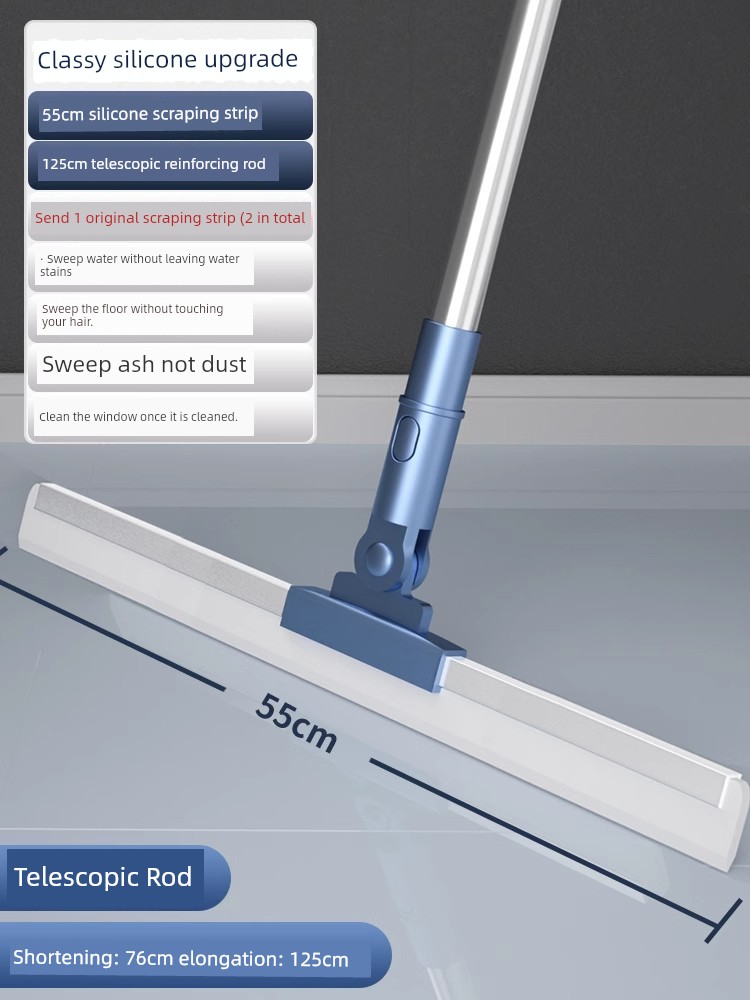 【52cm旋转刮头】加厚软硅胶条*2+126cm加粗不锈钢杆【扫地不飞灰,毛发不缠绕】