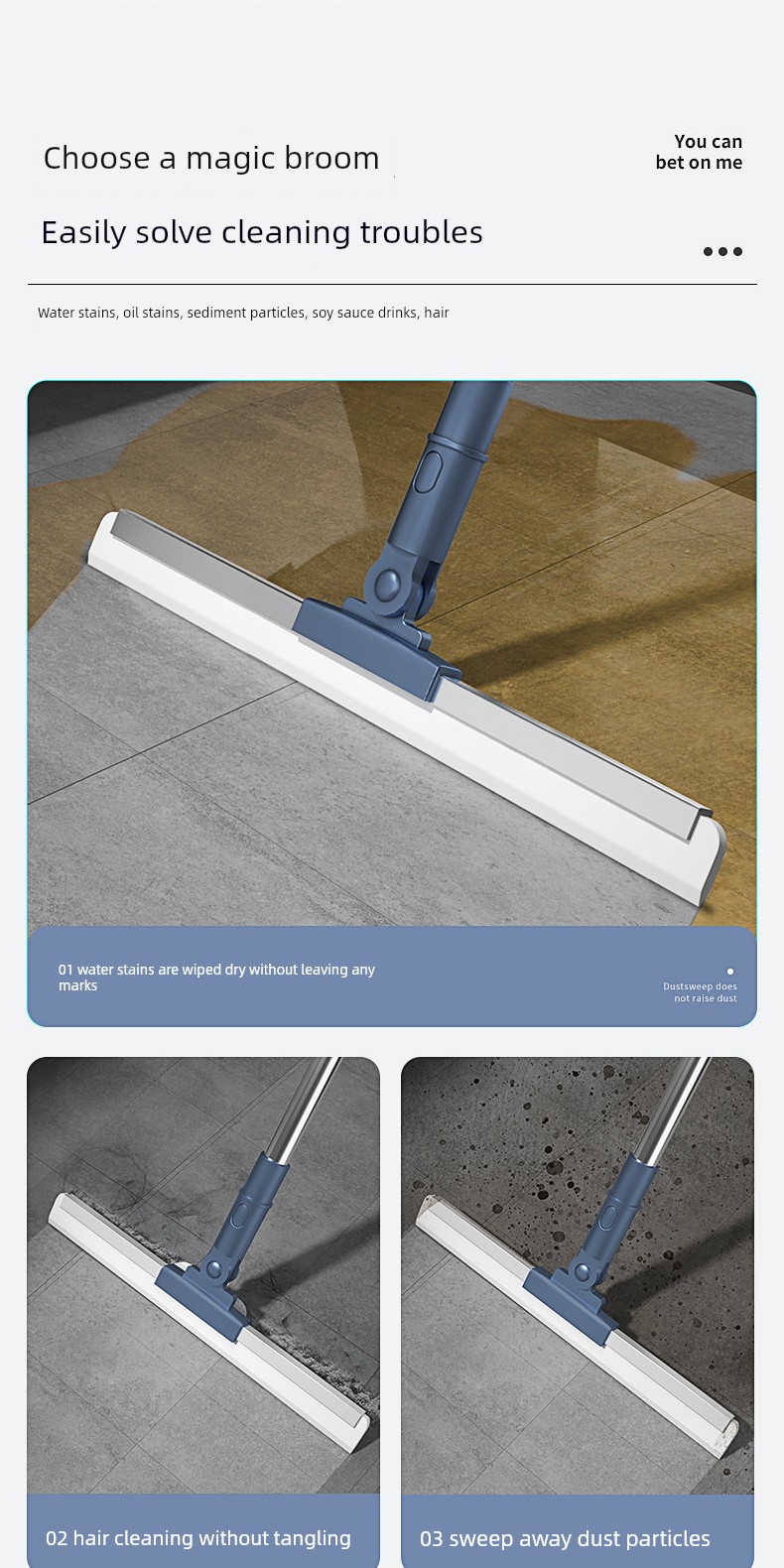 【52cm旋转刮头】加厚软硅胶条*1+126cm加粗不锈钢杆【扫地不飞灰,毛发不缠绕】