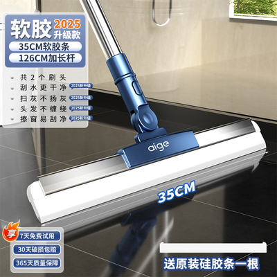 【35cm旋转刮头】加厚软硅胶条*2+126cm加粗不锈钢杆【扫地不飞灰,毛发不缠绕】