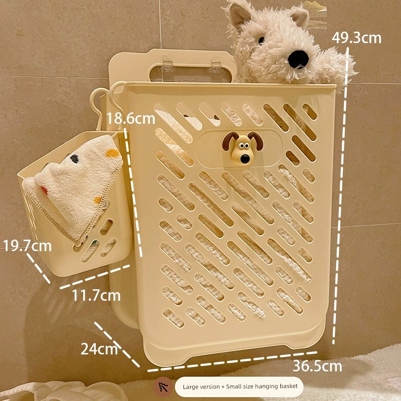Cream + Dog Head Sticker [Medium + Small Hanging Basket] Wall-Mounted Foldable