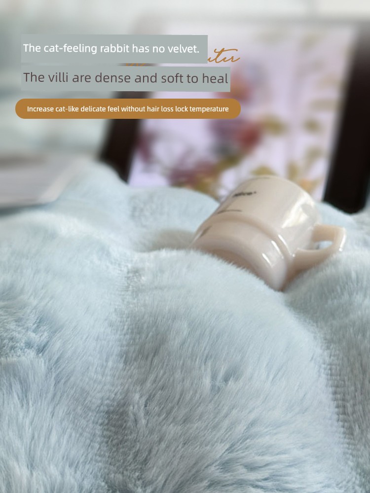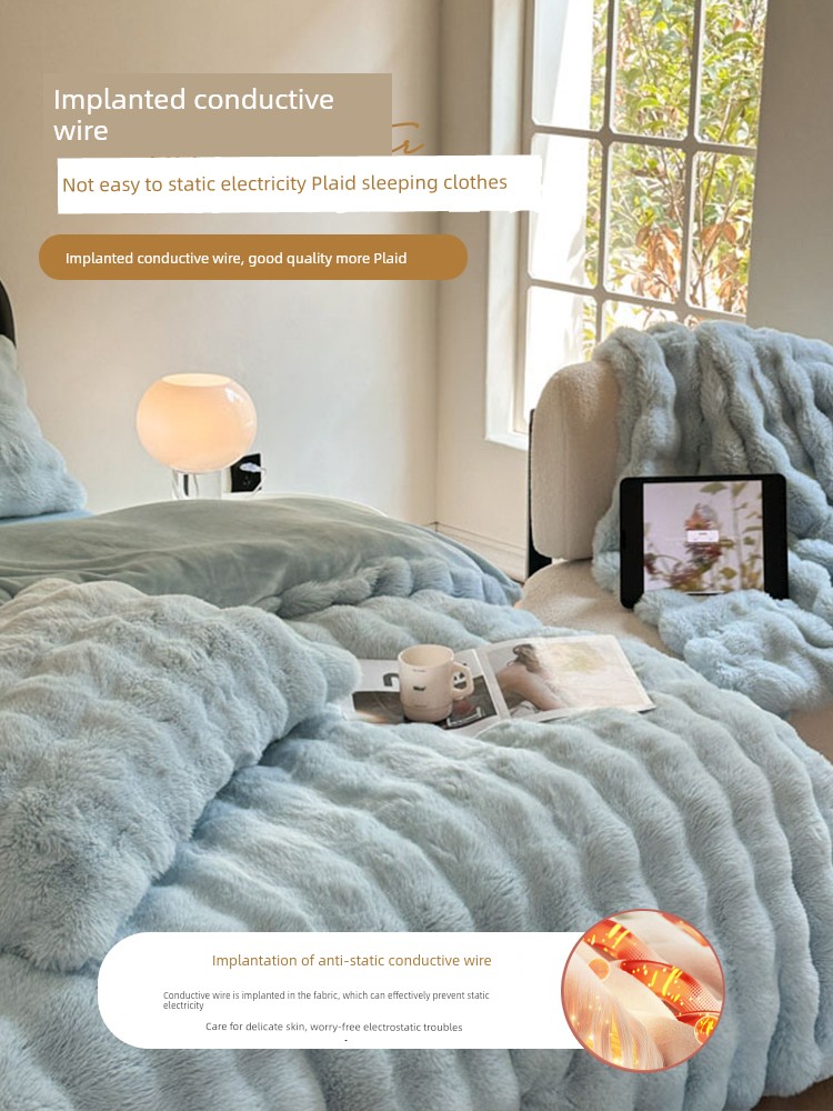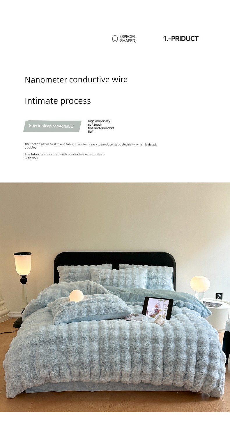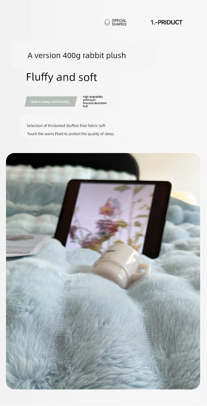 Cat-Like Rabbit Fur Plush Four-Piece Bedding Set for Winter, Thickened Milk Coral Fleece Bedding, Flannel Duvet Cover and Bed Sheet