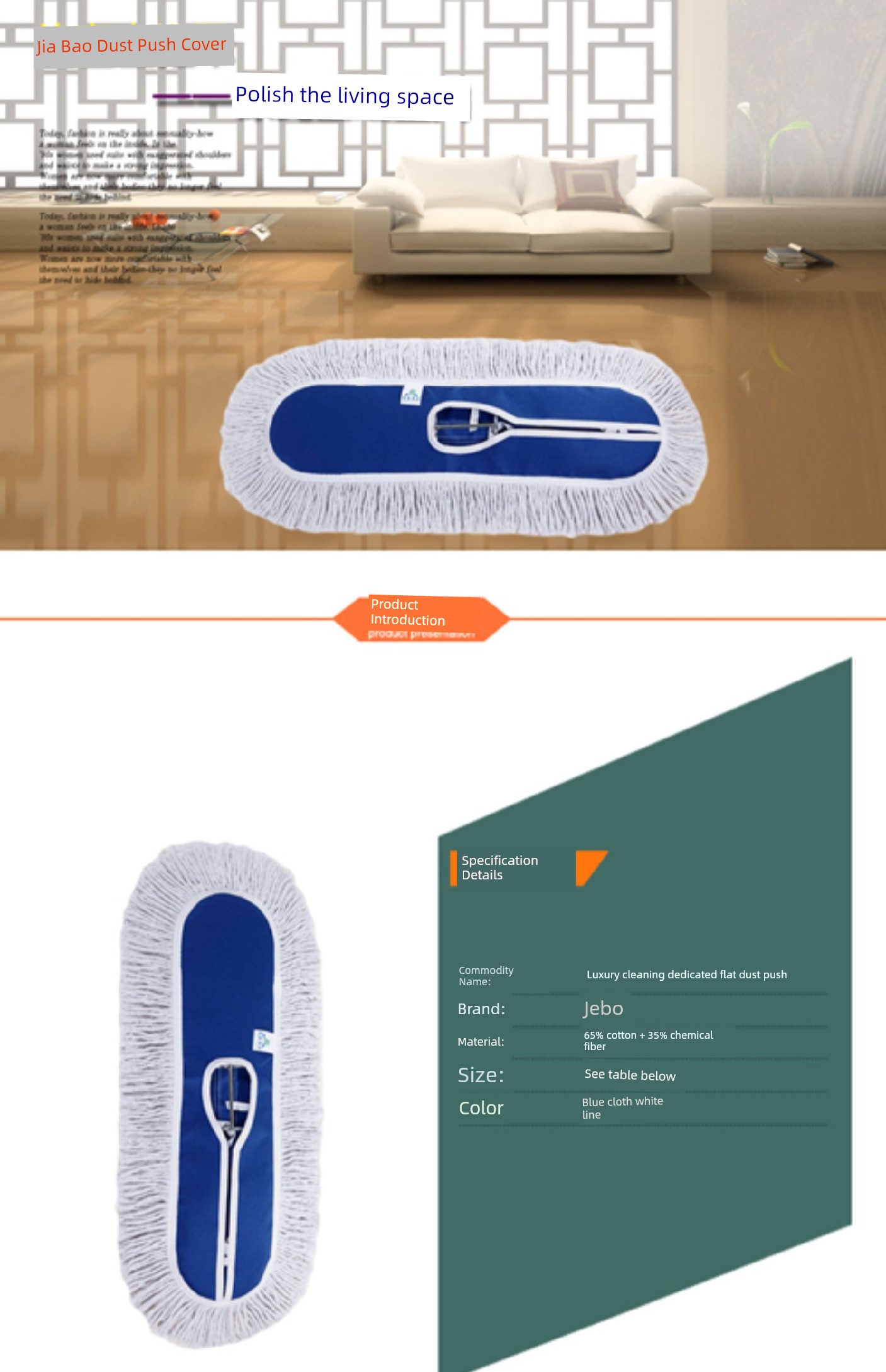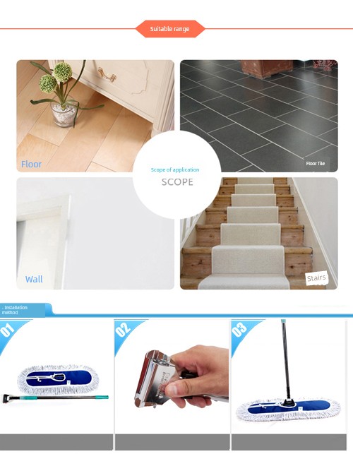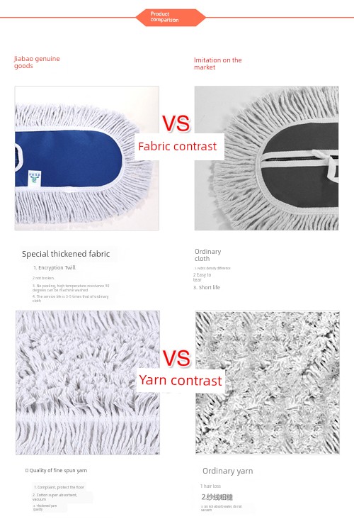 Dust Mop Flat Plate Mop Replacement Cloth Large Mop Stainless Steel Rod Thickened Mop Hotel Cotton Thread Mop Accessories Neutral