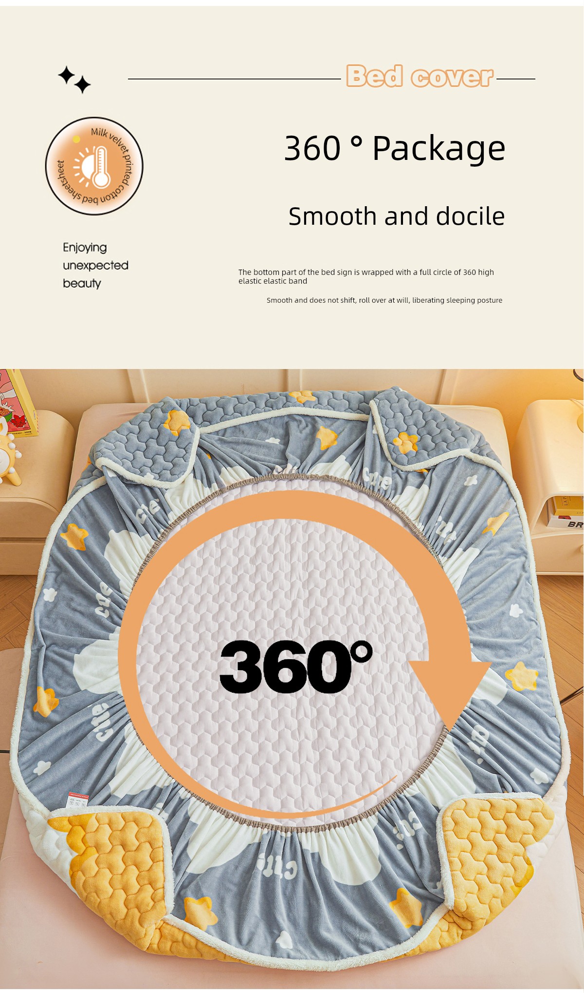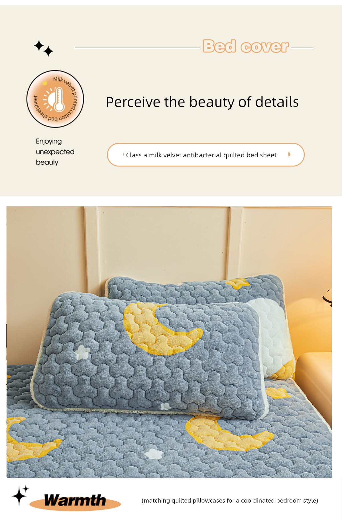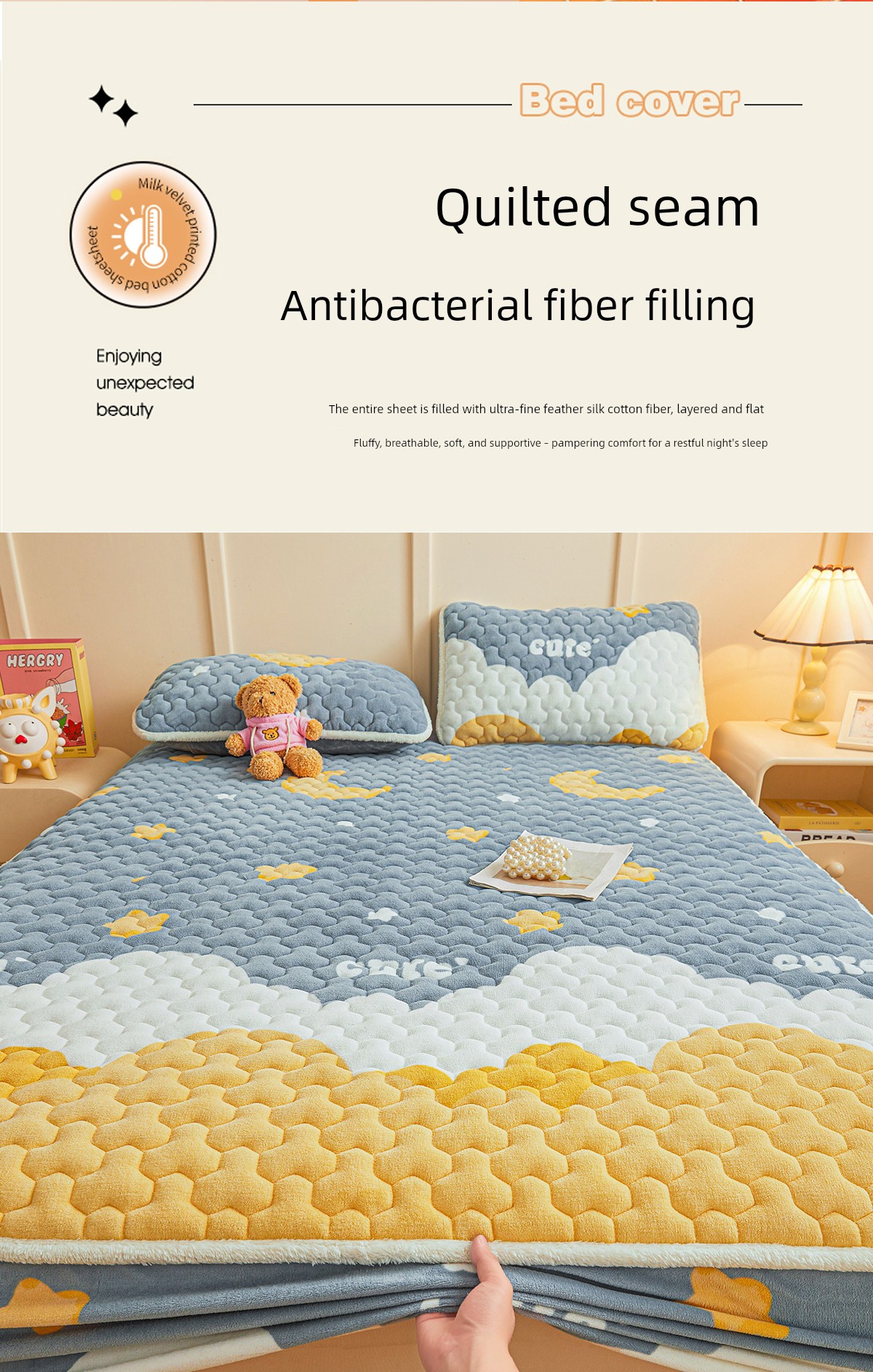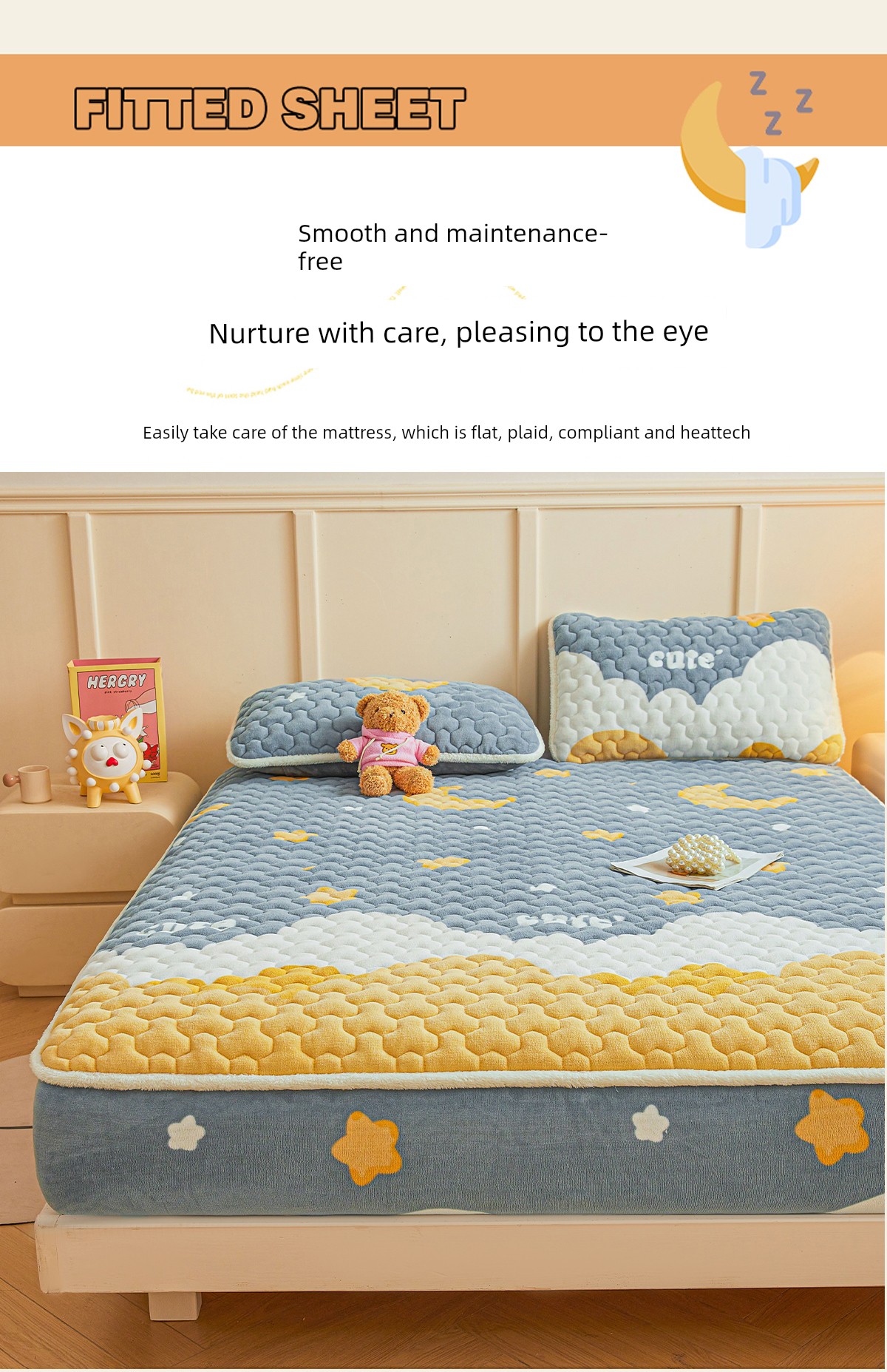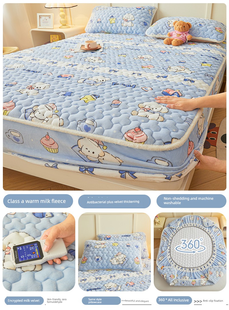 Class a Antibacterial Milk Velvet Quilted Fitted Sheet Bed Cover Fleece-Lined Winter Coral Velvet Mattress Cover Protector Three or Four-Piece Set