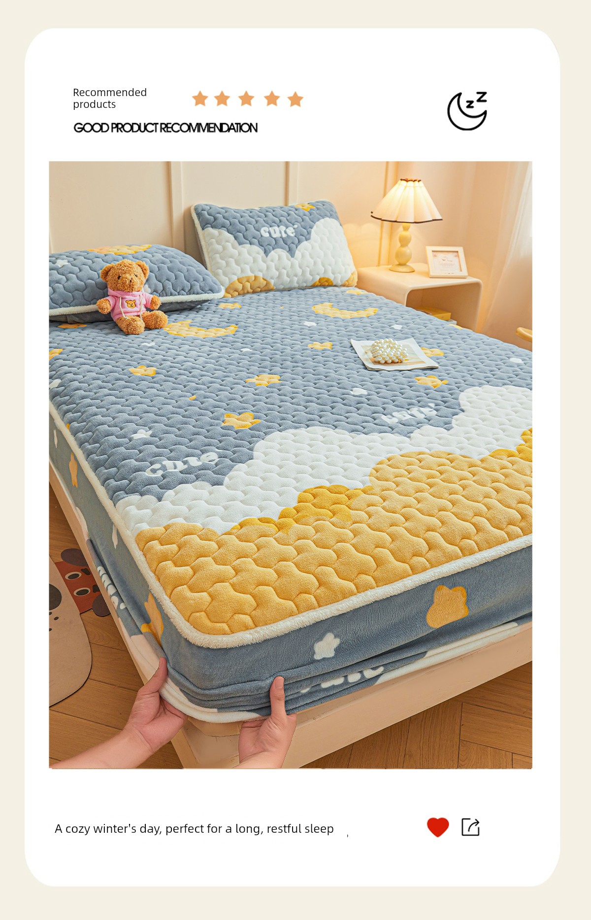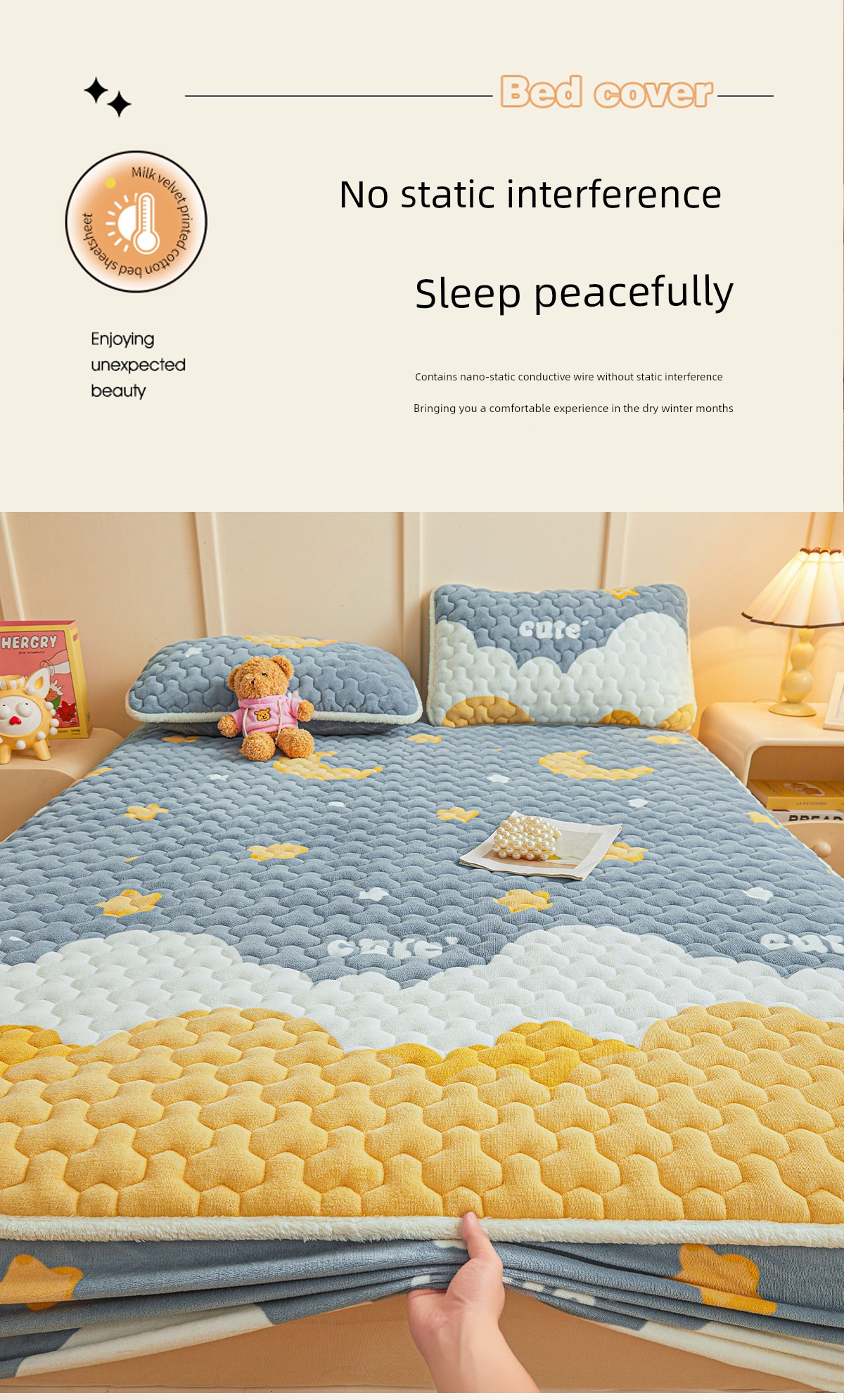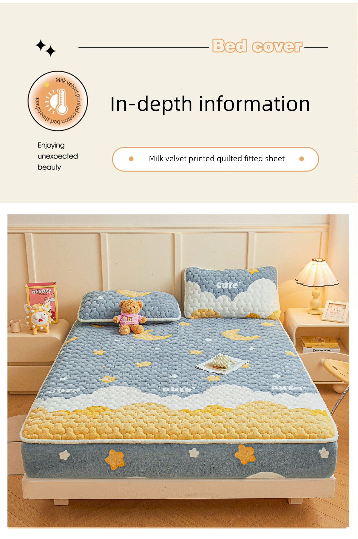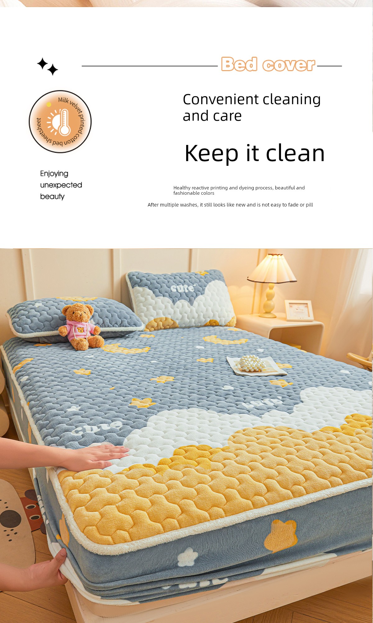 Class a Antibacterial Milk Velvet Quilted Fitted Sheet Bed Cover Fleece-Lined Winter Coral Velvet Mattress Cover Protector Three or Four-Piece Set