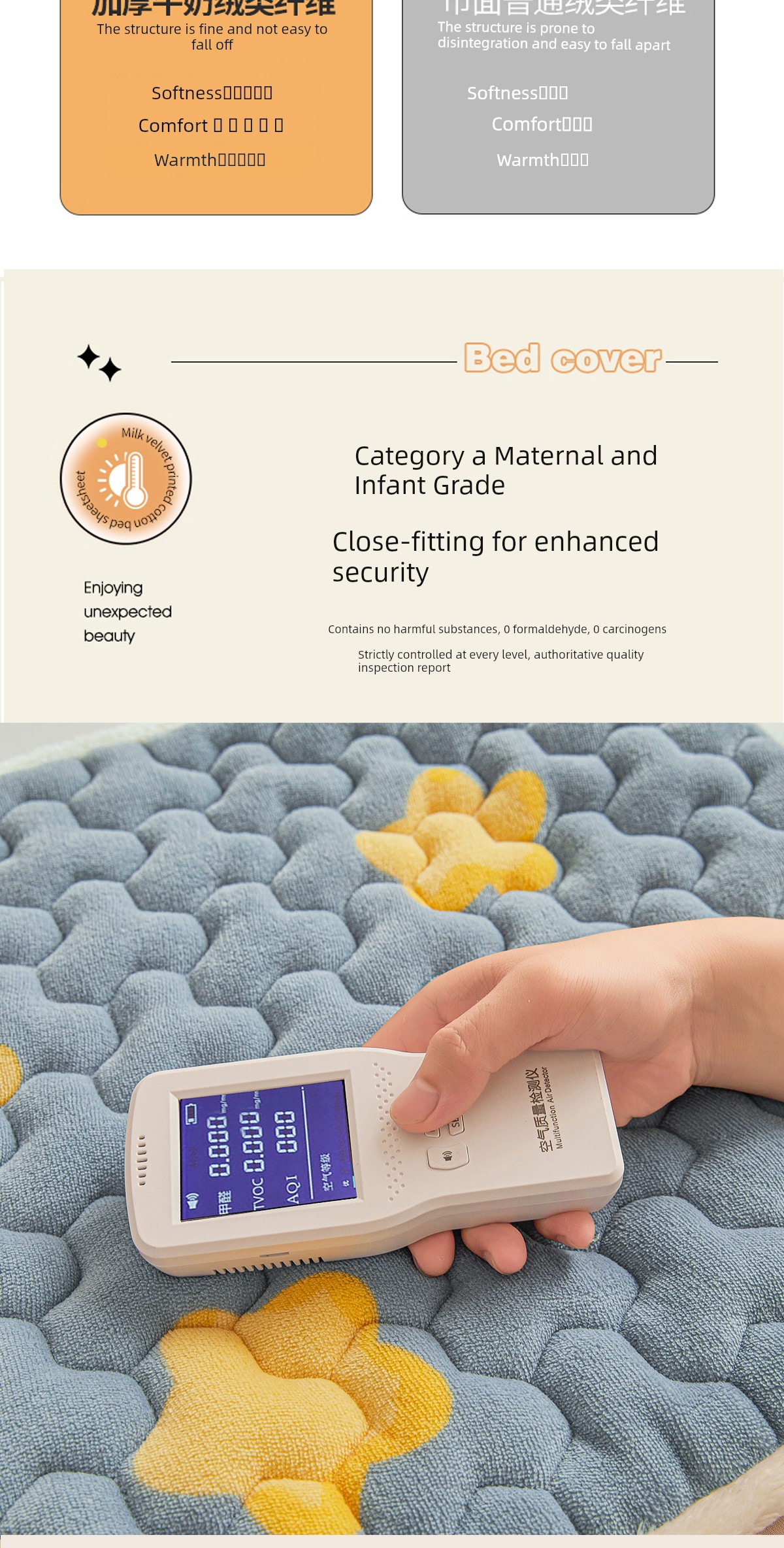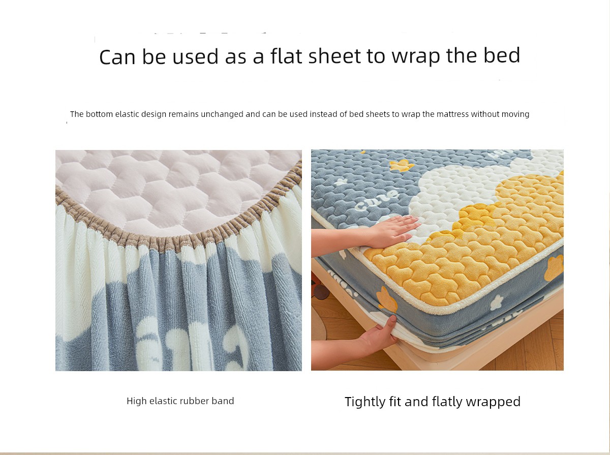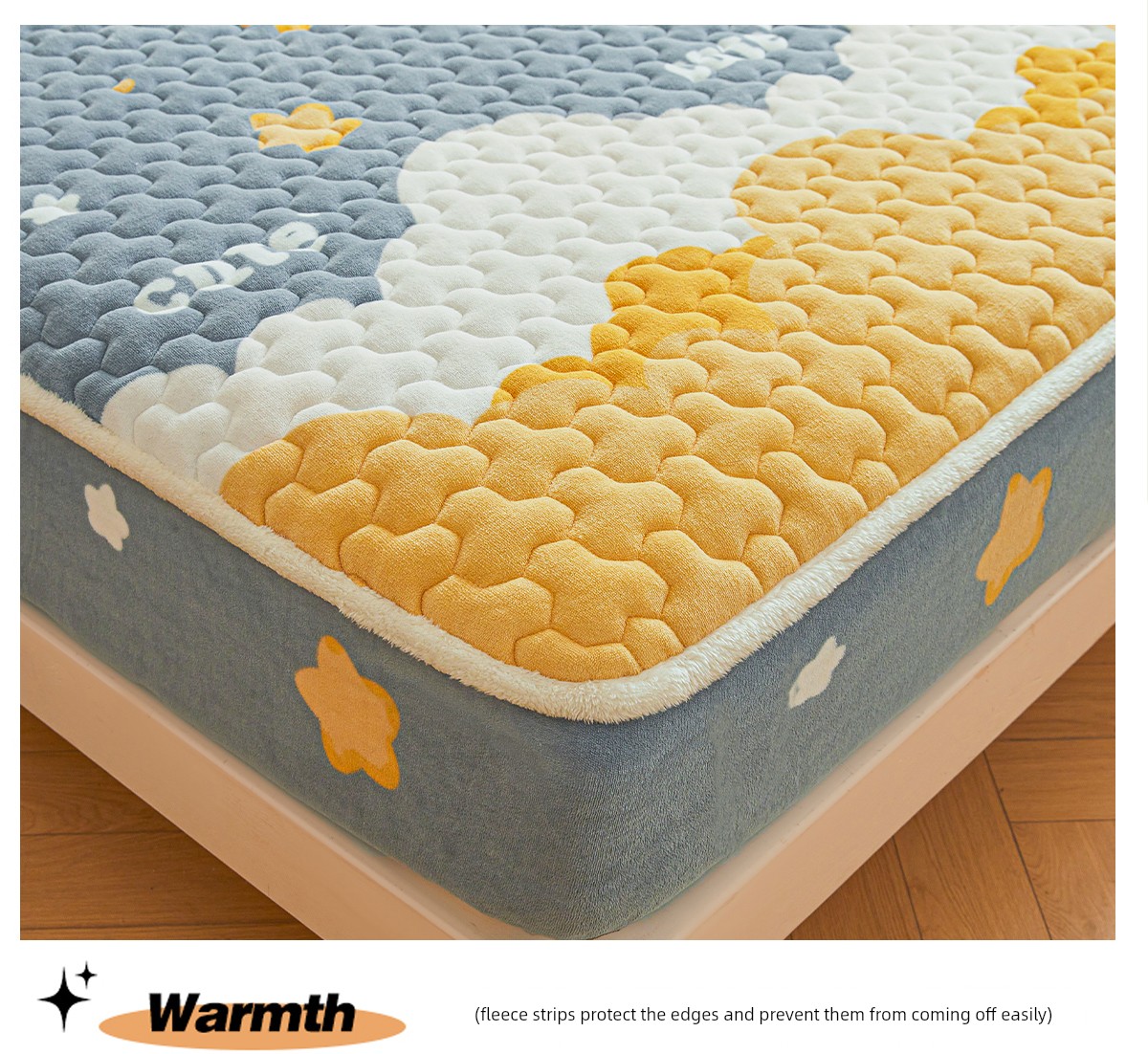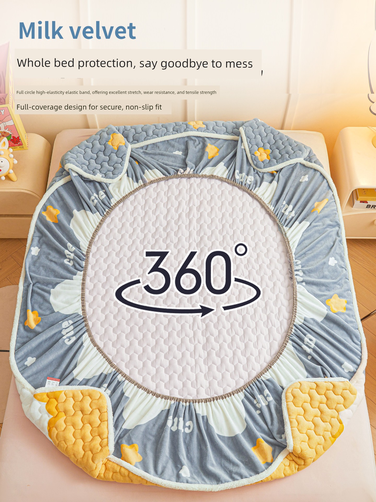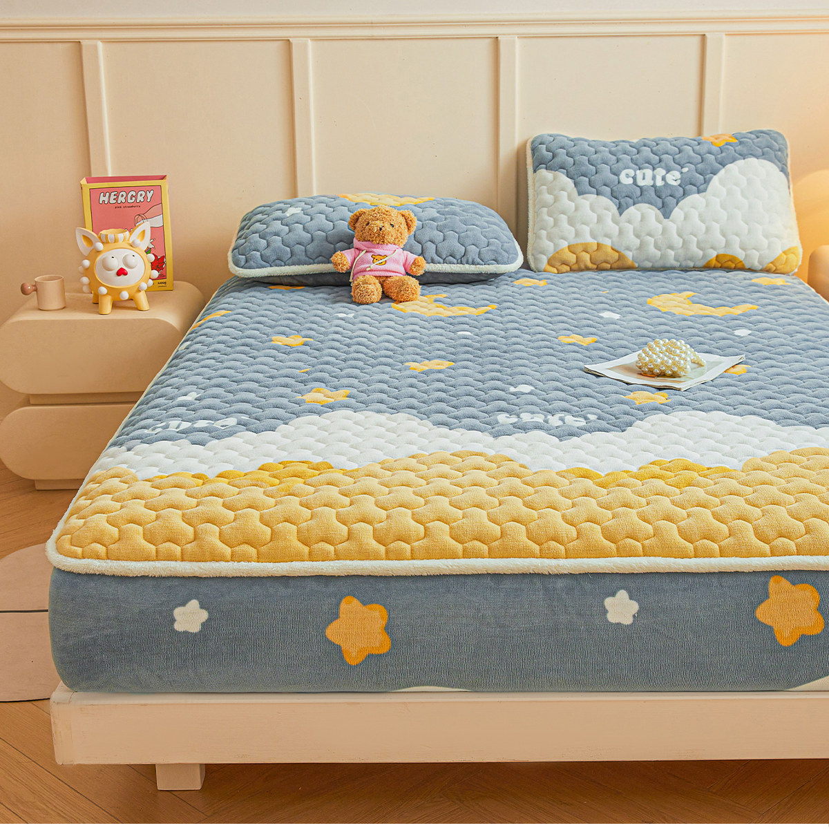 Class a Antibacterial Milk Velvet Quilted Fitted Sheet Bed Cover Fleece-Lined Winter Coral Velvet Mattress Cover Protector Three or Four-Piece Set