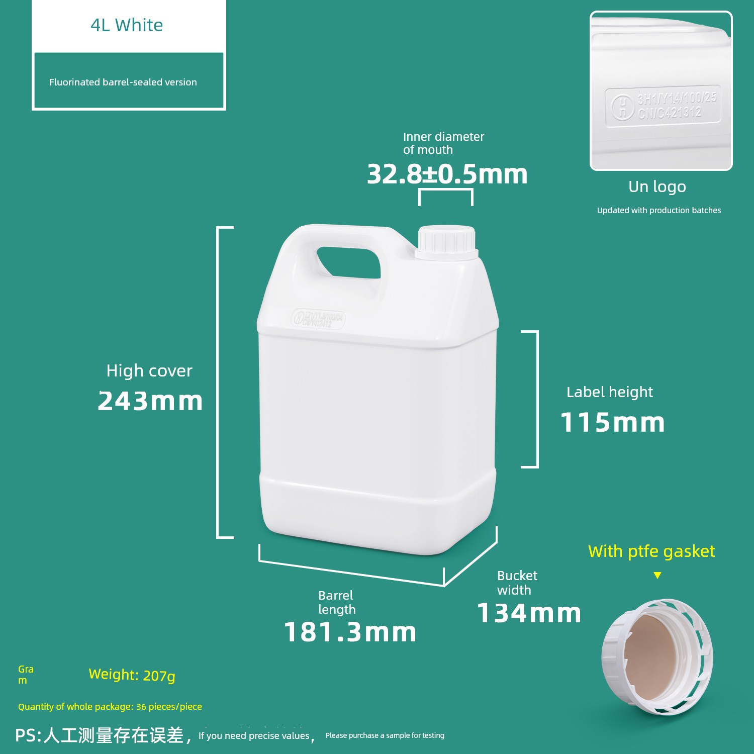 4L Fluorinated Barrel White-With Aluminum Foil Gasket