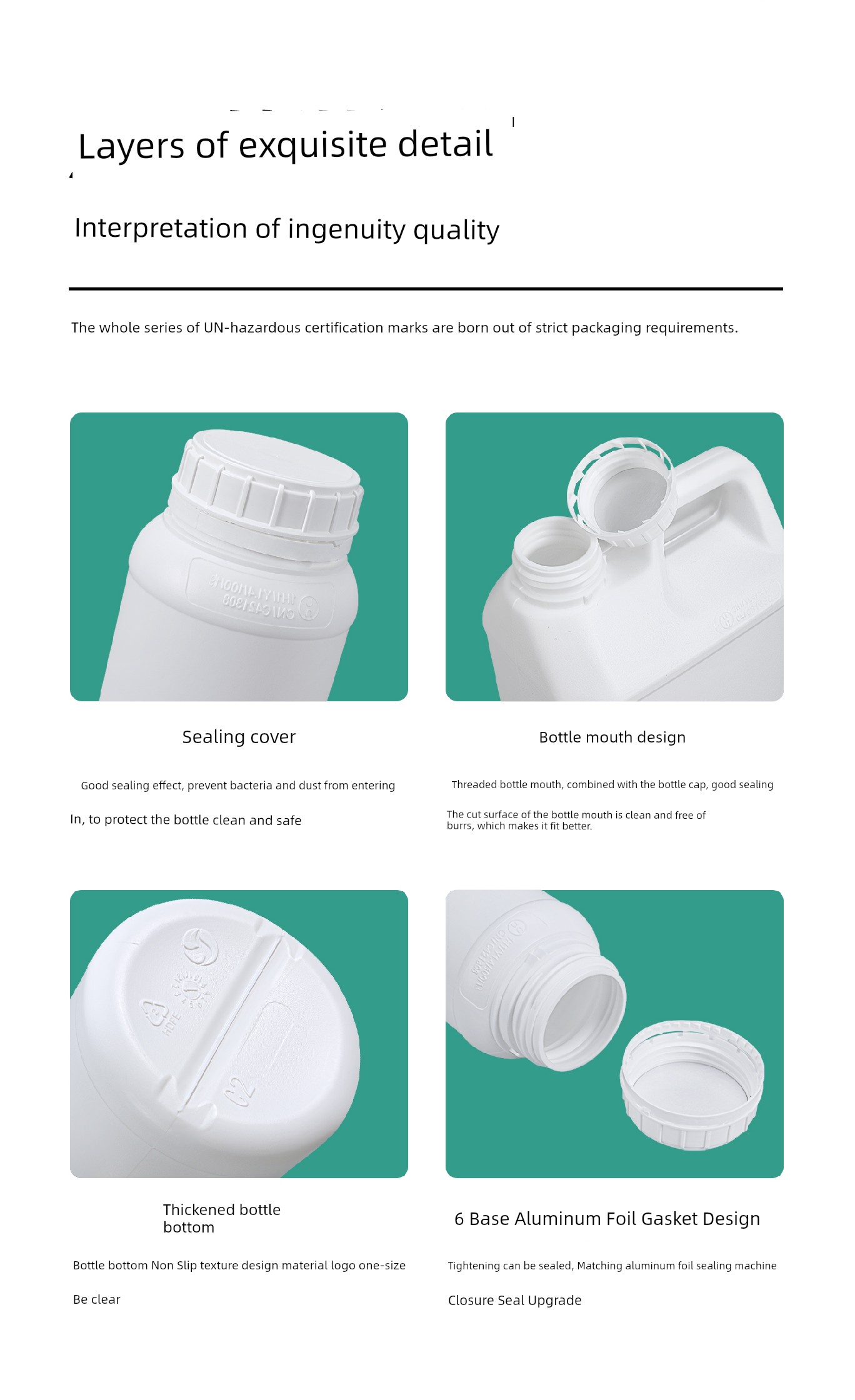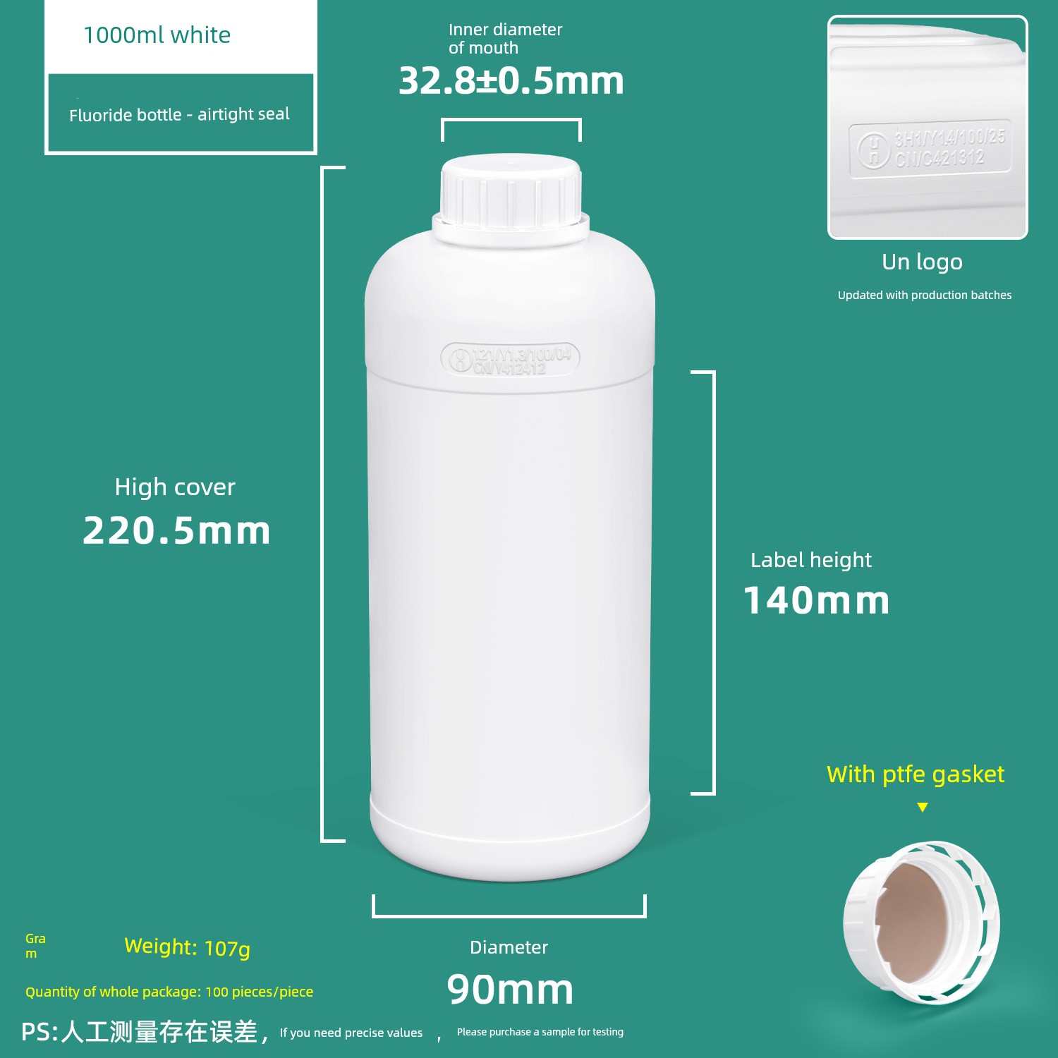 1000ml Large Mouth Fluorine Bottle White - with Aluminum Foil Gasket