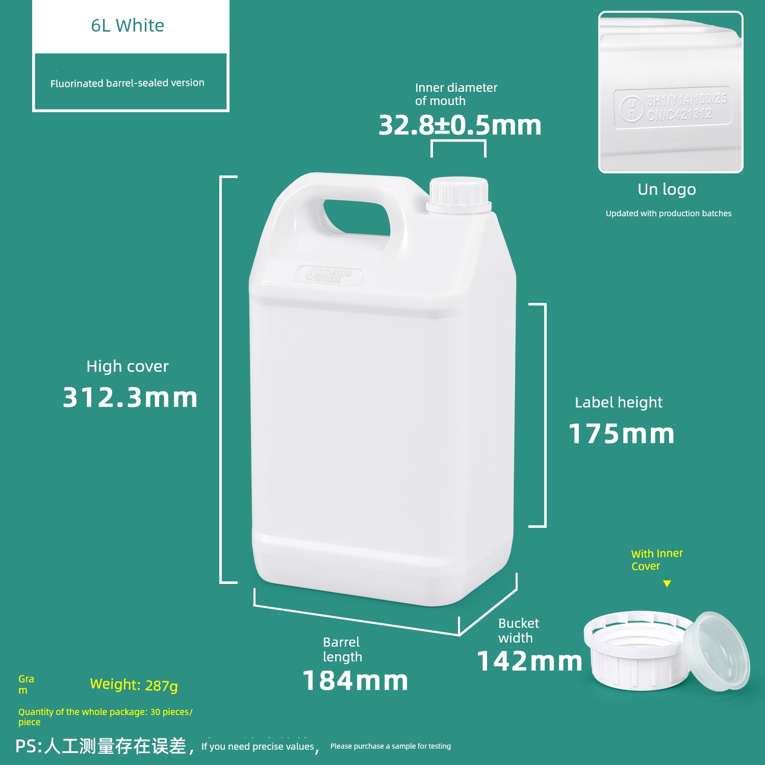 6L Fluorinated Barrel White-With Fluorinated Inner Lid