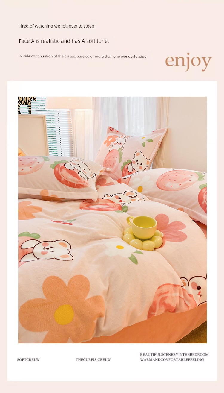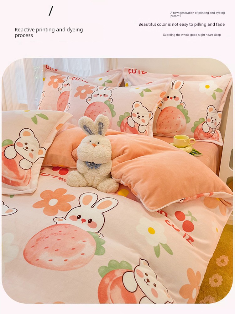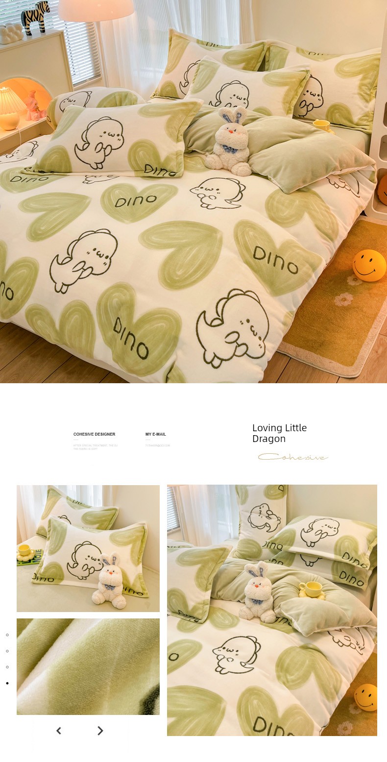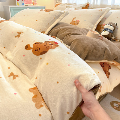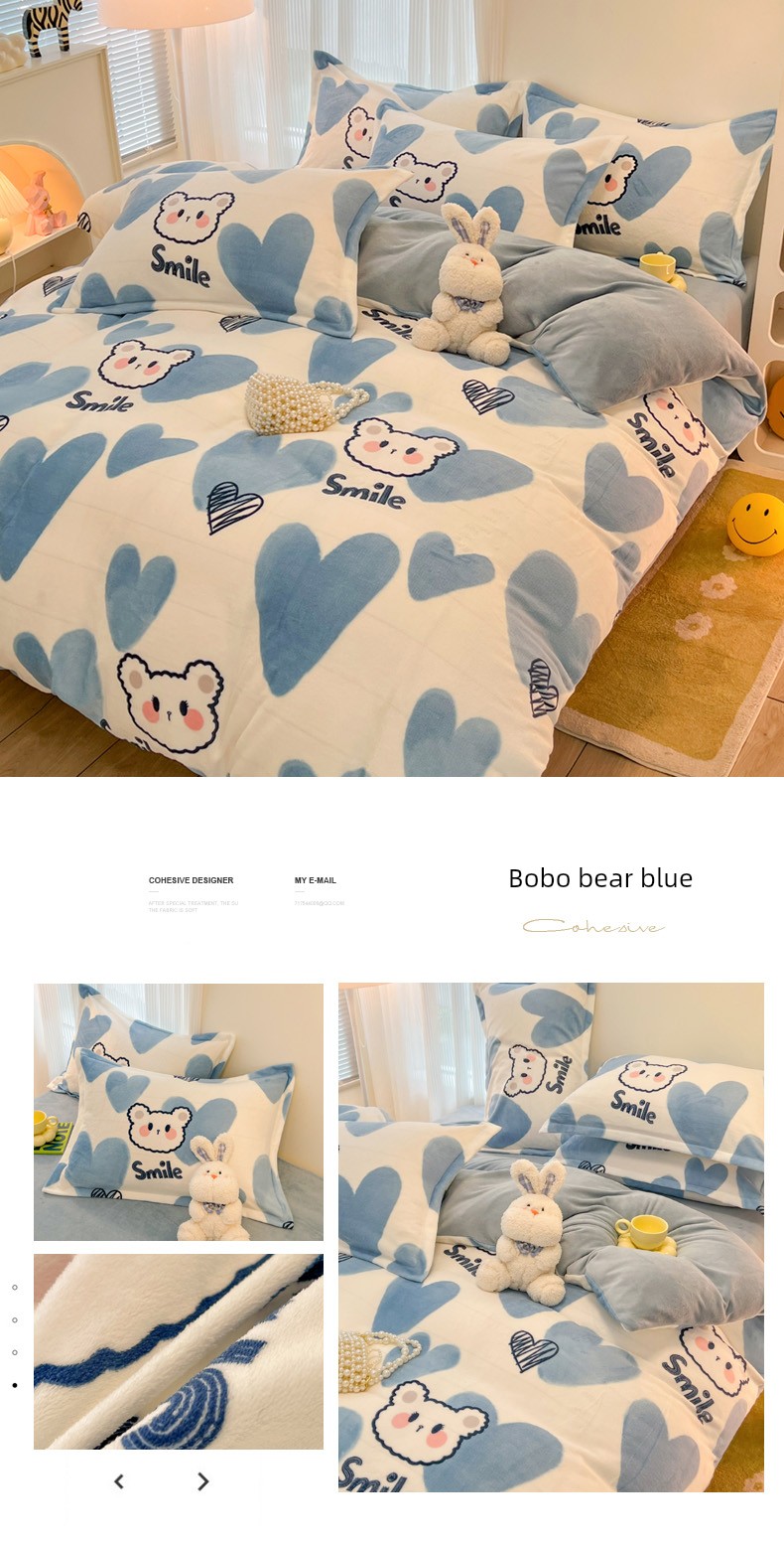 Milk Fiber Coral Fleece Duvet Cover Single Piece Winter Thickened Velvet Padded Flannel Duvet Cover Three-Piece Student Dormitory Kids