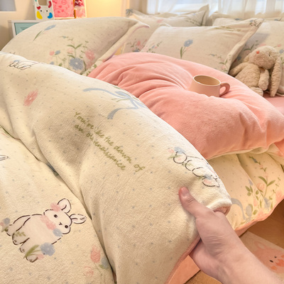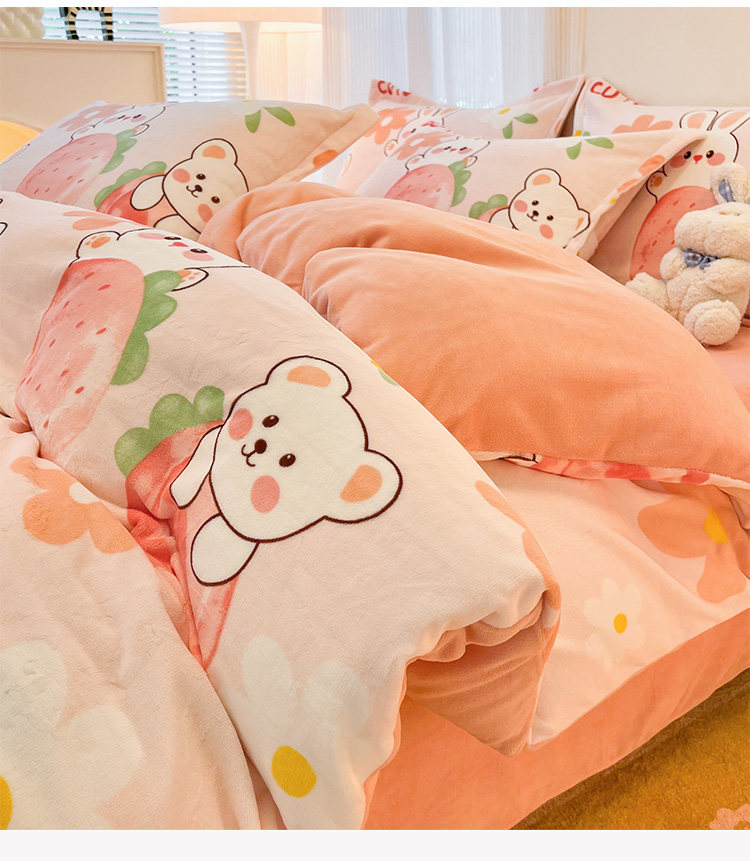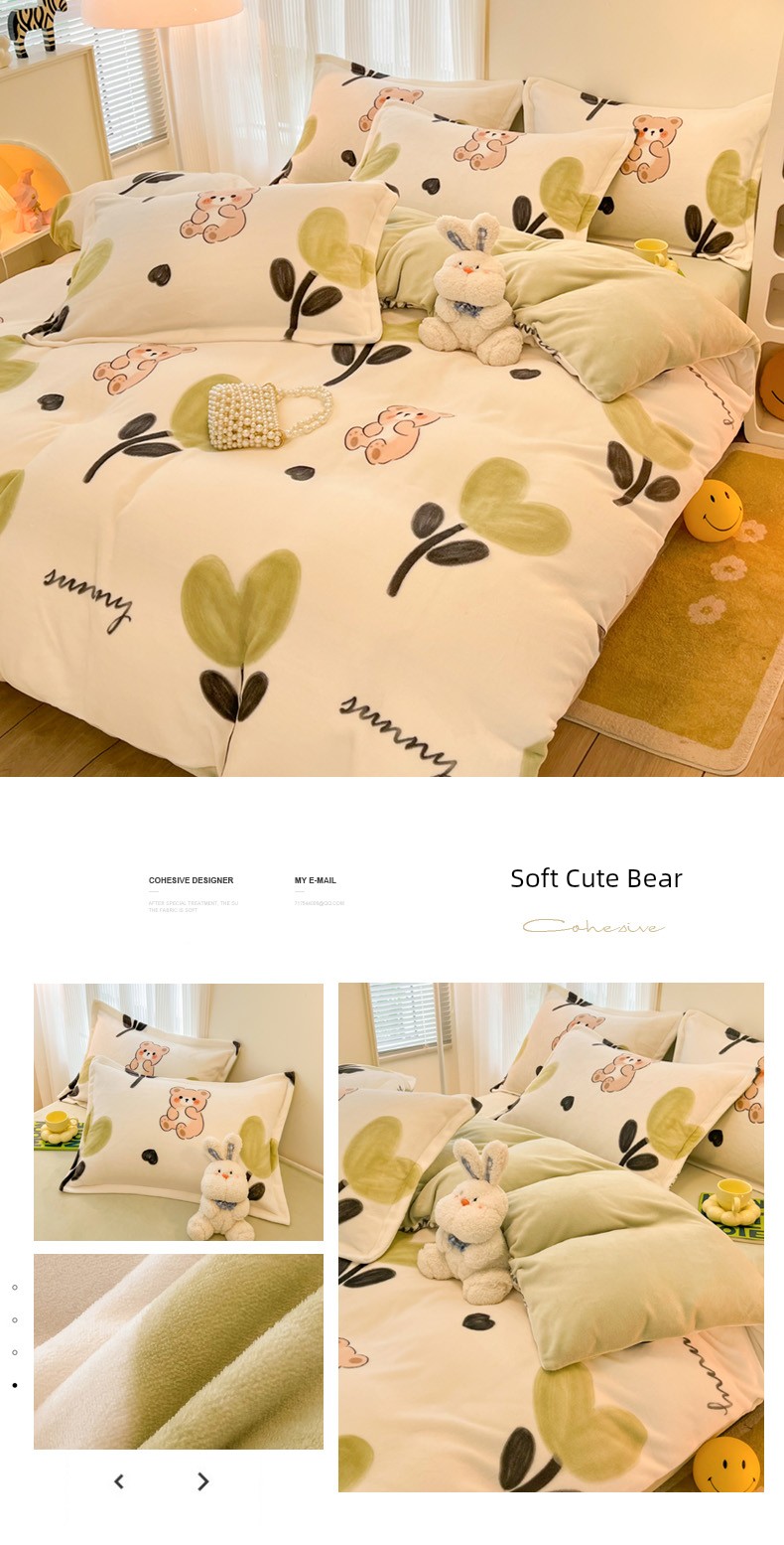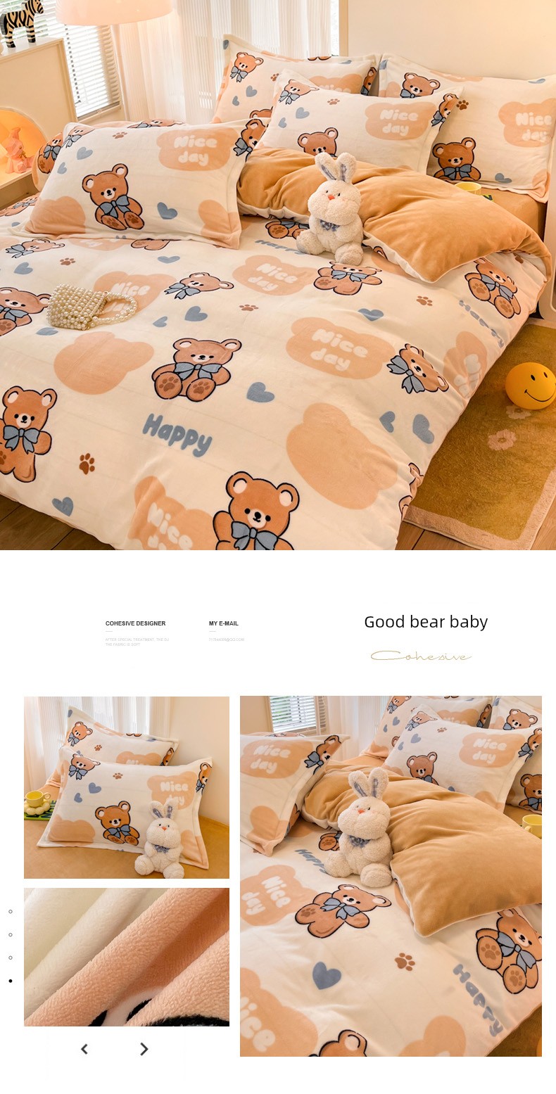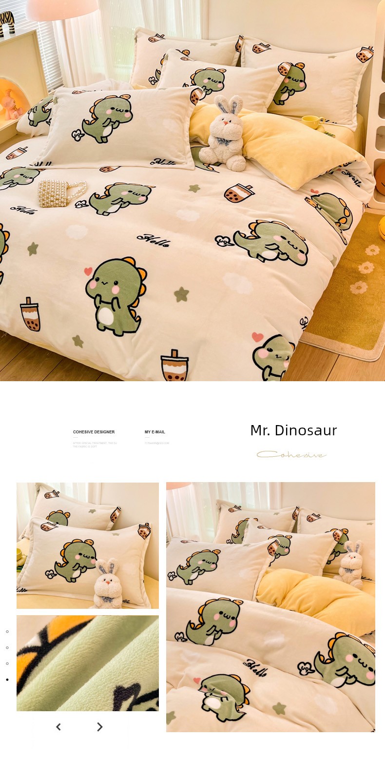 Milk Fiber Coral Fleece Duvet Cover Single Piece Winter Thickened Velvet Padded Flannel Duvet Cover Three-Piece Student Dormitory Kids