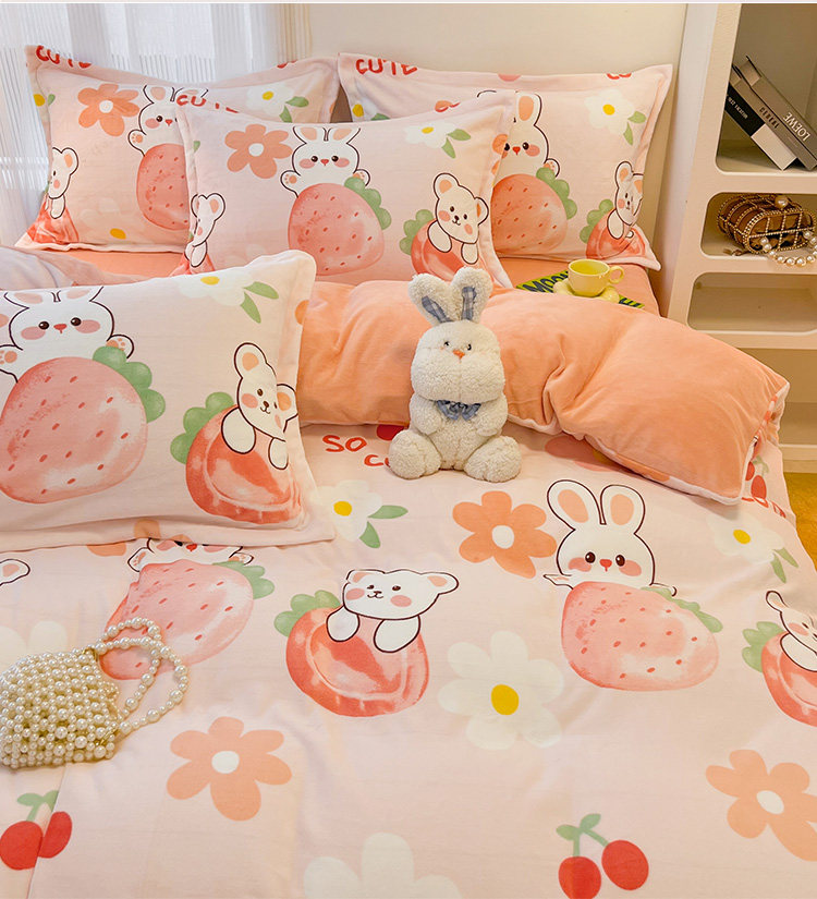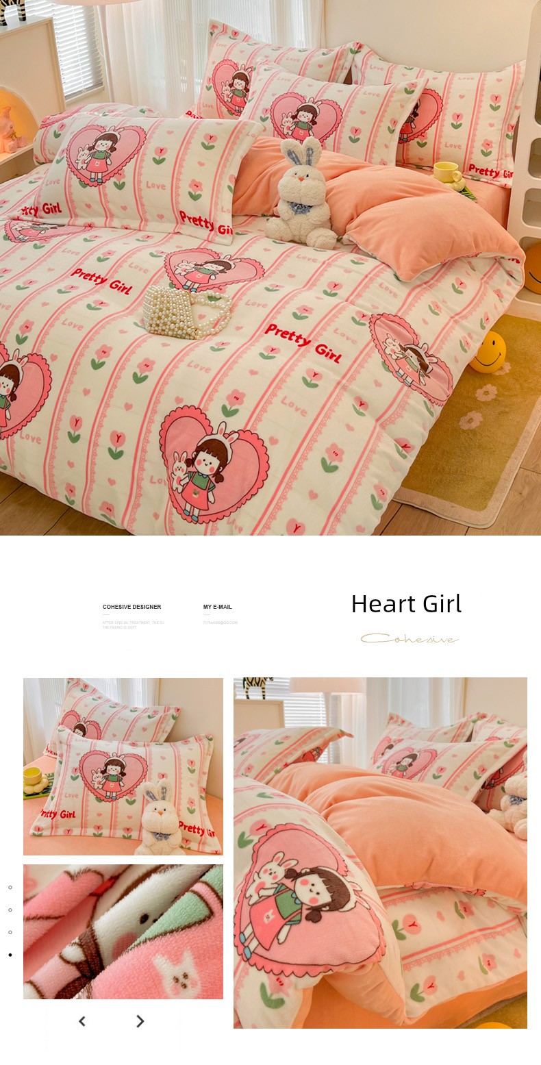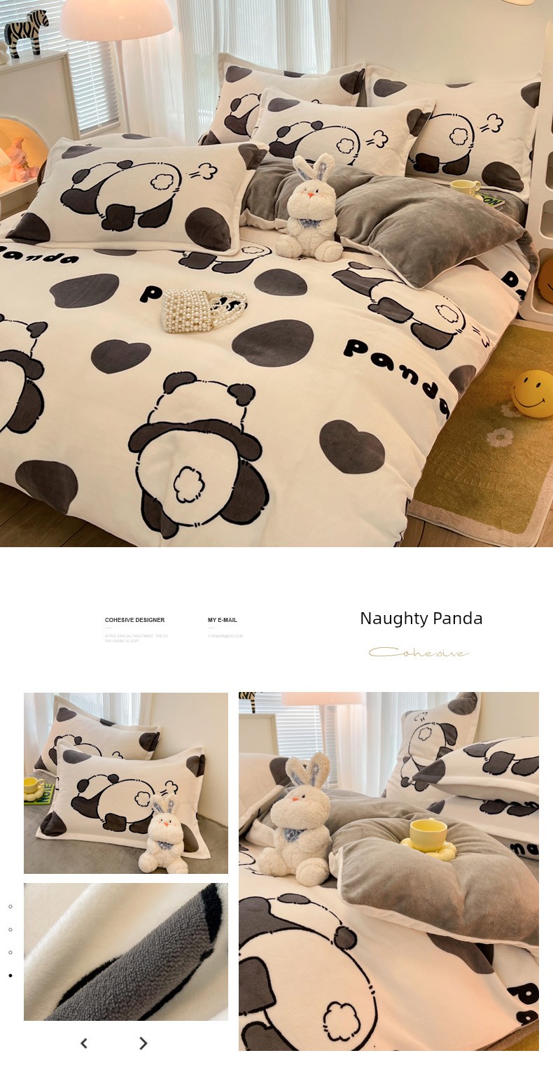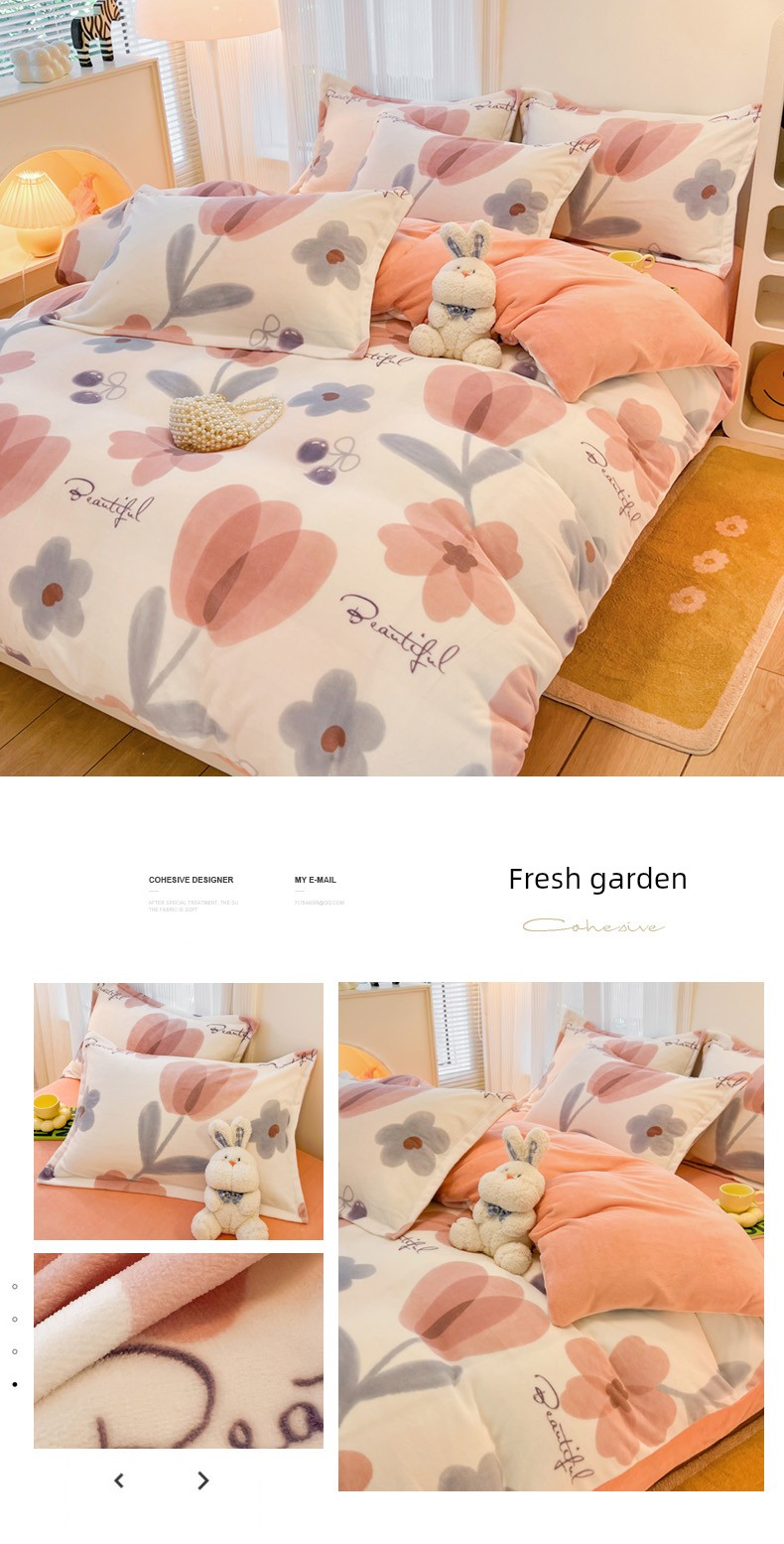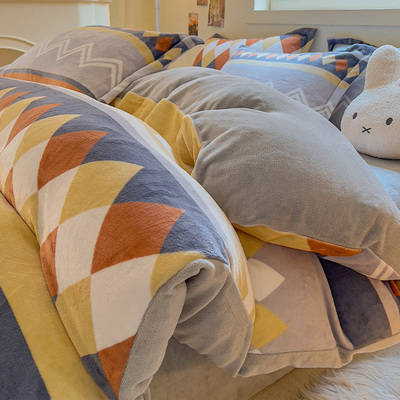Milk Fiber Coral Fleece Duvet Cover Single Piece Winter Thickened Velvet Padded Flannel Duvet Cover Three-Piece Student Dormitory Kids