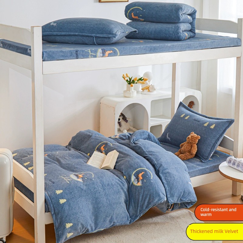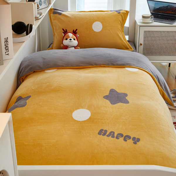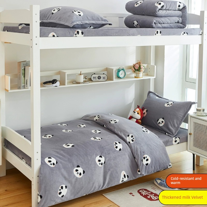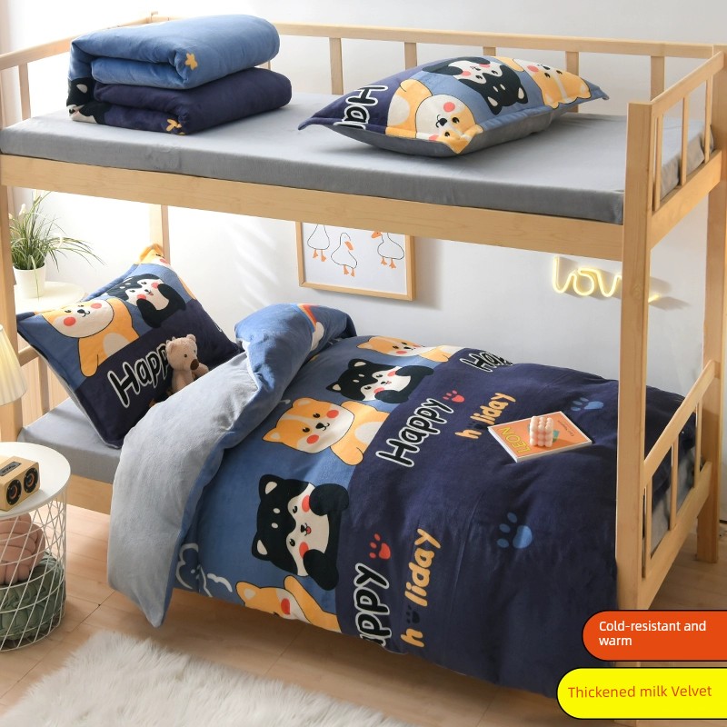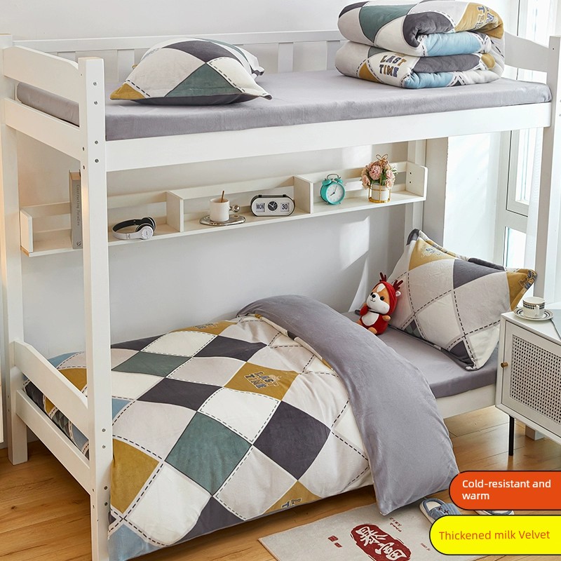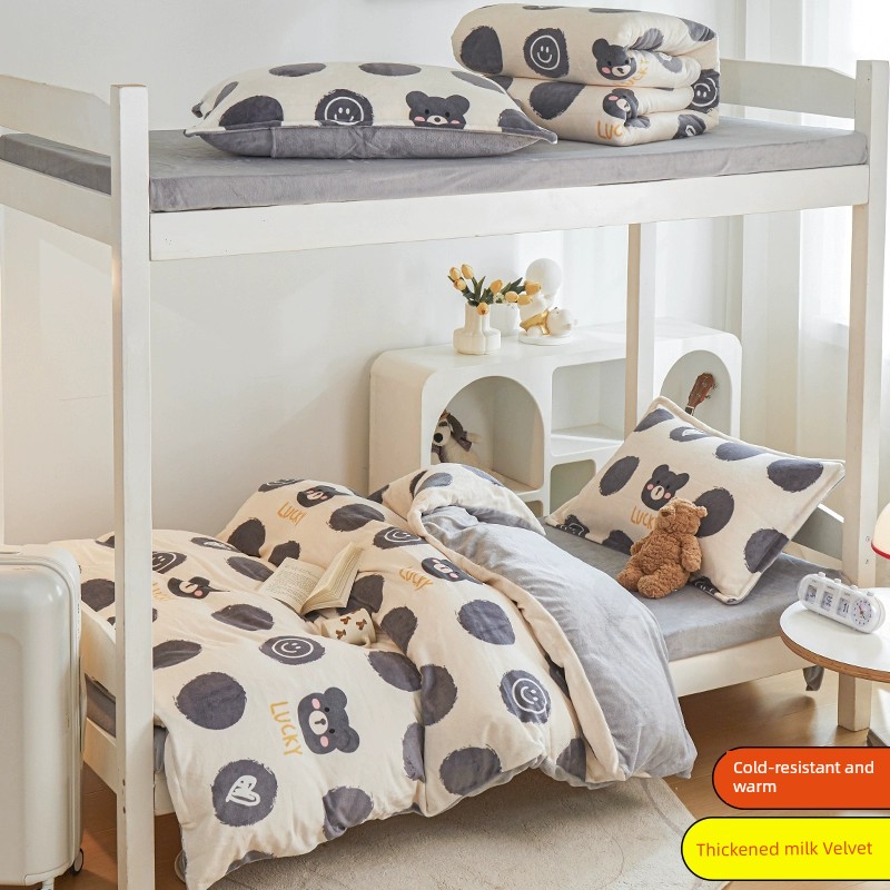 Winter Milk Fiber Duvet Cover One-Piece Student Dormitory Single Flange Coral Fleece 1.5M Quilt Cover Double-Sided Stuffed Fleece-lined