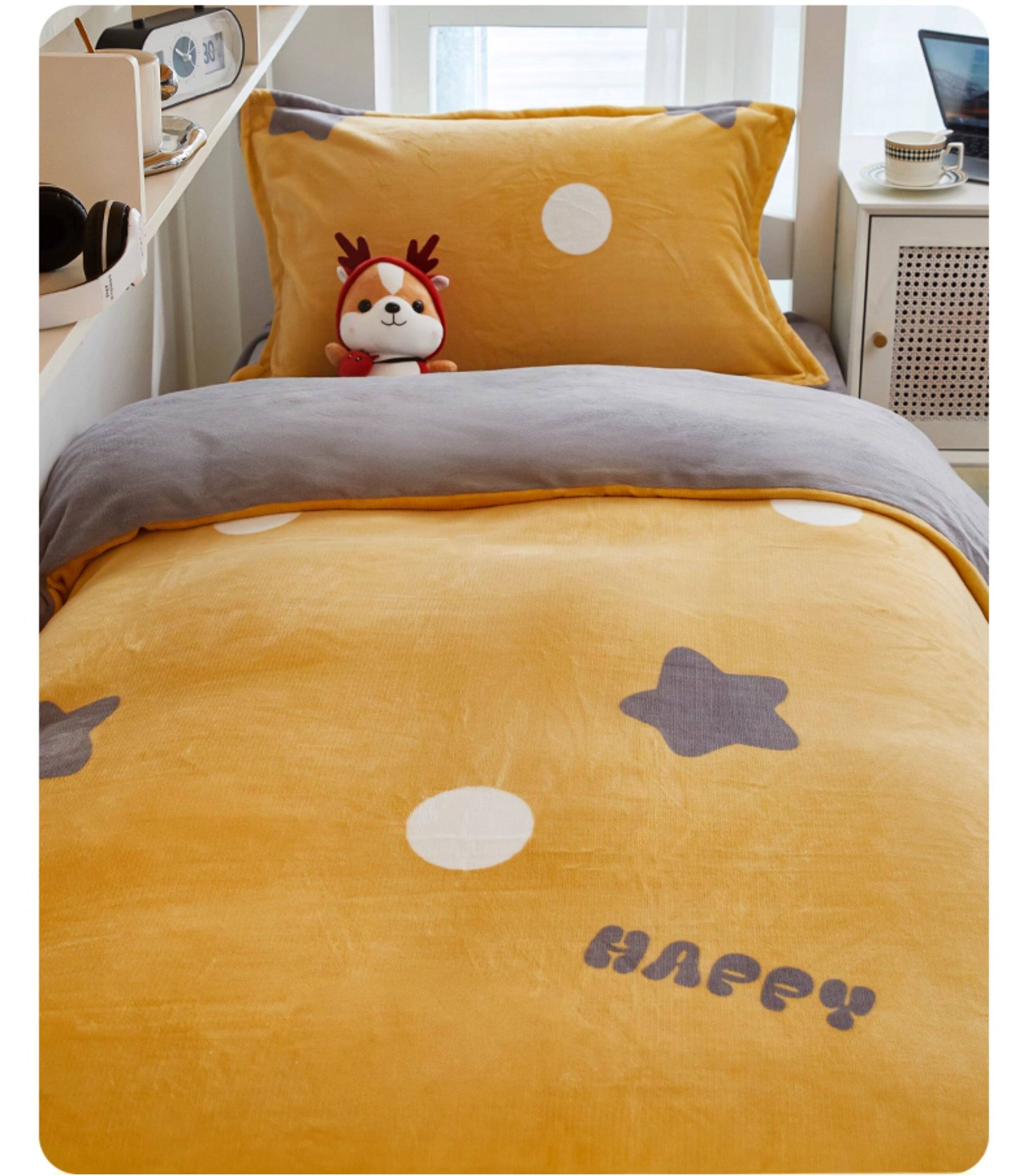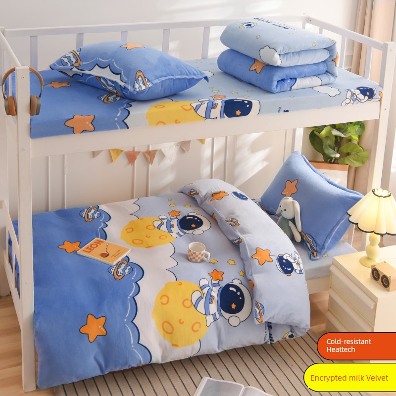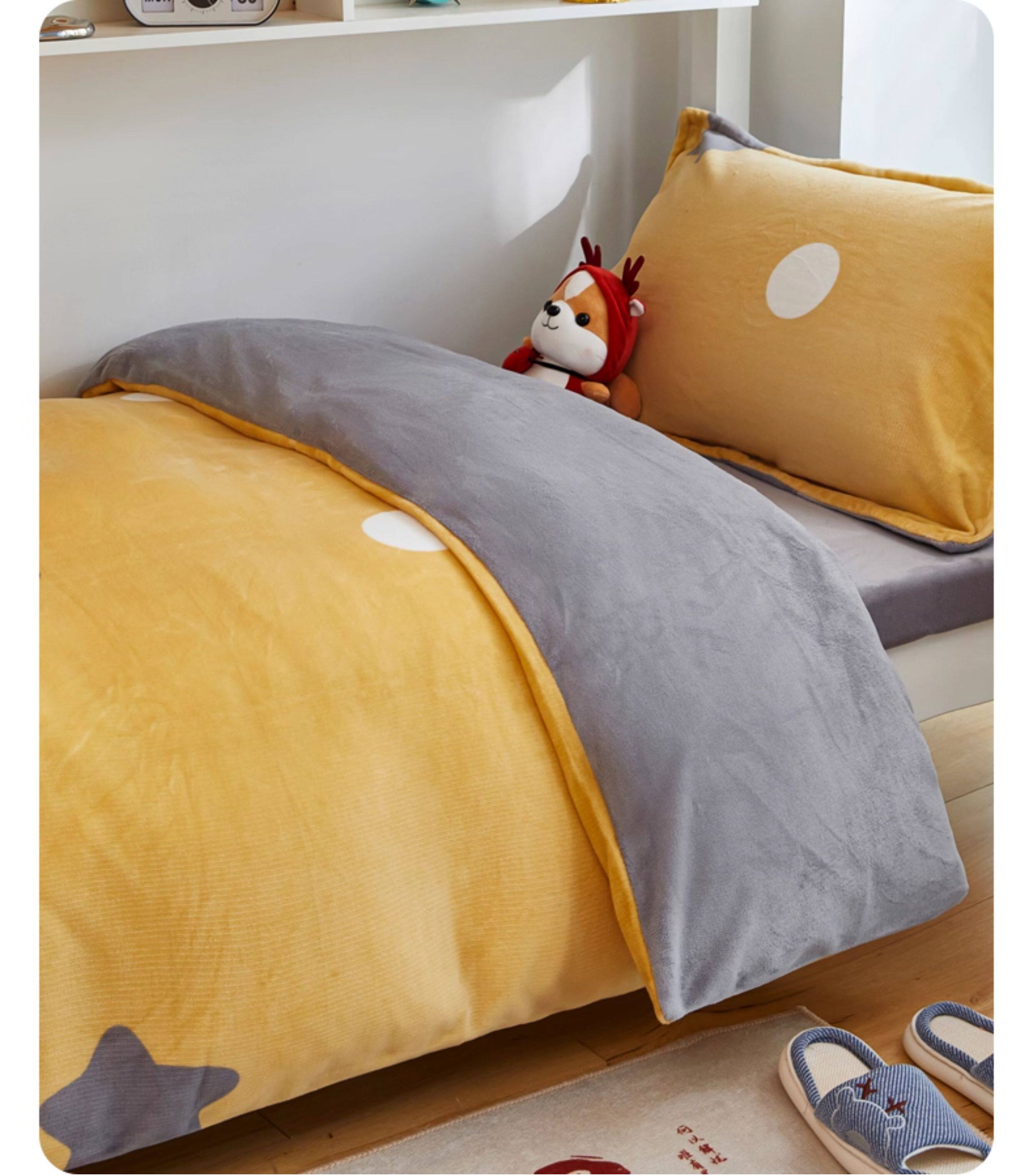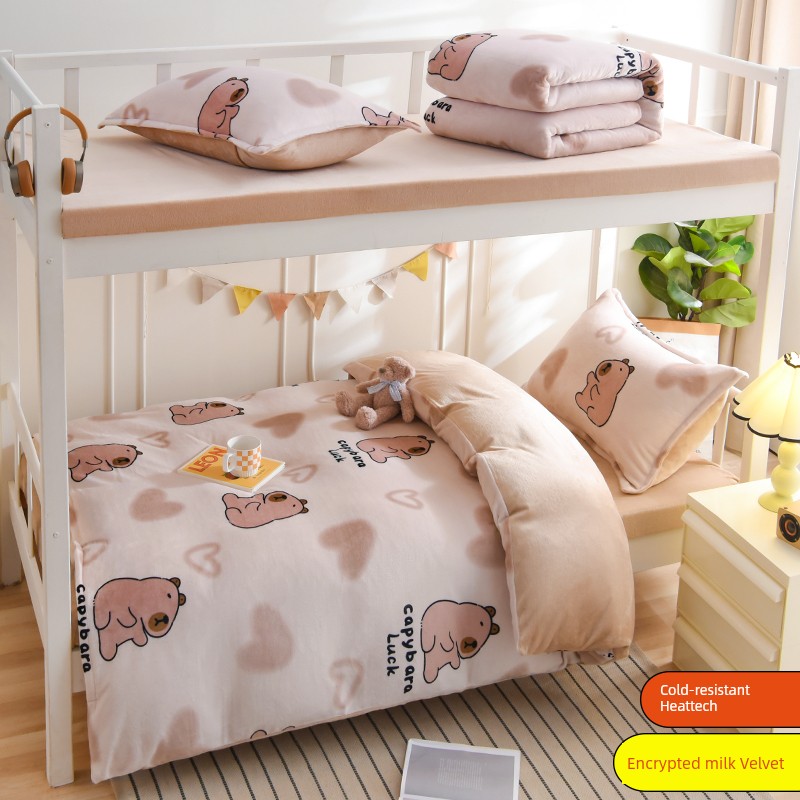 Winter Milk Fiber Duvet Cover One-Piece Student Dormitory Single Flange Coral Fleece 1.5M Quilt Cover Double-Sided Stuffed Fleece-lined