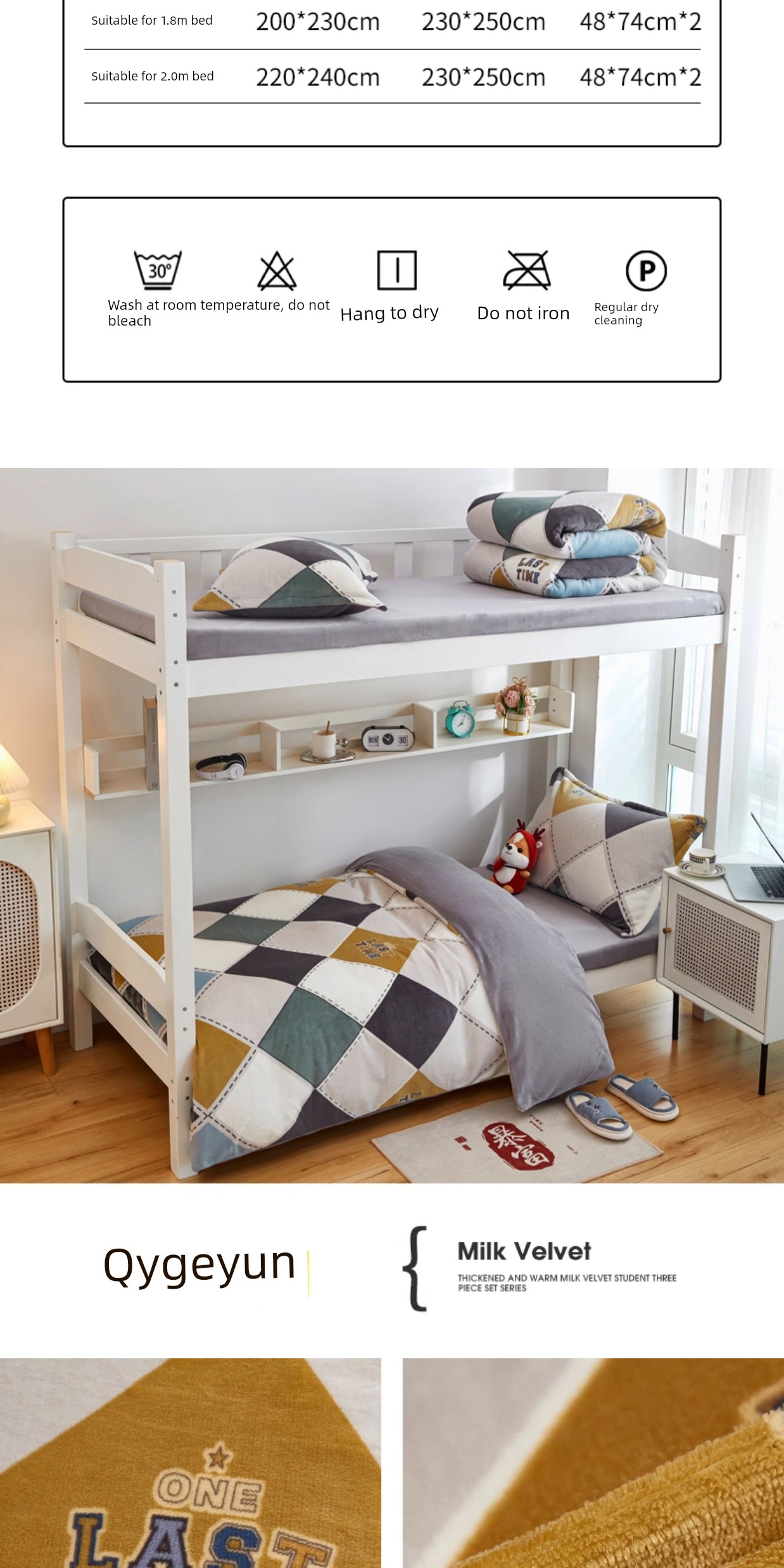 1.2m Bed Three-Piece Set: Quilt Cover 1.5X2.0M, Sheets 1.5X2.2M, 1 Pillowcase