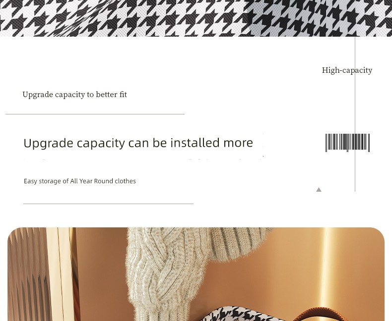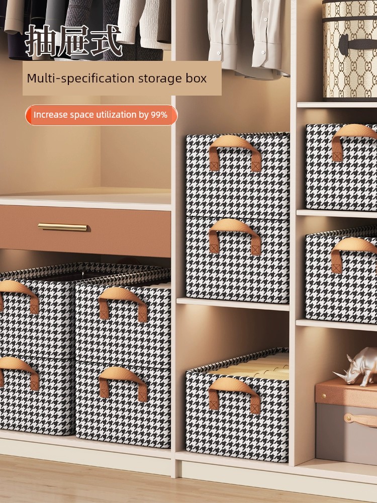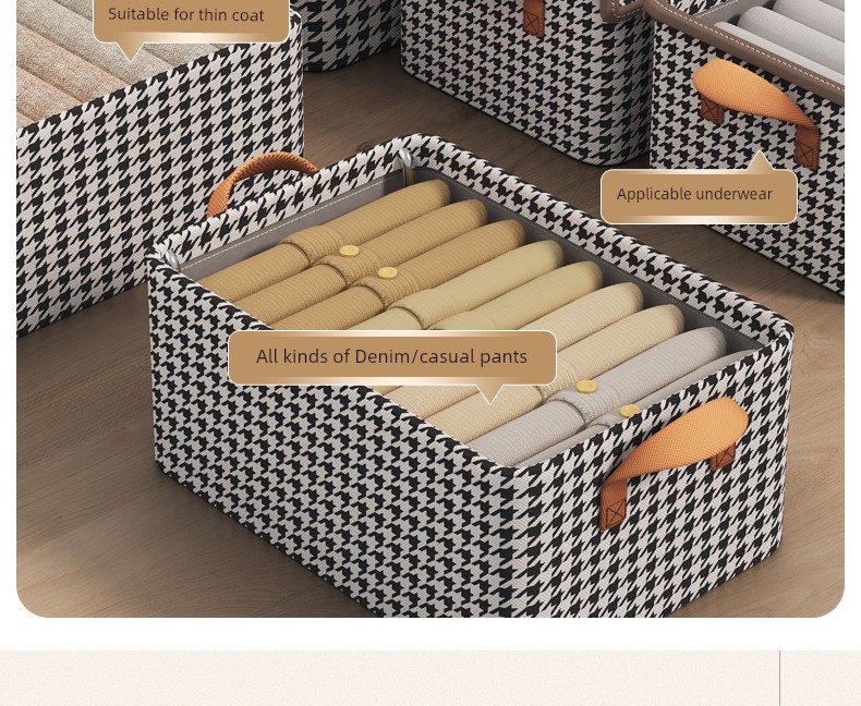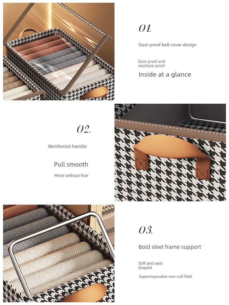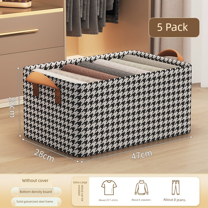 Houndstooth Wardrobe with Lid Foldable Layered Storage Box