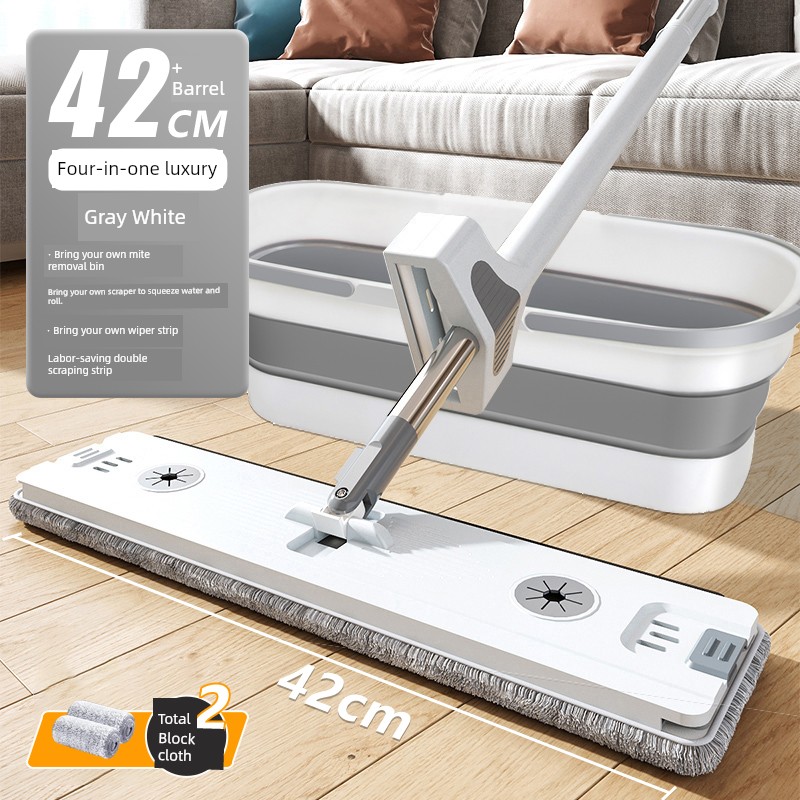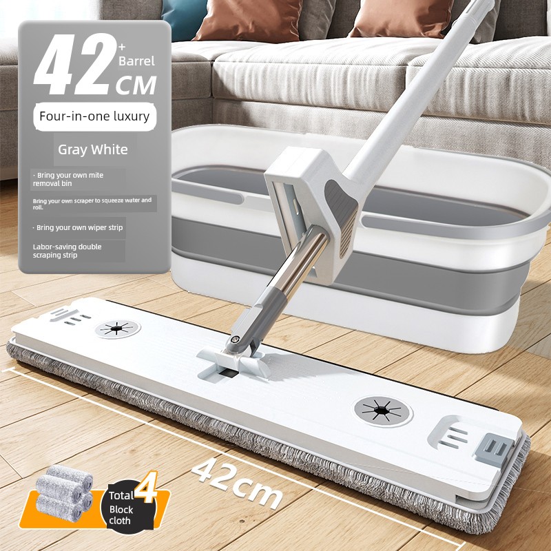 Integrated Wiper [Folding Bucket + 42cm Thick Plate + 4 Original Cloth]❤Double Scraping + Thickened Stainless Steel Rod