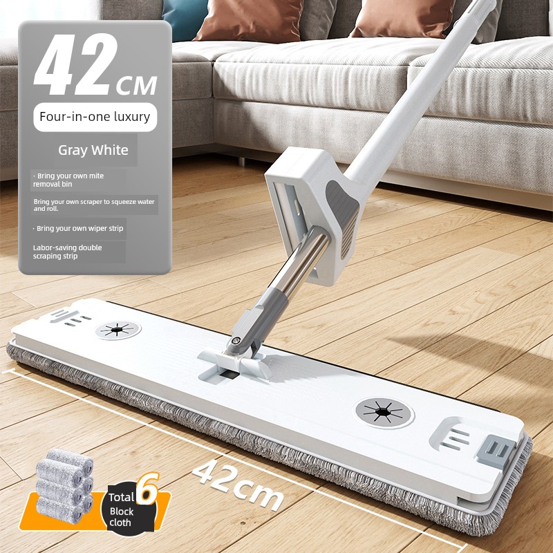 Integrated Wiper [Folding Bucket + 42cm Thick Plate + 6 Original Cloth] ❤ Double Scraping + Thickened Stainless Steel Rod